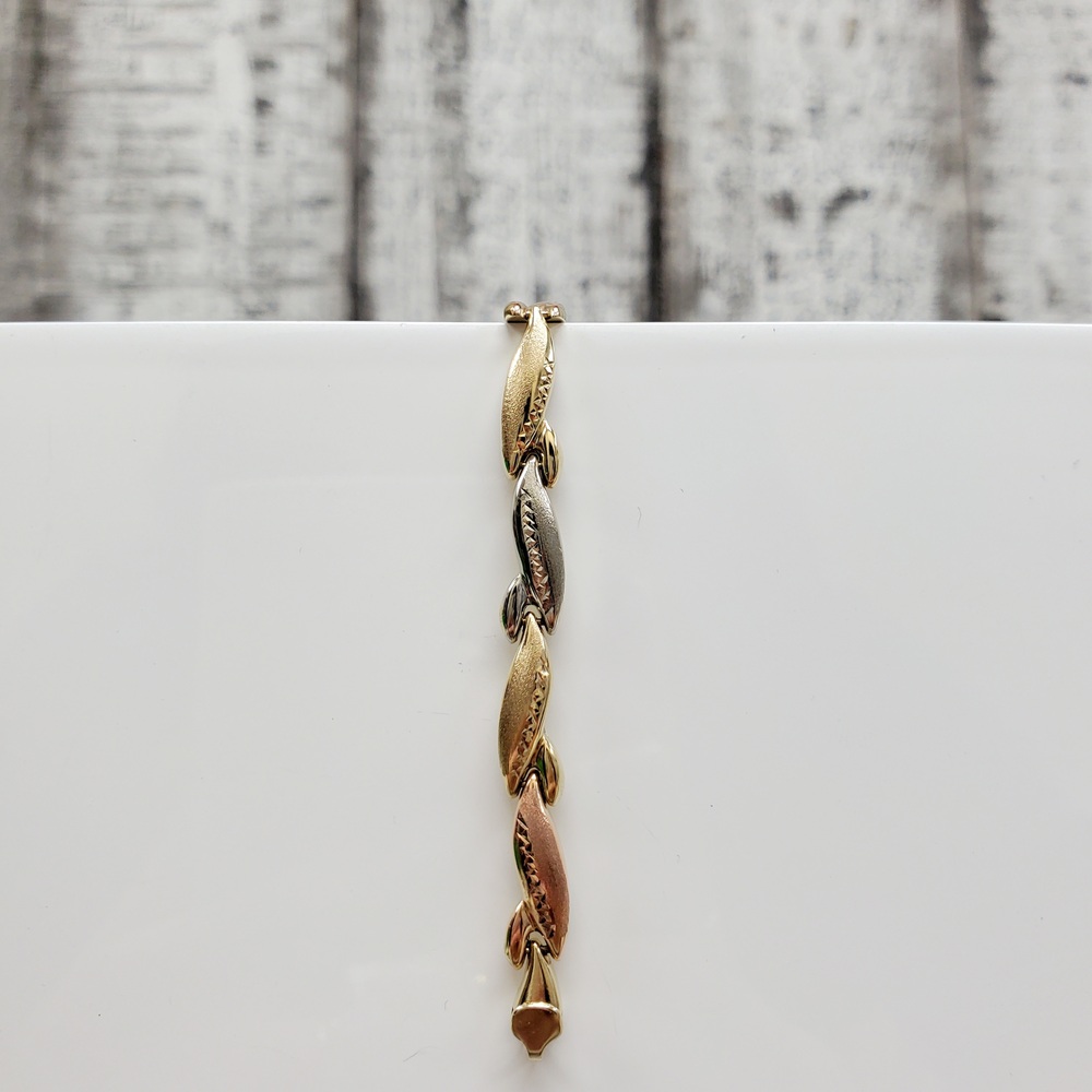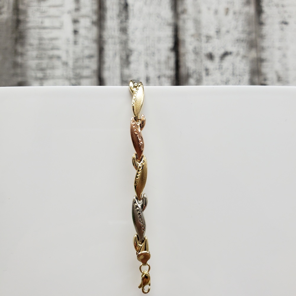 We have this stunning 10K TriColor Semi Solid Fancy Design Bracelet for sale!