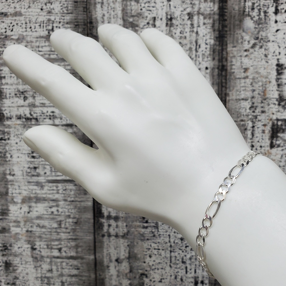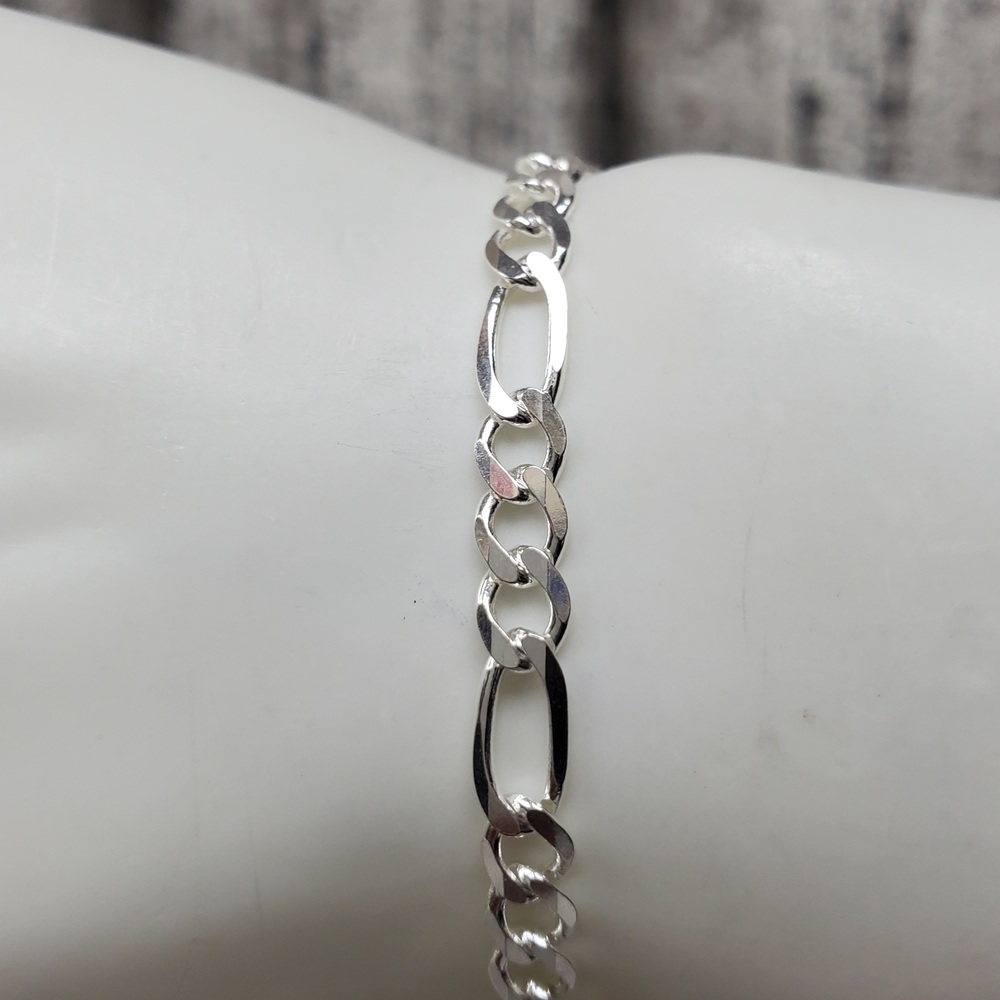 We have this stunning 8" BRAND NEW Silver Figaro Bracelet For sale!