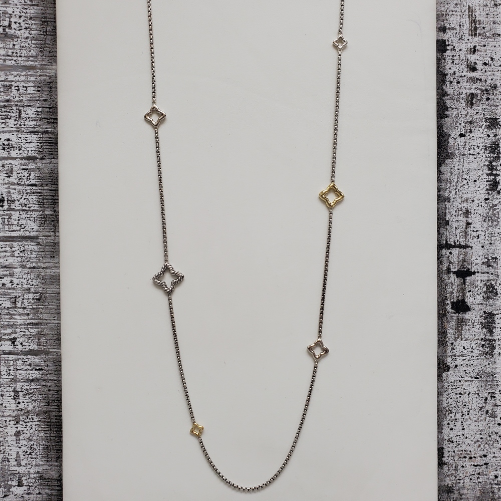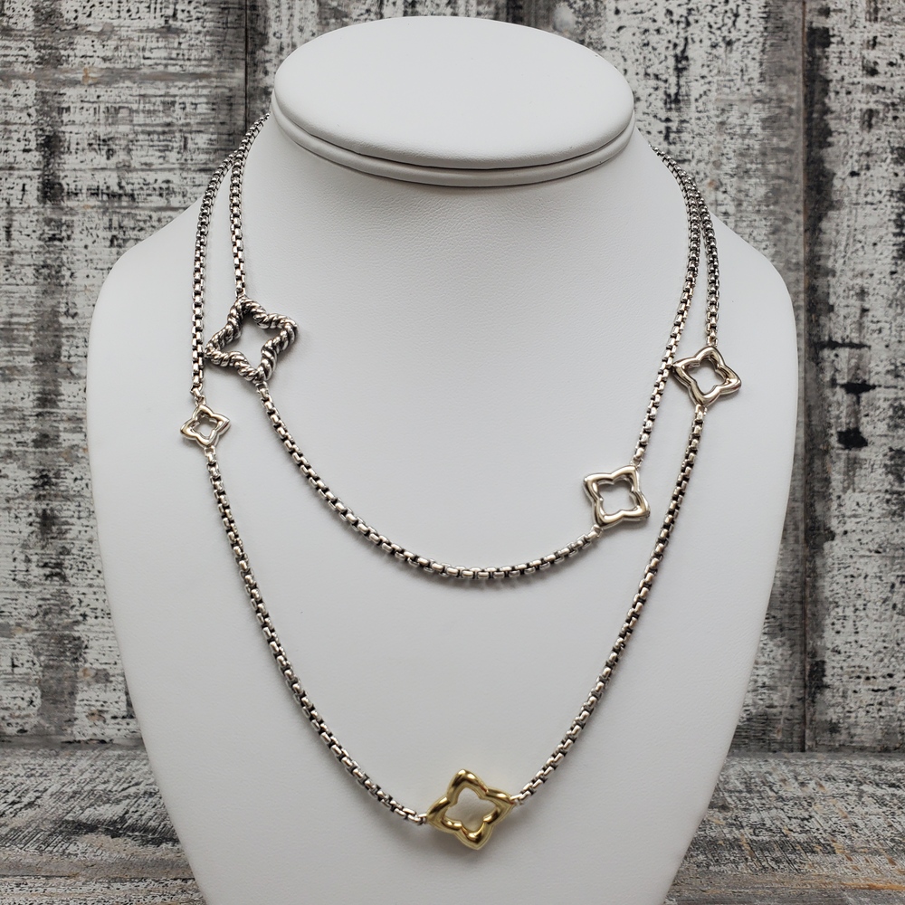 Dept:J6 Two Tone 0.925kt 23.40dwt 23.4d 925/14K David Yurman Quatrefoil Necklace Necklace