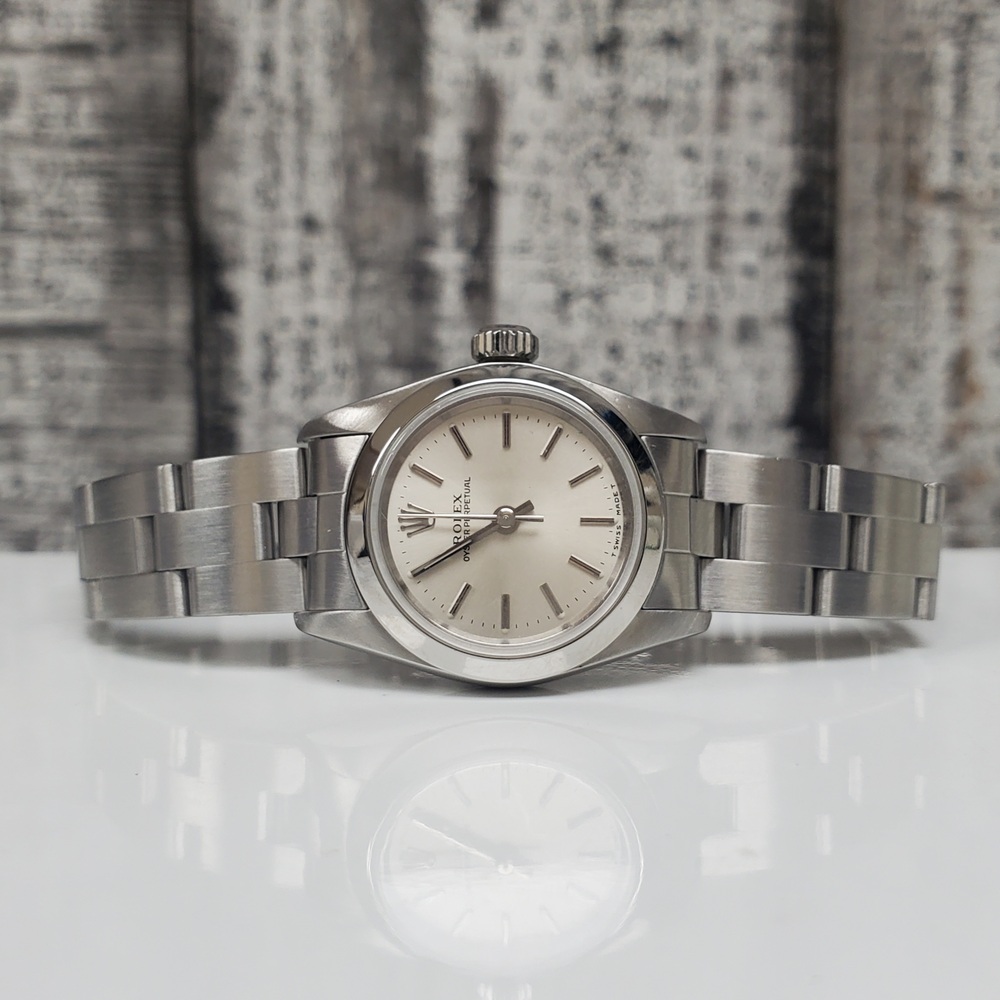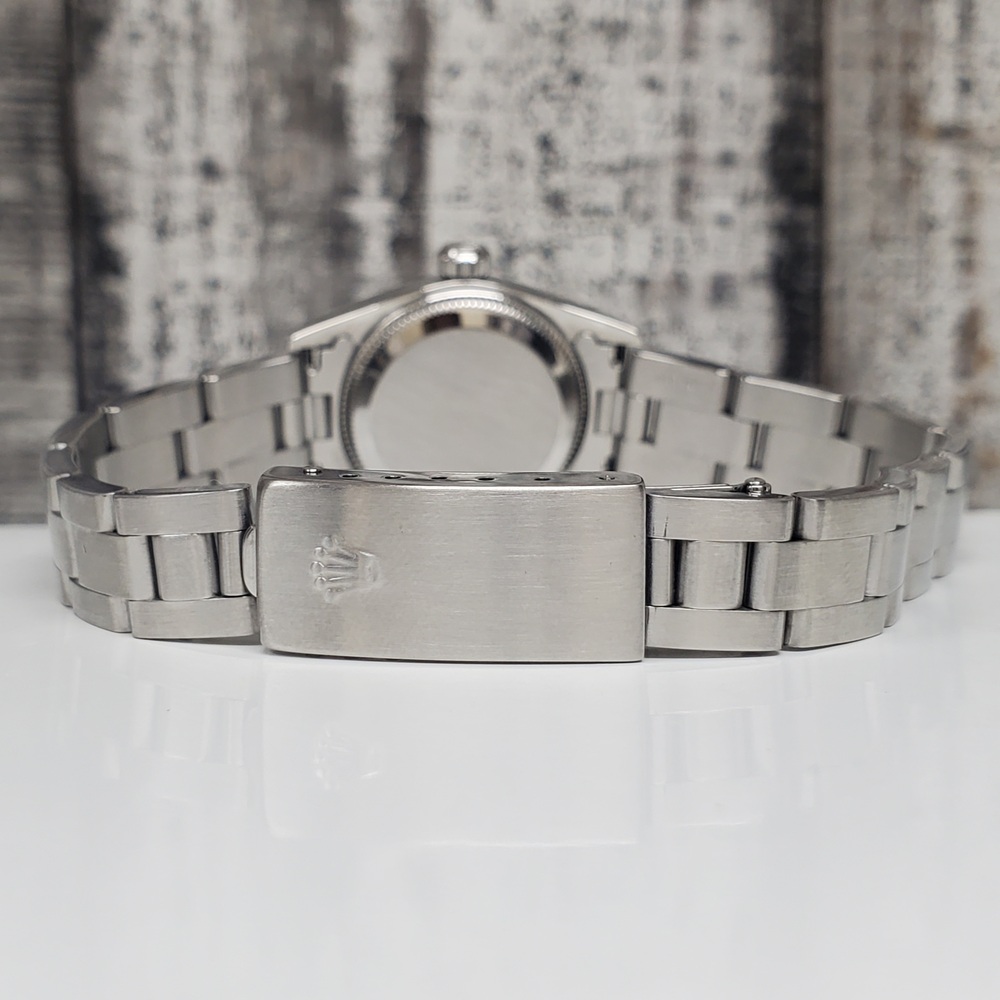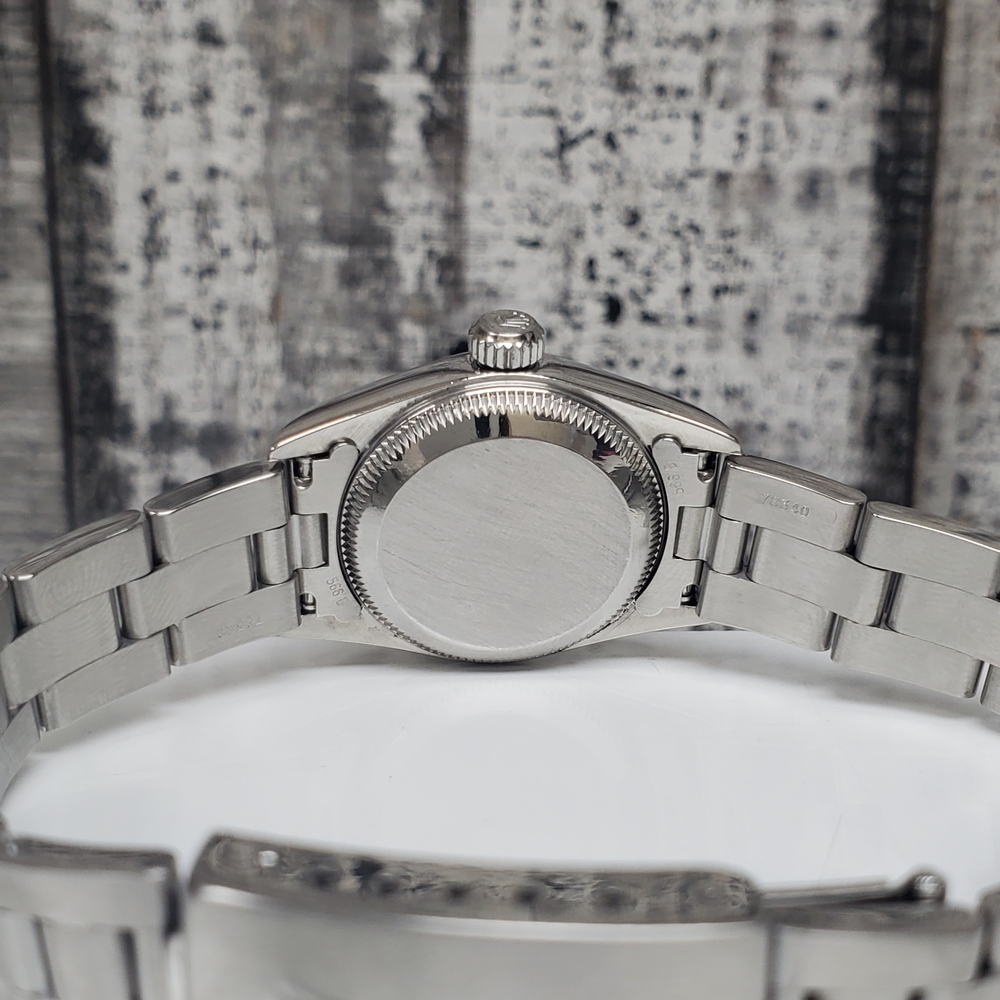 The '97 Rolex 67180 Oyster Perpetual is an iconic 24mm stainless steel wristwatch, featuring a smoothly-crafted bezel and an Oyster band. Known for its precision, durability, and classic style, it embodies timeless elegance and Rolex's unrivaled craftsmanship.