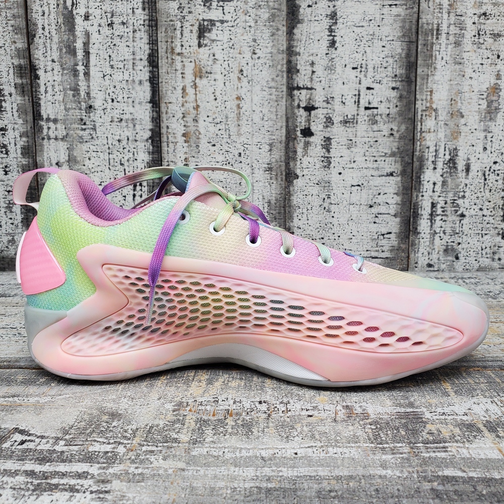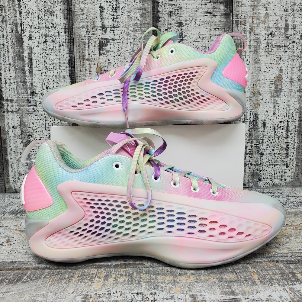 Adidas AE 1 Low 3SSB PE” Tie-Dye Orange Pink Size:6, Anthony Edwards edition sneaker without box, featuring a vibrant, stylish design.