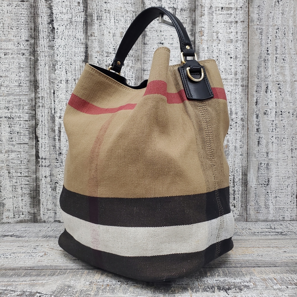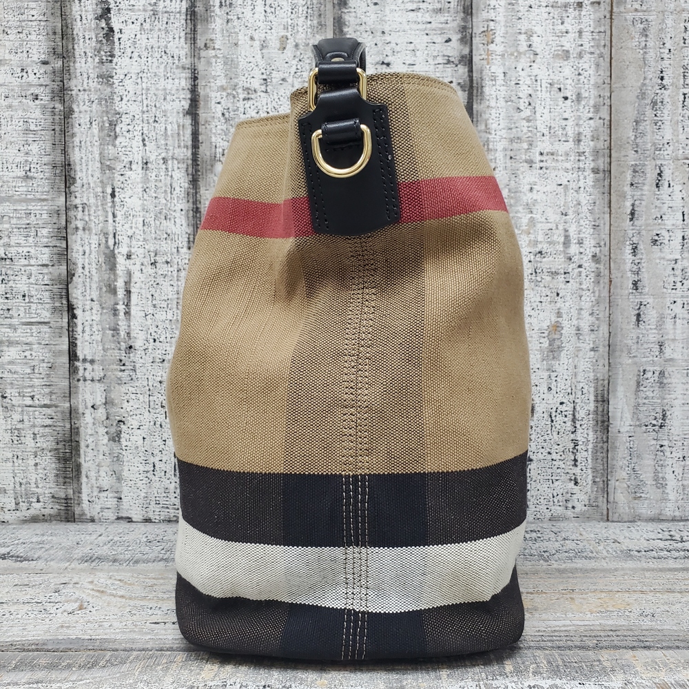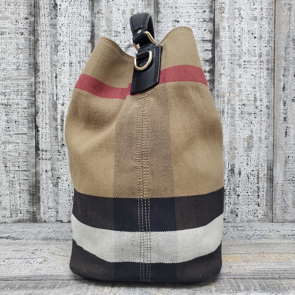 Used Burberry Bucket Bag offers timeless elegance with its distinctive design, quality materials, and classic craftsmanship. Suitable for any fashion-forward ensemble.