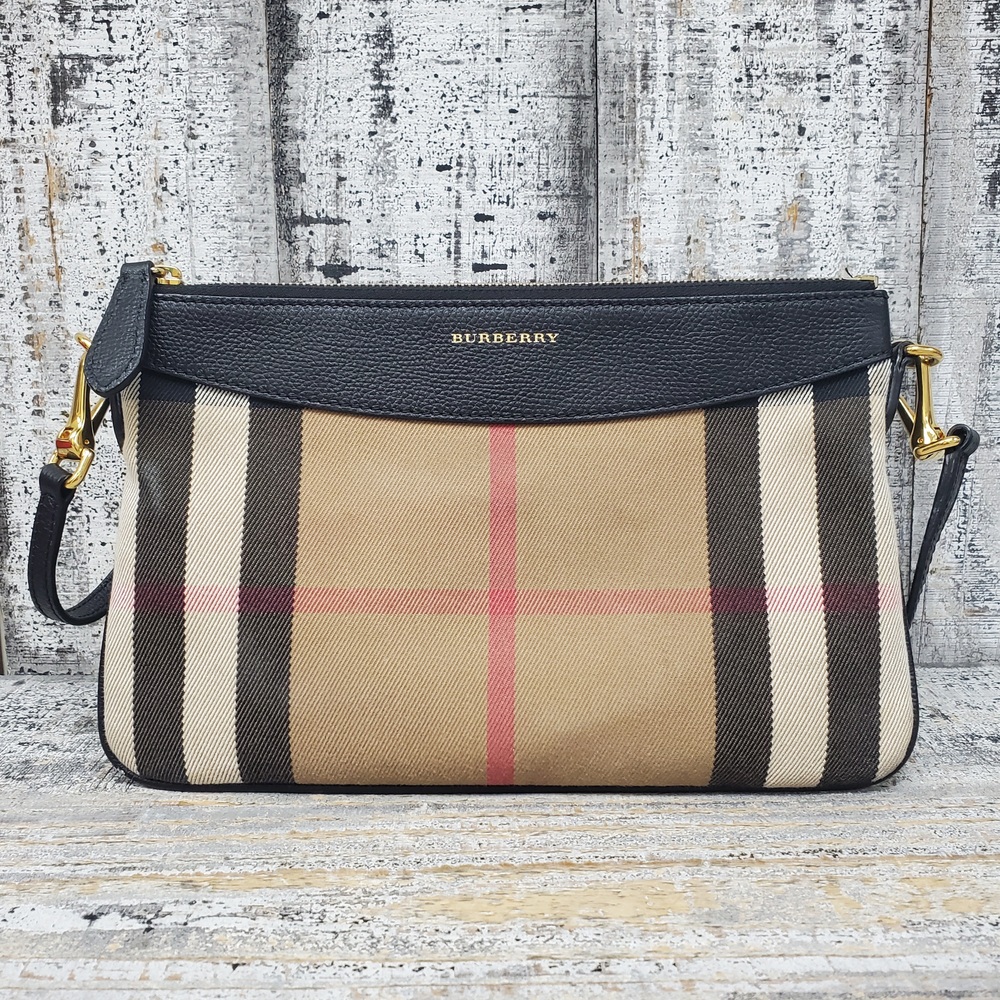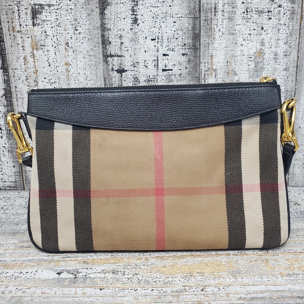 Burberry's Peyton House Check Crossbody is a compact, stylish bag featuring the brand's iconic check pattern, high-quality leather accents, and a versatile adjustable strap.