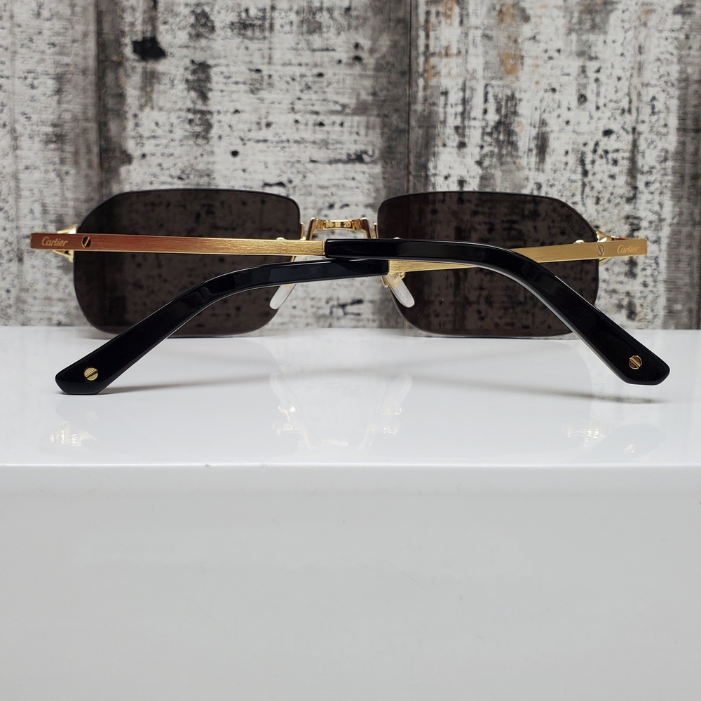 Enhance your look with our sleek gold Cartier glasses, featuring black lenses. Perfect blend of sophistication, style, and luxury. Impressively designed for both comfort and appearance.