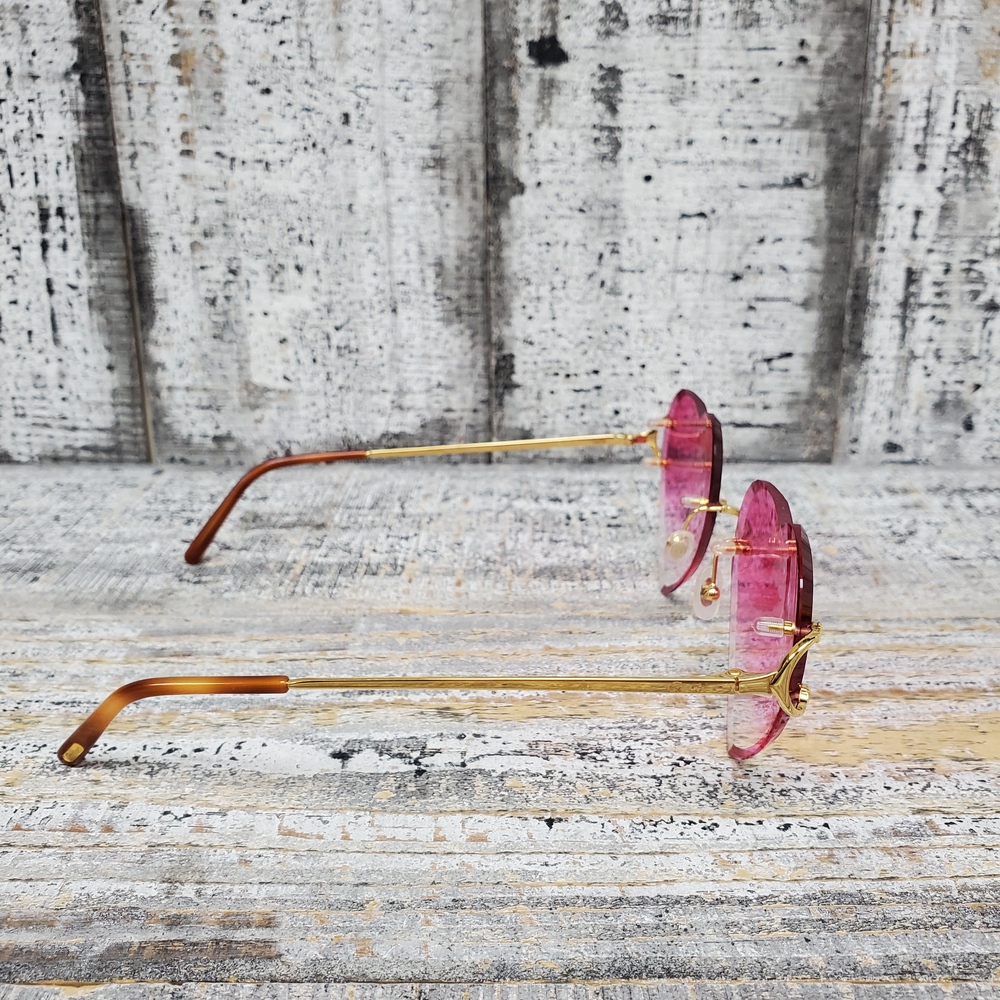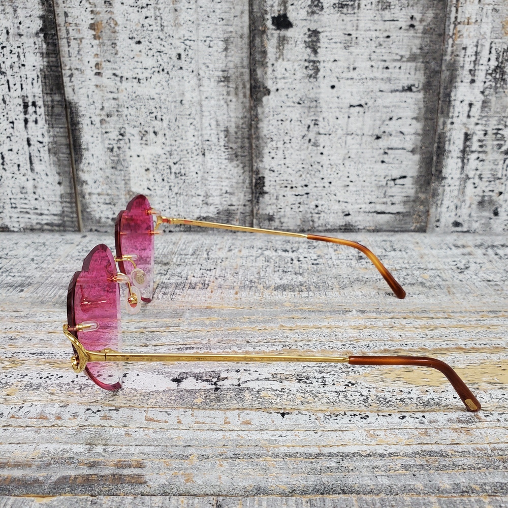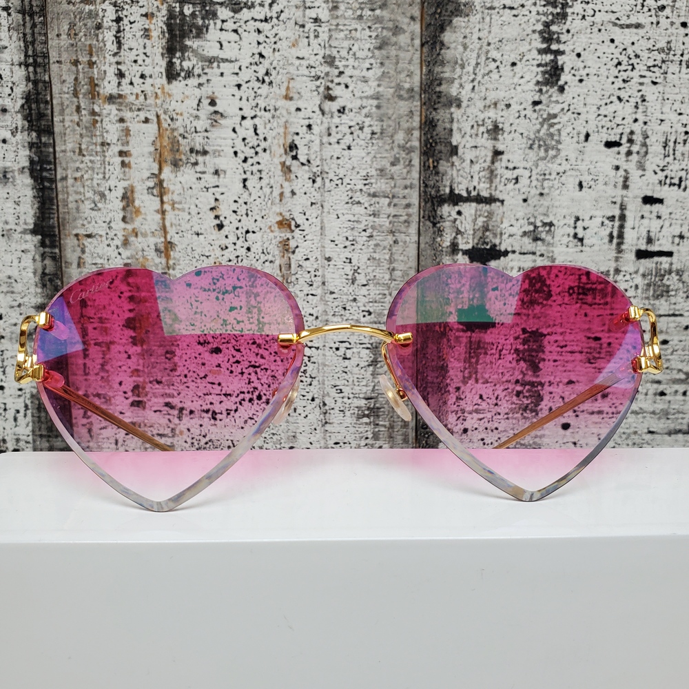 Elegant Cartier pink frames featuring heart gradient lenses, enclosed in a chic box, radiating femininity and luxury. A timeless piece for any sophisticated eyewear collection.