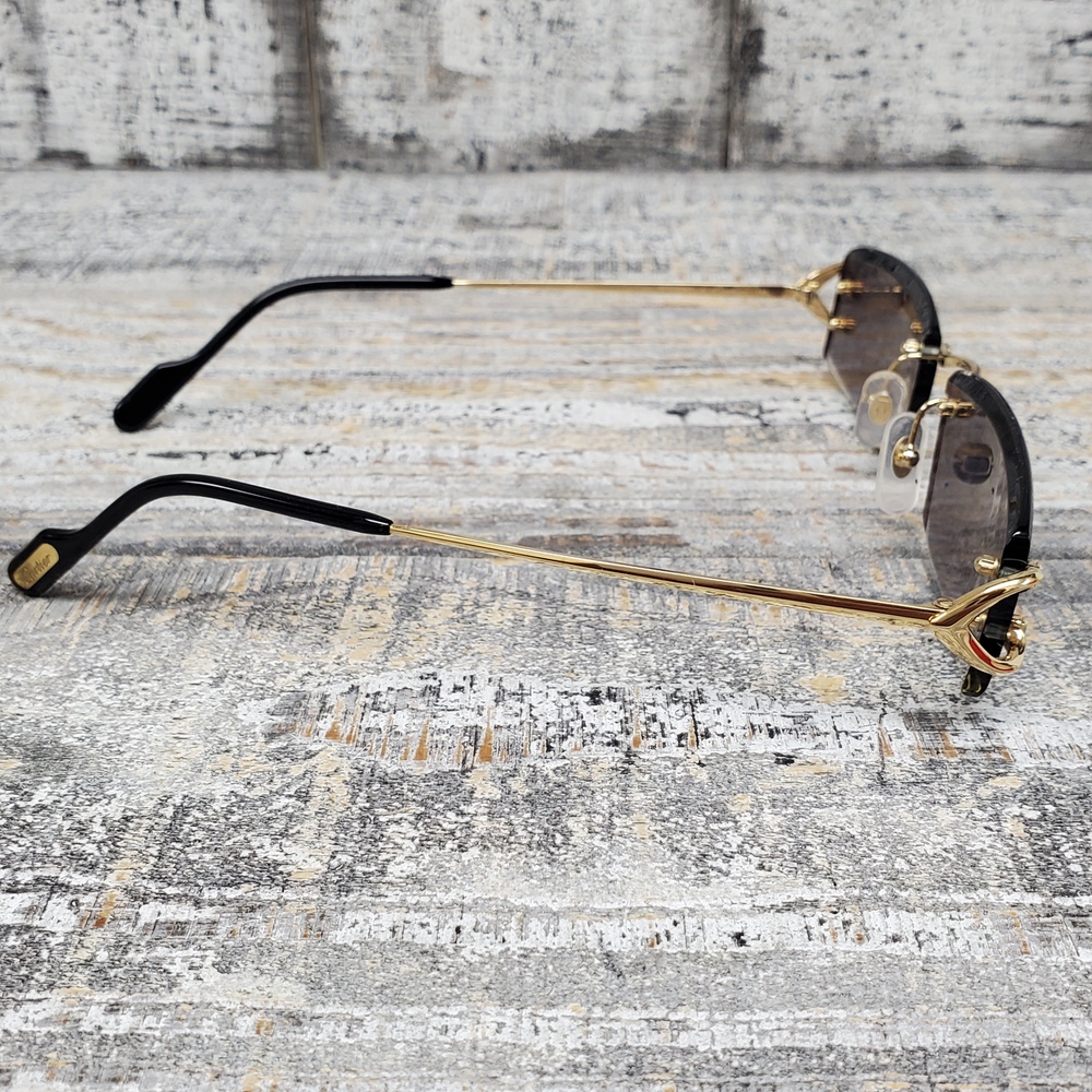 These are stylish, high-end Cartier rimless rectangle sunglasses with full UV protection, designed to provide chic elegance and ultra comfort for both men and women.