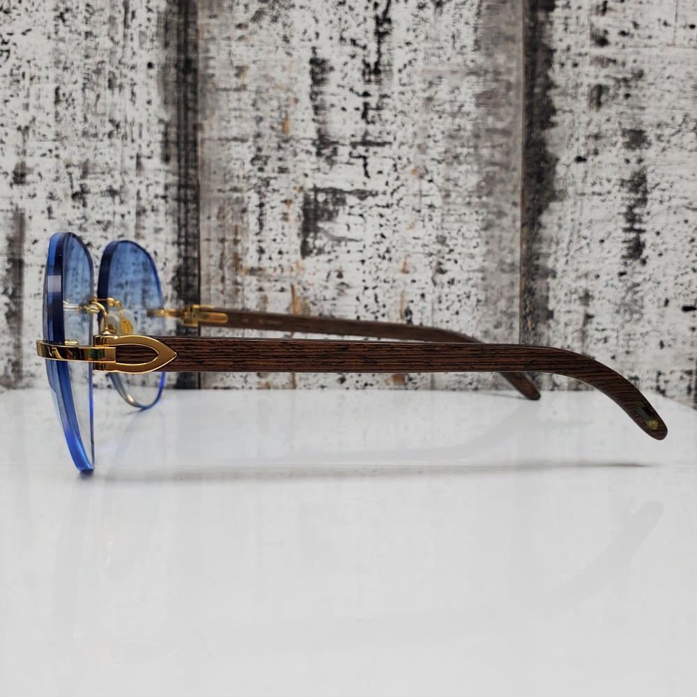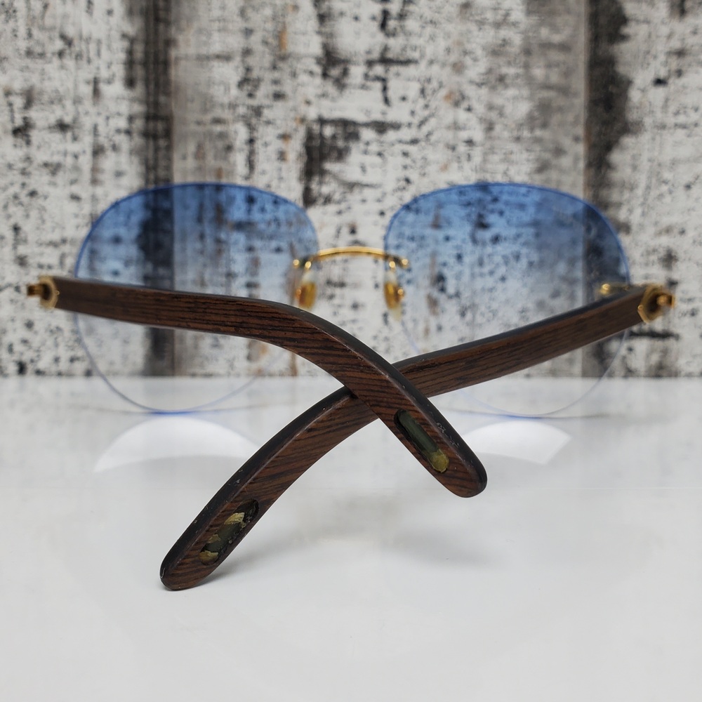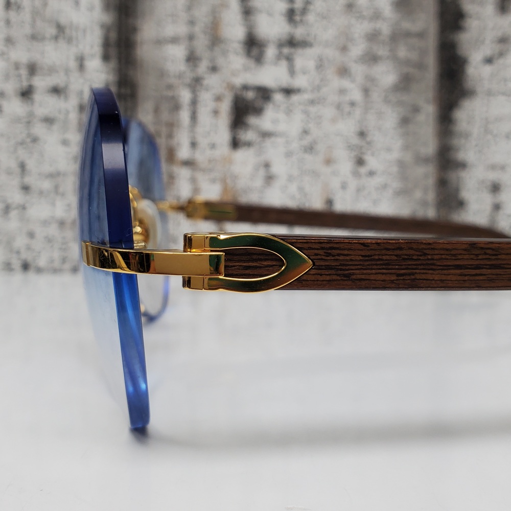 Elegant Cartier sunglasses featuring blue frames in excellent condition, safely housed in a protective case. Classic design, high-quality build, and a stylish statement accessory.
