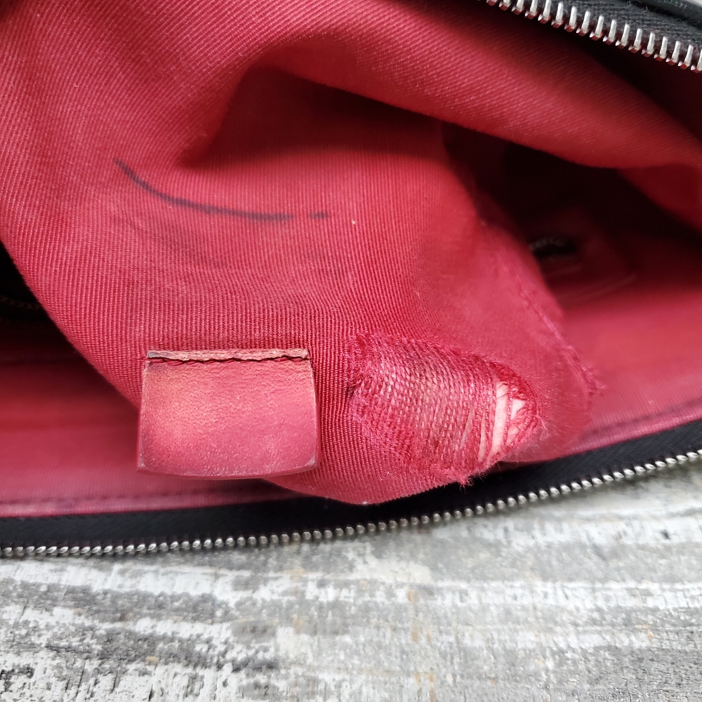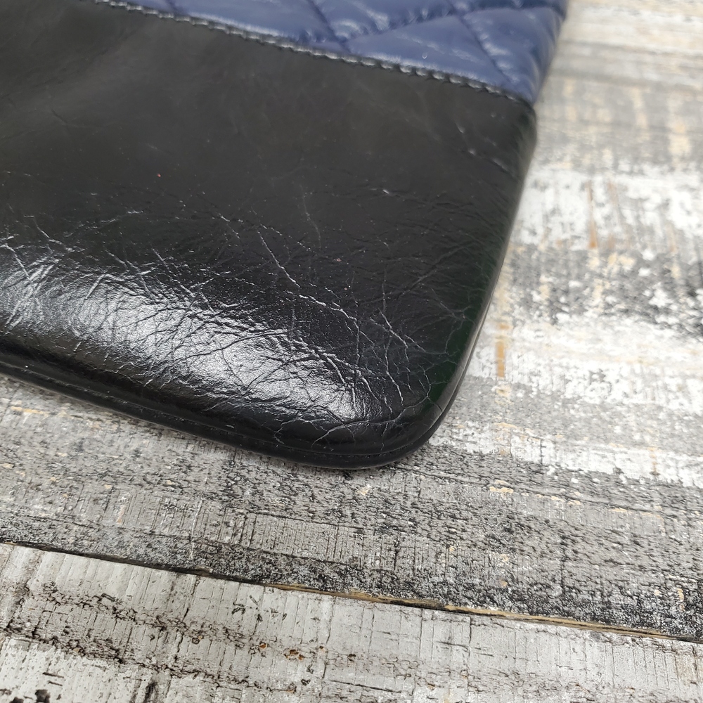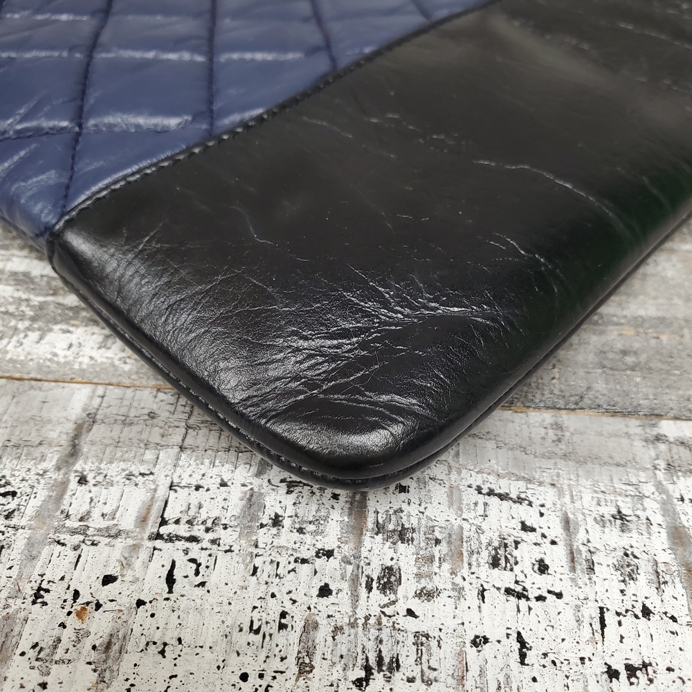 A stylish, pre-loved Chanel pouch showcasing timeless elegance, with minor signs of wear, enhancing its unique vintage charm.