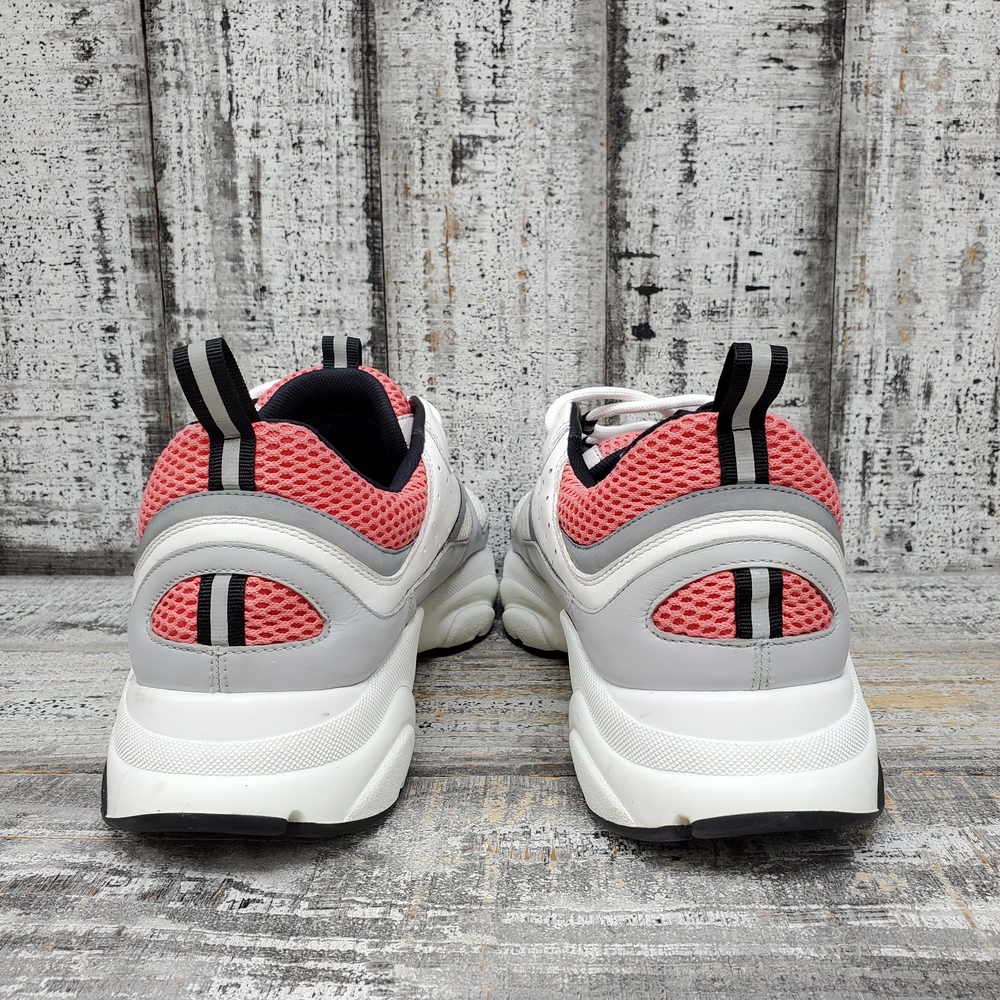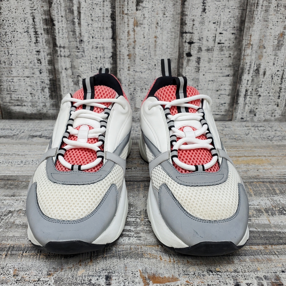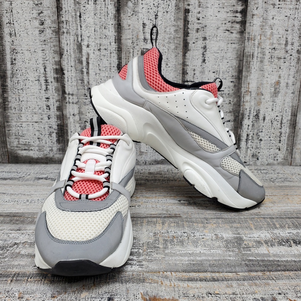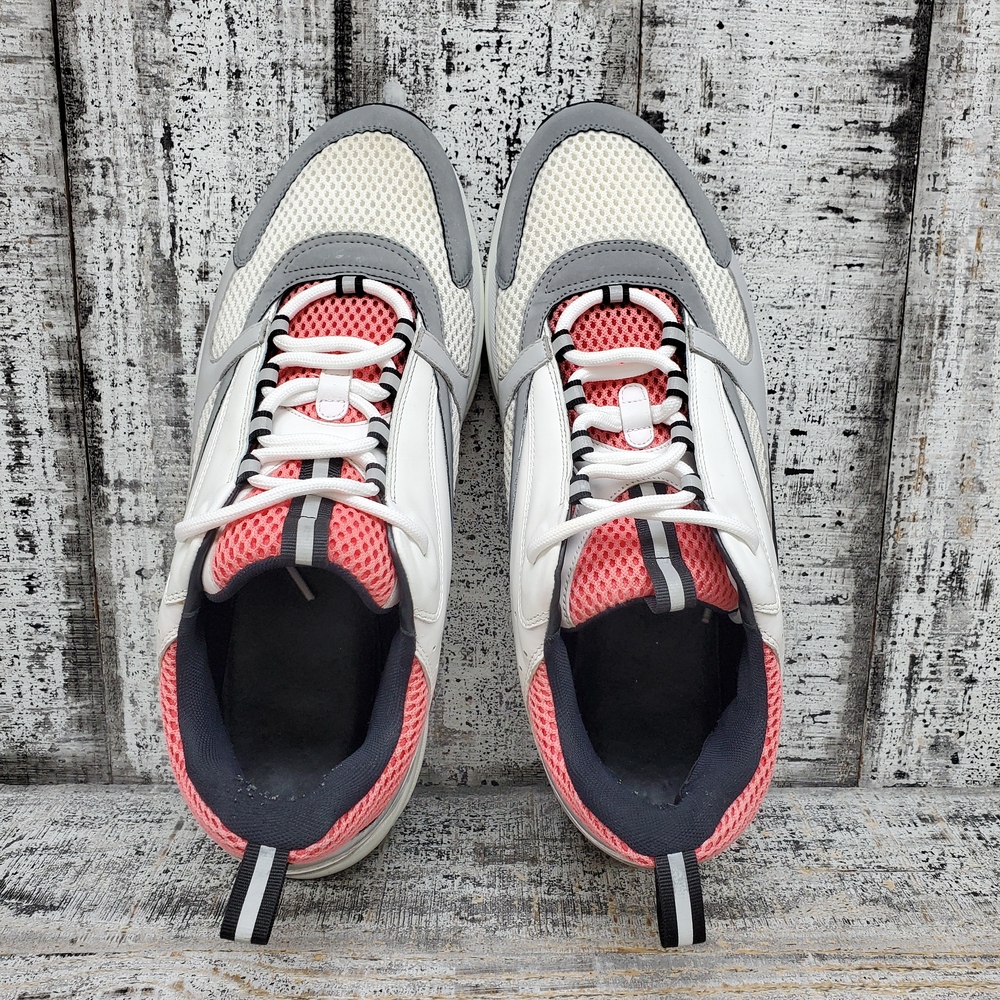 Christian Dior B22 men's sneakers in size 46. Features a stylish blend of white, pink, and salmon colours. No box provided.f
