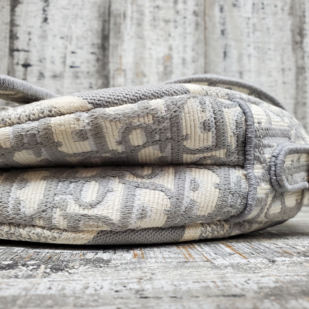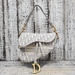 A medium-sized Christian Dior Saddle Handbag, adorned with intricately embroidered oblique canvas, epitomizing timeless elegance and luxurious style.