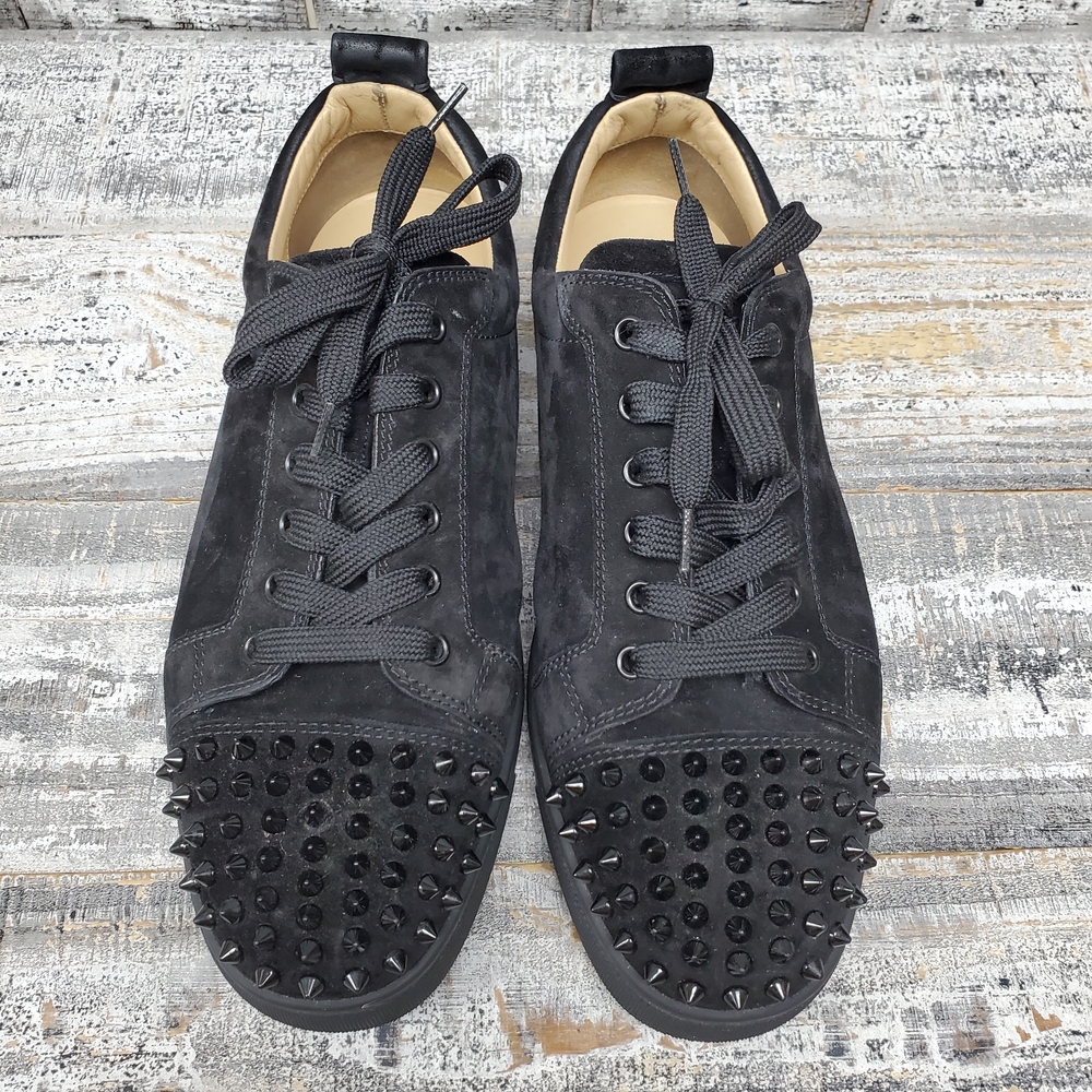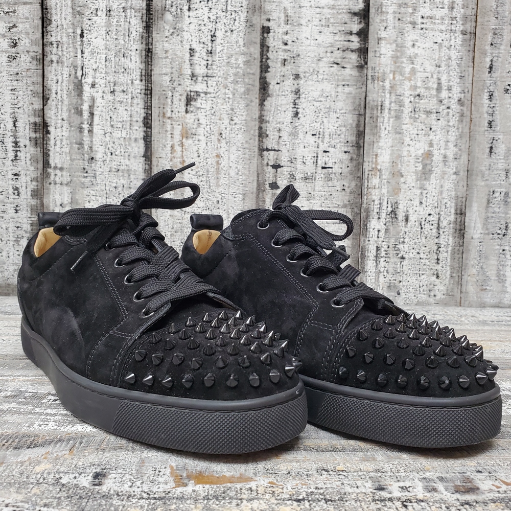 Christian Louboutin Louis Junior Spikes sneakers, size 42, in black. Comes with box. Features signature spike detailing for edgy, stylish men's wear.