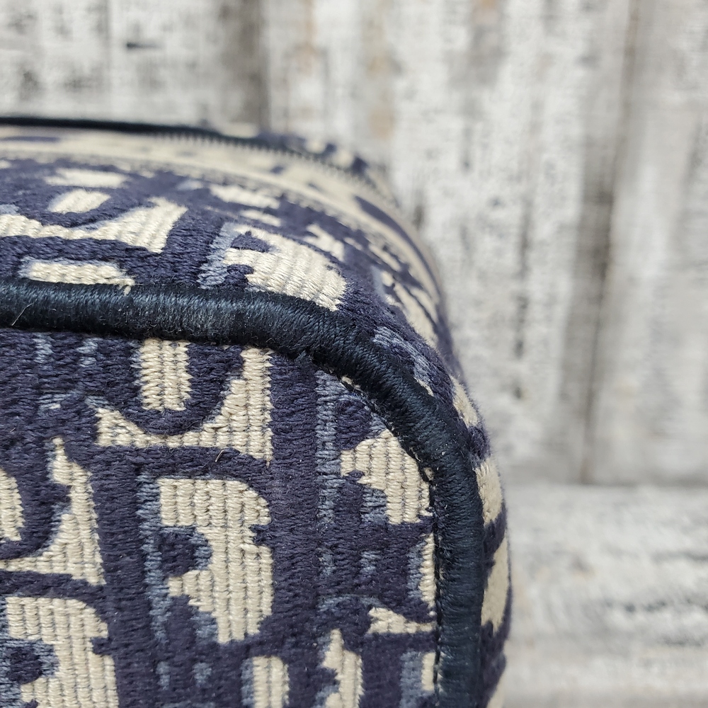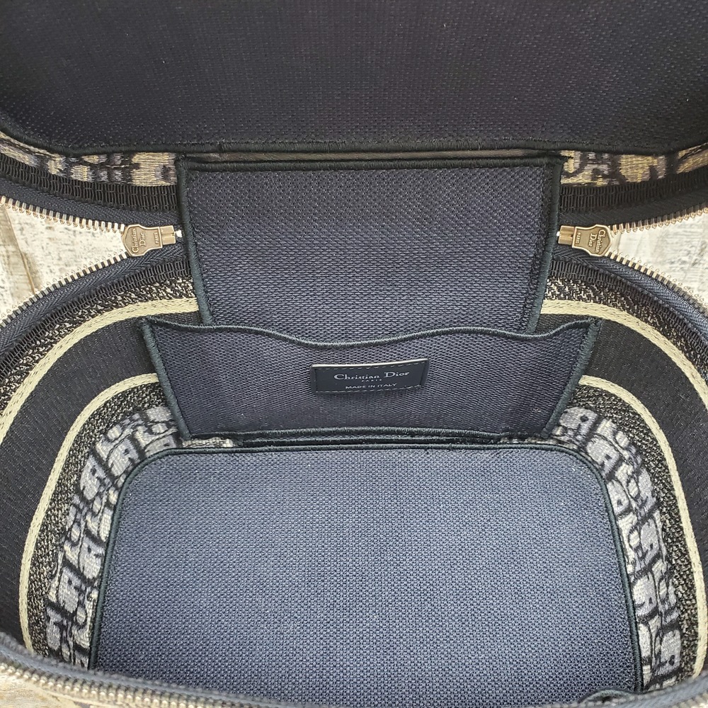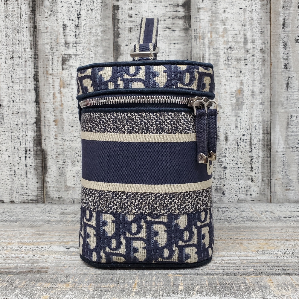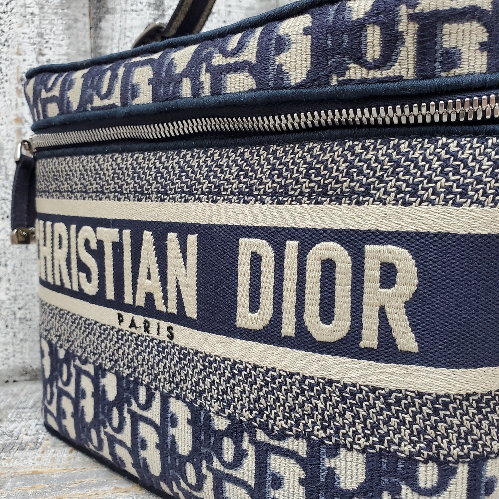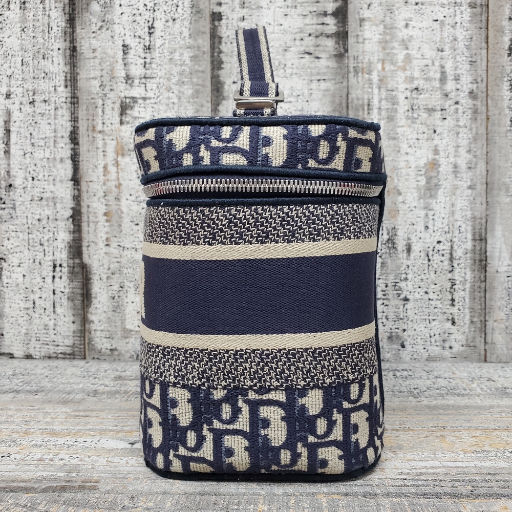 A luxurious Dior Travel Vanity case, featuring an elegant blue monogram canvas Oblique design, ideal for stylish and organized traveling.