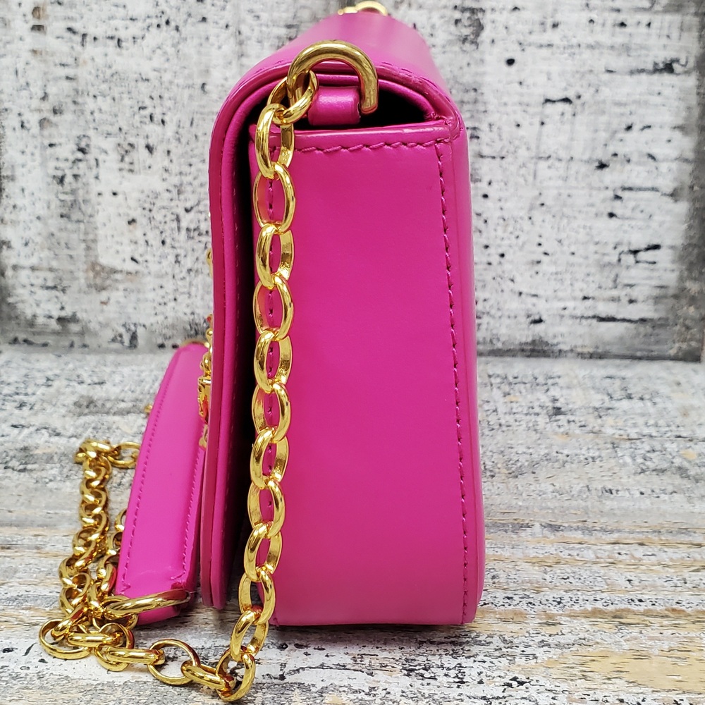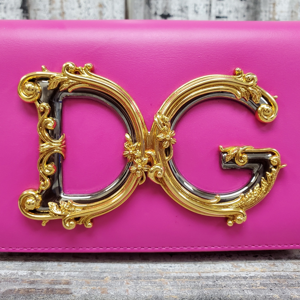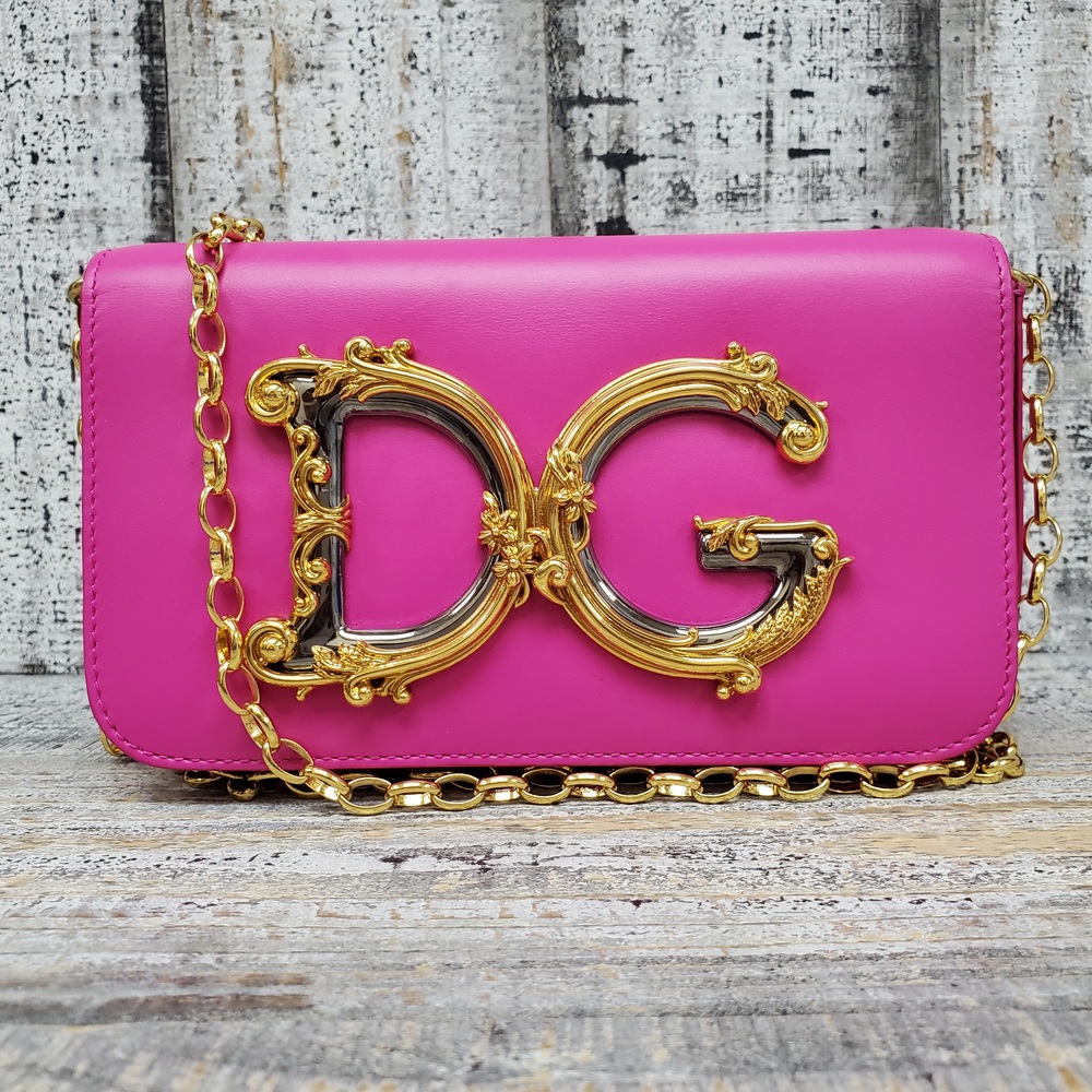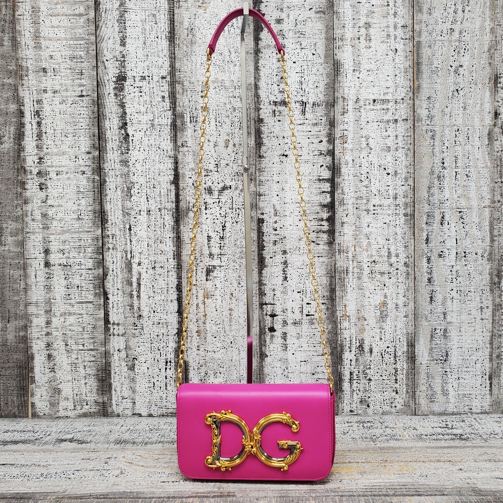 A chic Dolce Gabbana pink shoulder bag in good condition, featuring elegant design, spacious interiors, durable material, and convenient adjustable shoulder strap.