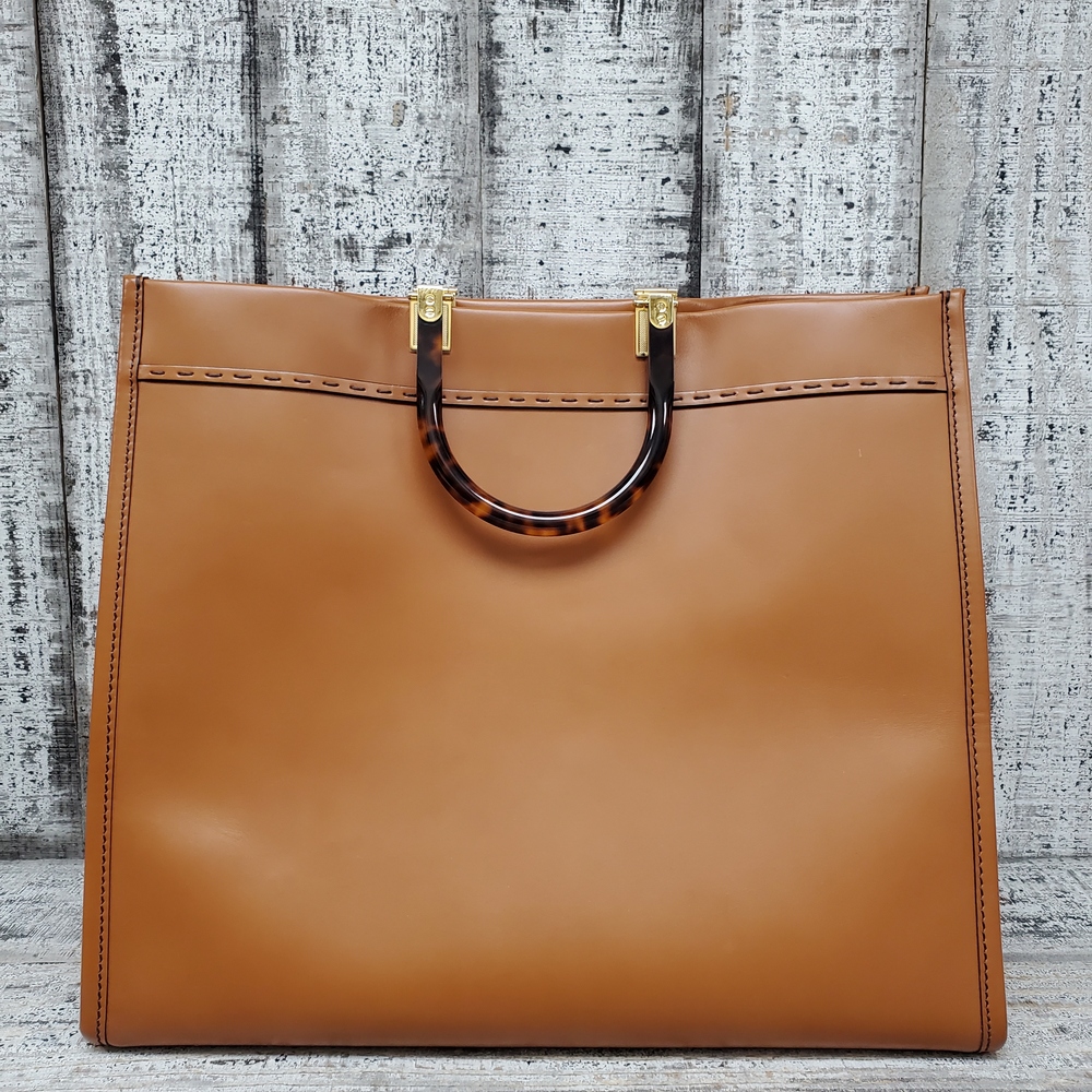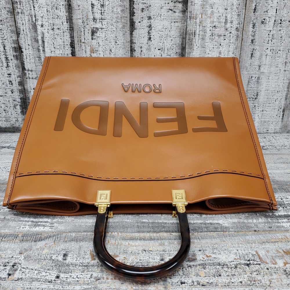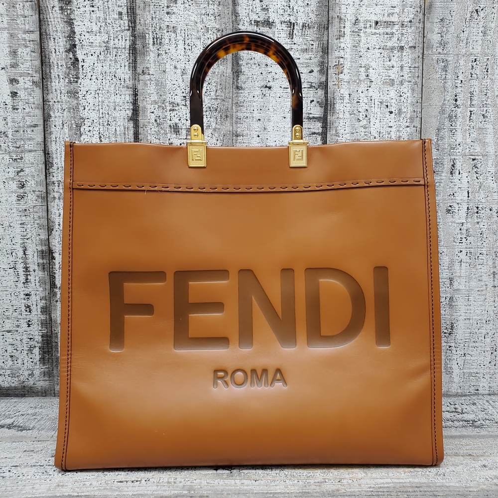A medium-sized, stylish Fendi Sunshine tote, perfect for everyday use, exuding elegance with its modern design, high-quality materials, and distinct Fendi logo.