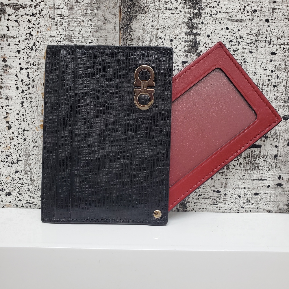 A sleek, compact Ferragamo leather card holder, elegantly designed with multiple slots for cards, durable and perfect for streamlined, minimalist everyday carry essentials.