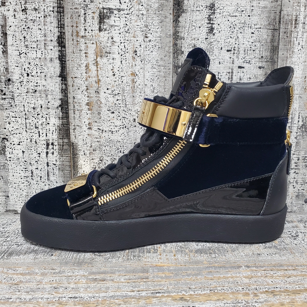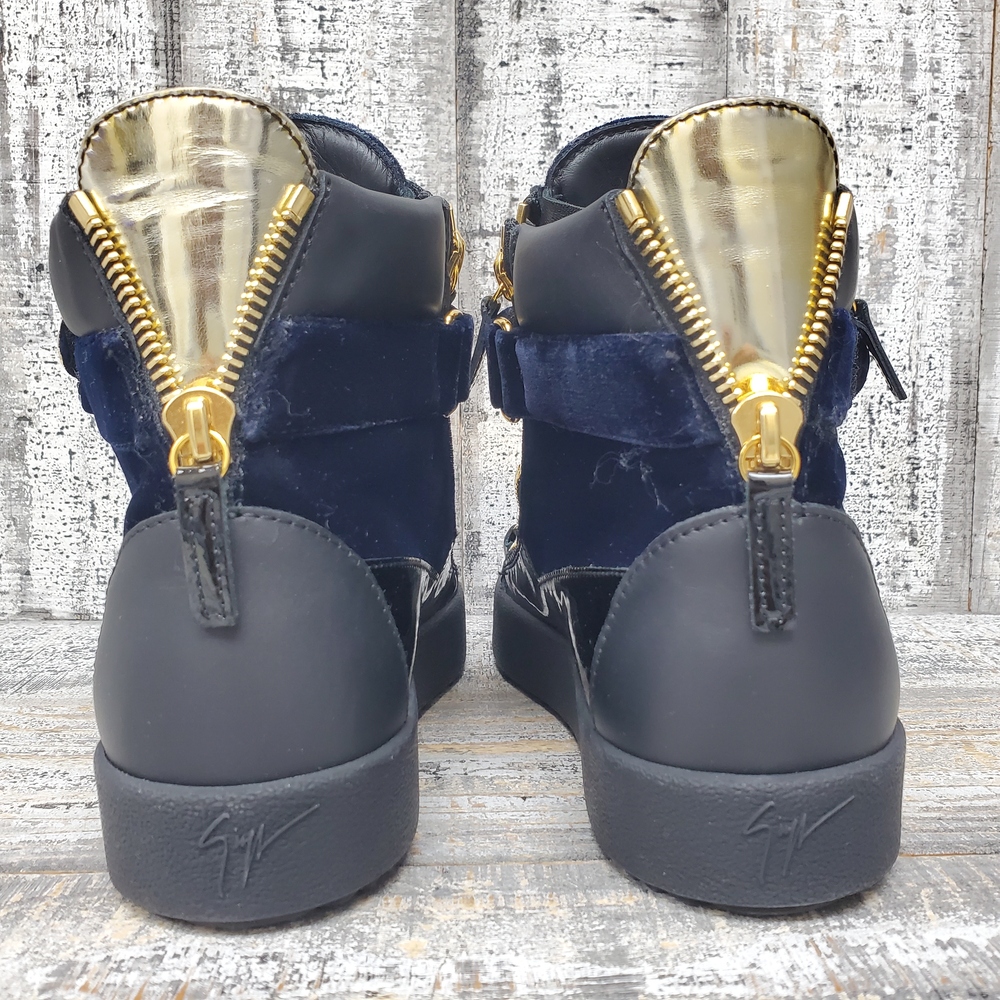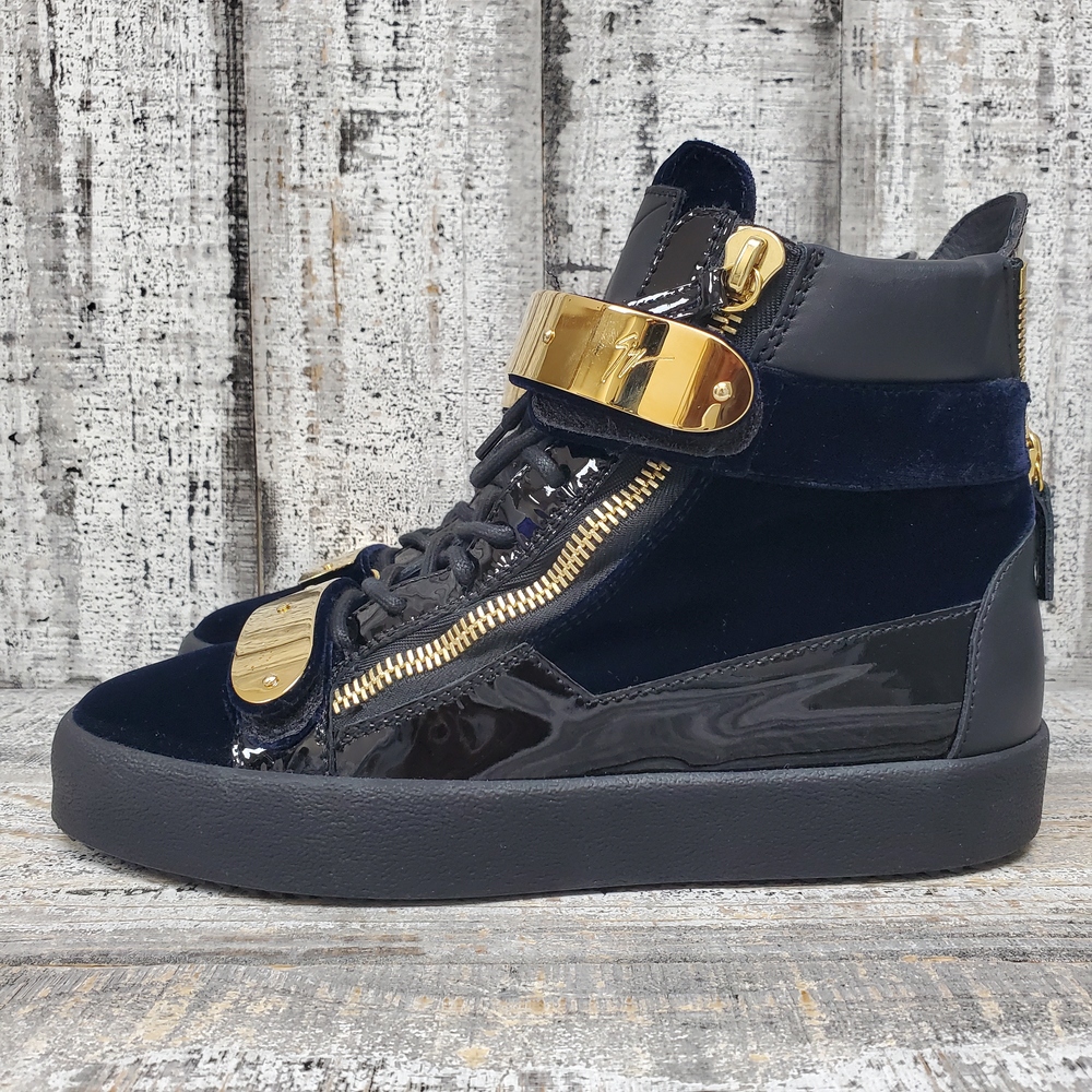 Used Giuseppe Zanotti Coby mid-top sneakers, size 42. Comes in original box. Show signs of wear but in decent condition. Perfect for stylish, comfortable footwear.