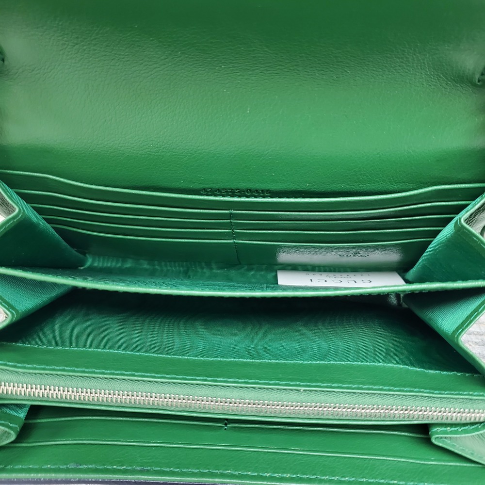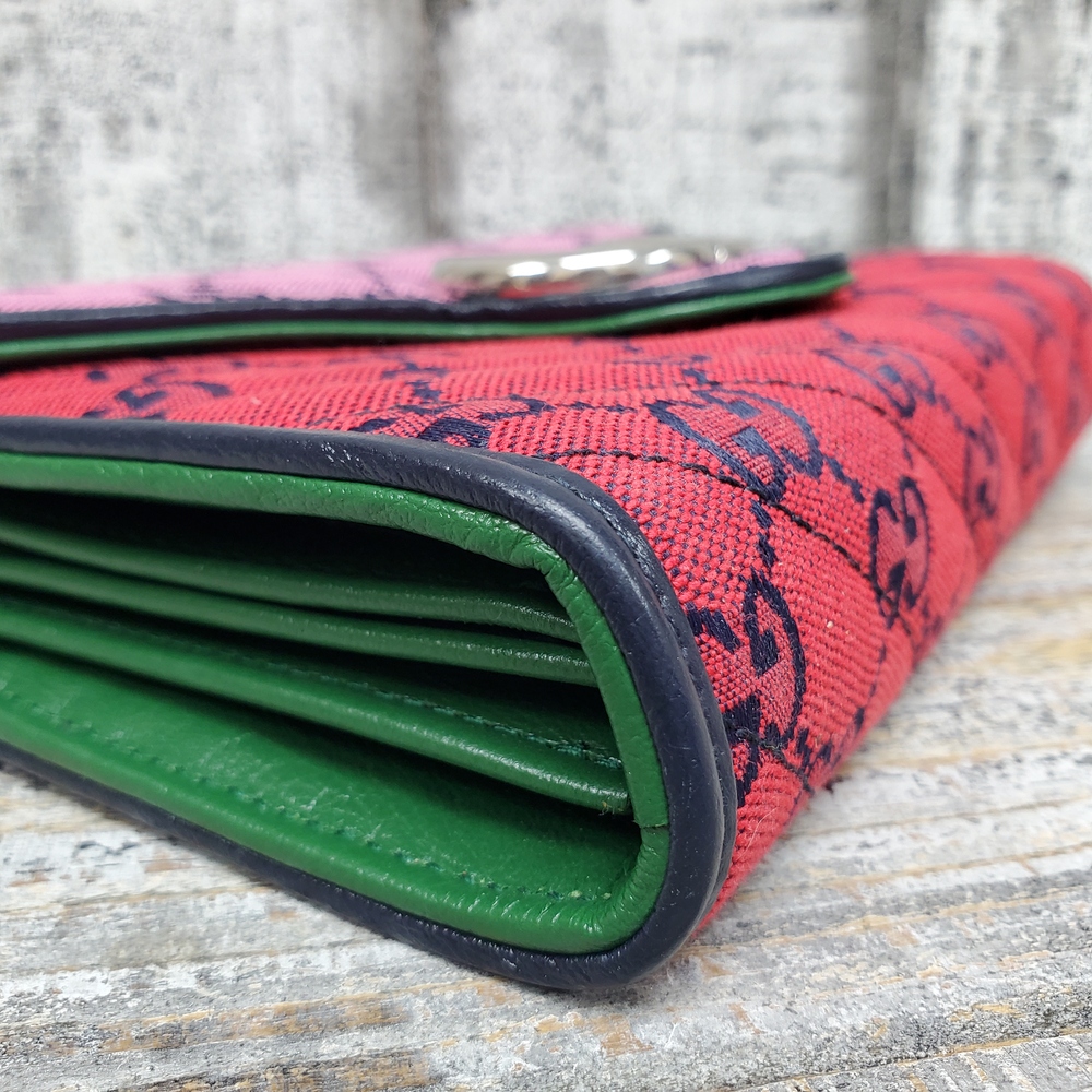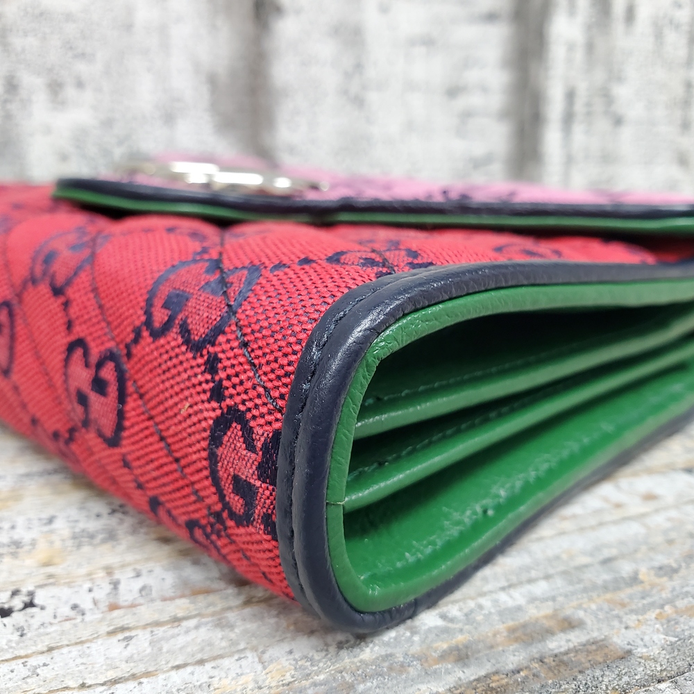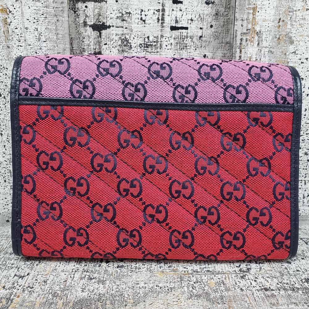 A pristine 2021 Gucci Marmont Bag, showcasing a vibrant multicolor palette, luxurious hardware details, classic quilted design, an epitome of fashion-forward elegance and functionality.