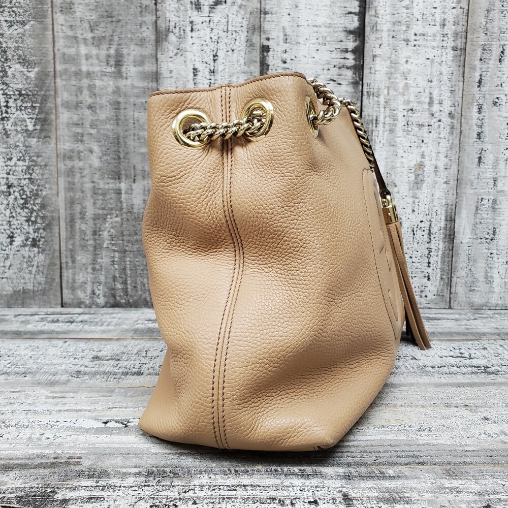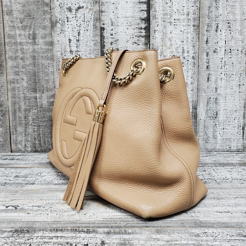 Dept: FOH ID: 1193660 Hand Bag Gucci 308982 Gucci Pebbled Calfskin Medium Soho Chain Shoulder Bag Rose Beige + some stains inside EID:jrk2bhv ID: 1193660 Apparel/Handbags