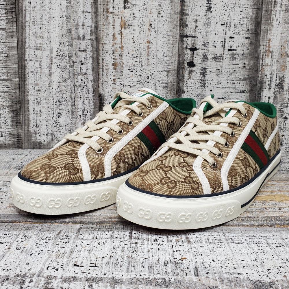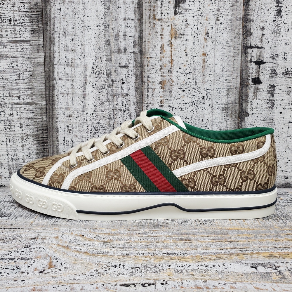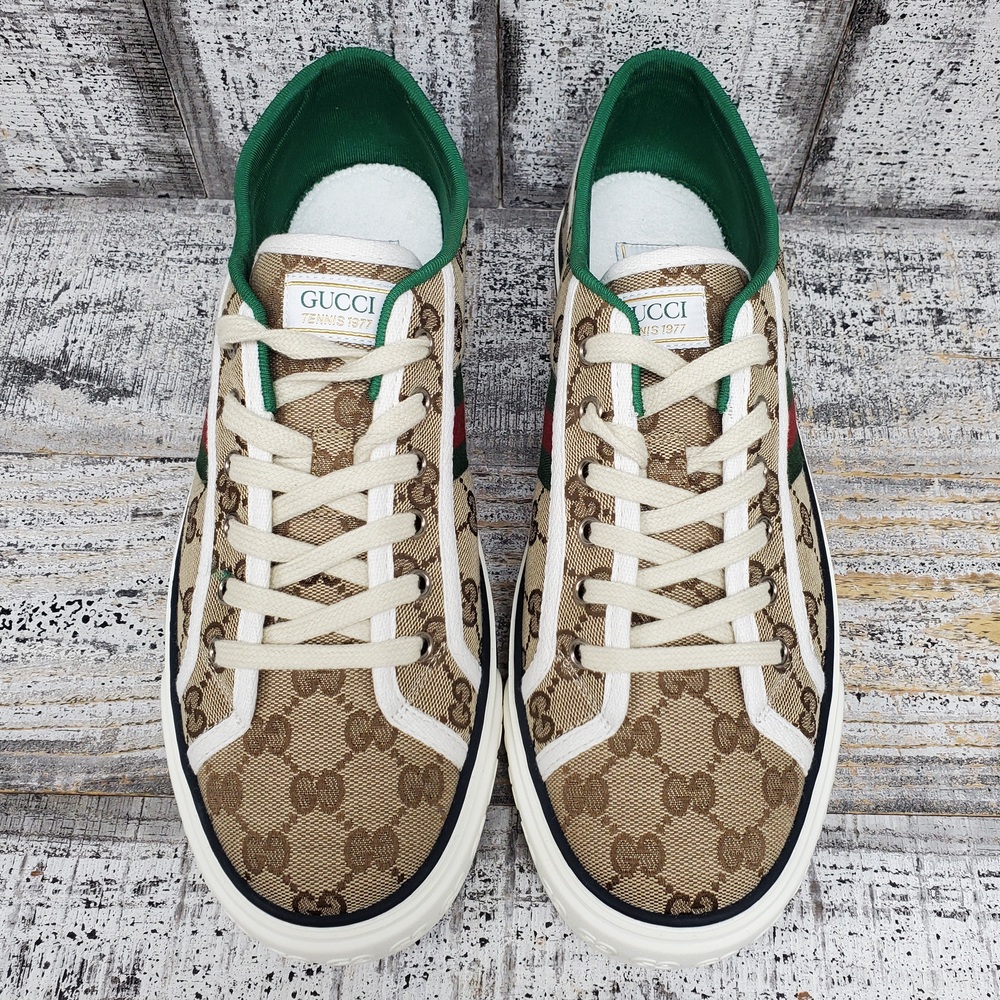 Genuine Gucci Ace Size:9 sneakers with original box, showcasing iconic styles. Regarded for unmatched comfort, high-quality craftsmanship, and luxury elegance. Suitable for everyday wear.