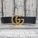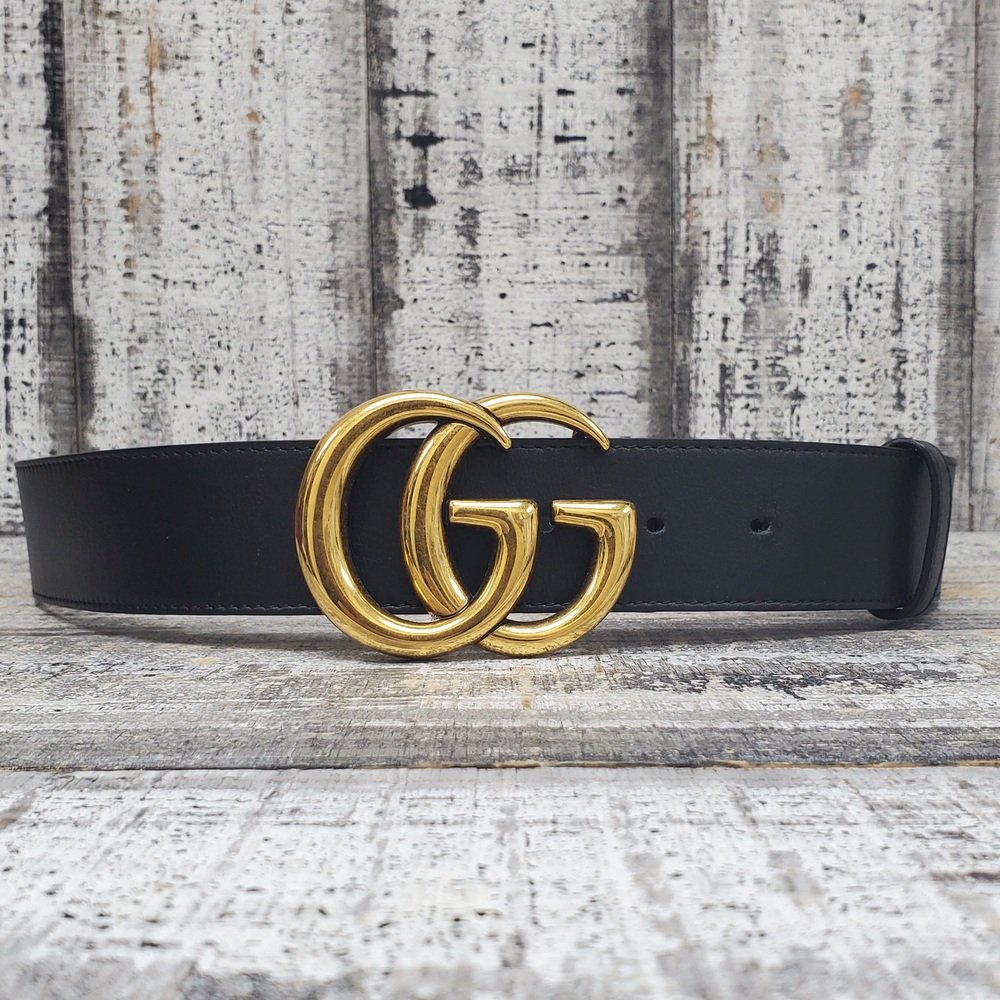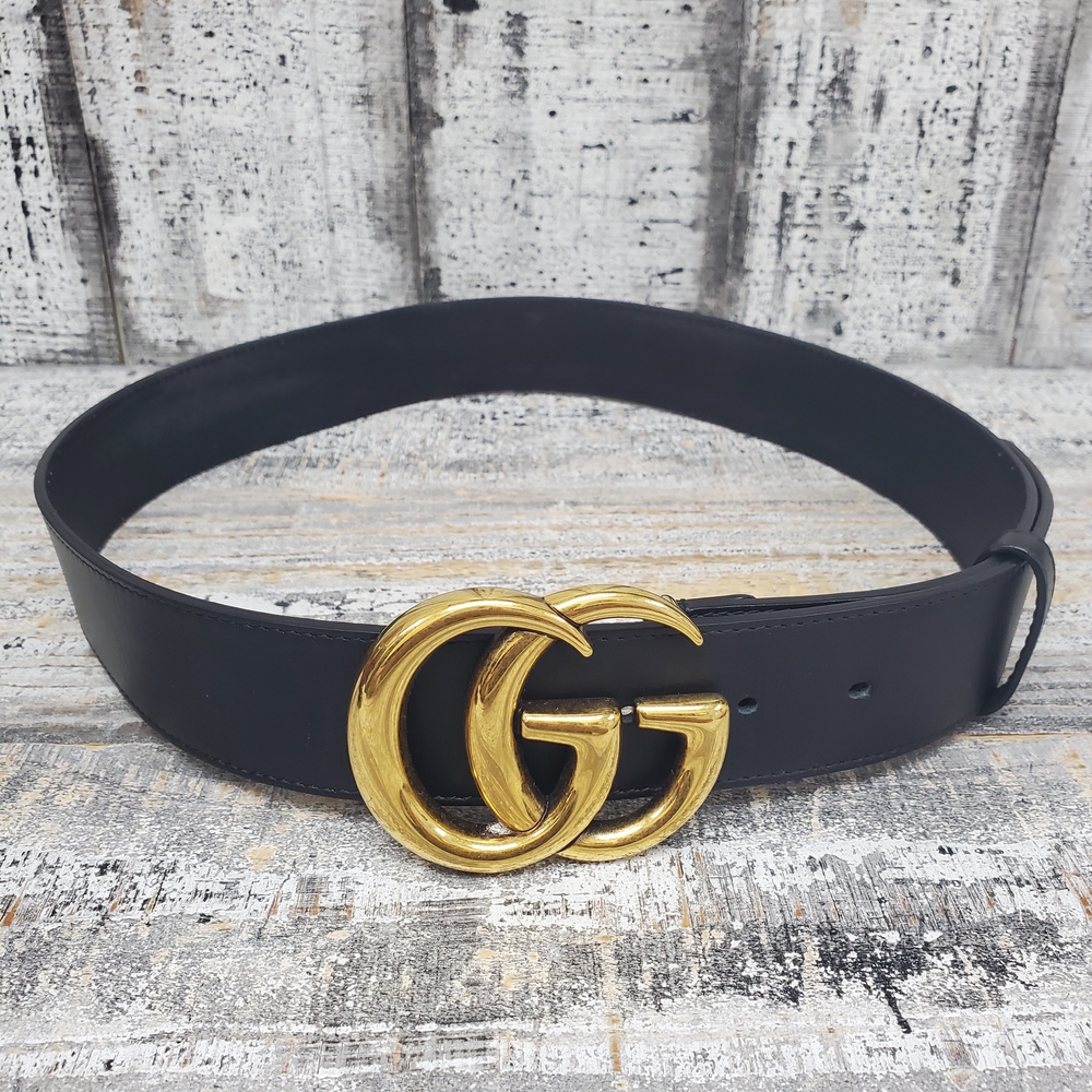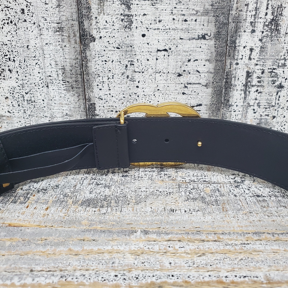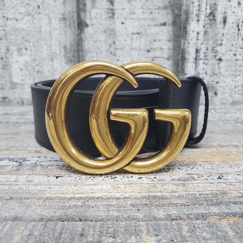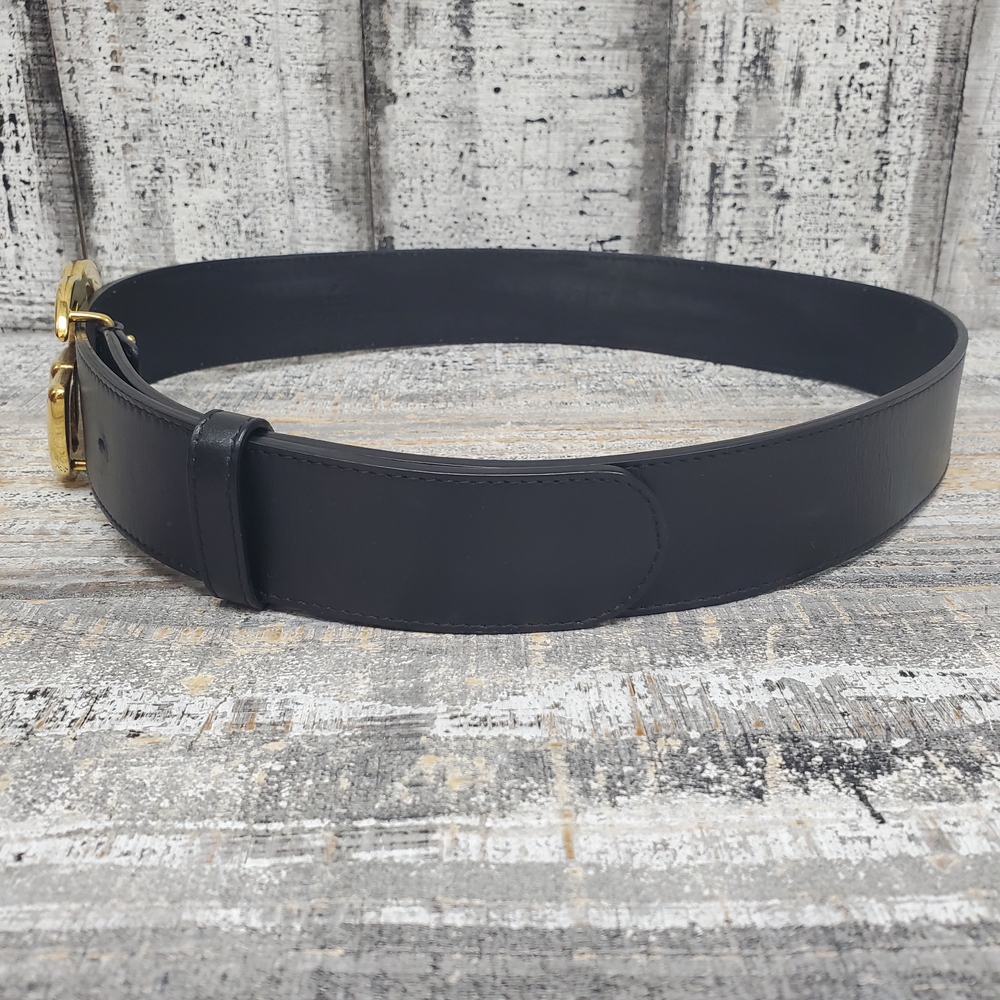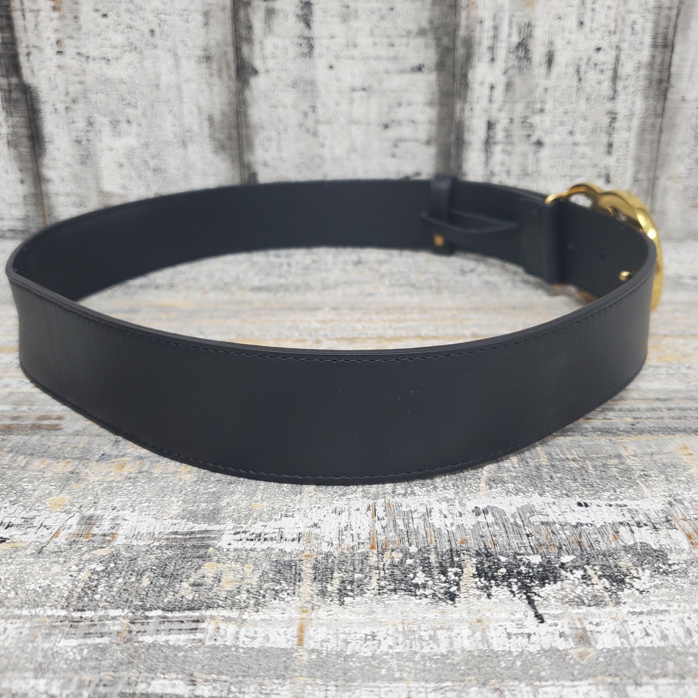 Used condition, size 34 Gucci black belt. Exhibits wear consistent with prior use, yet retains the brand's quality craftsmanship and notable luxury style.