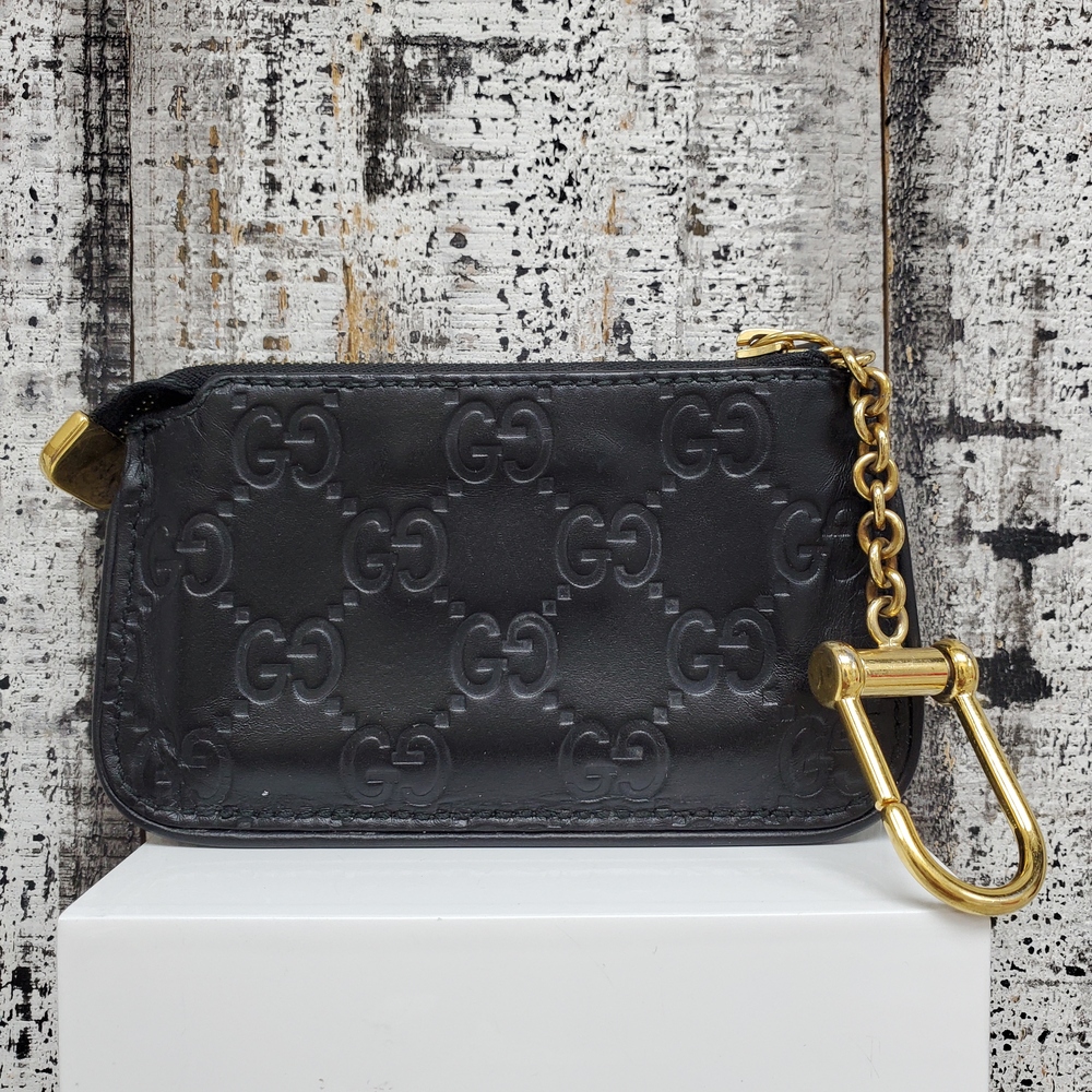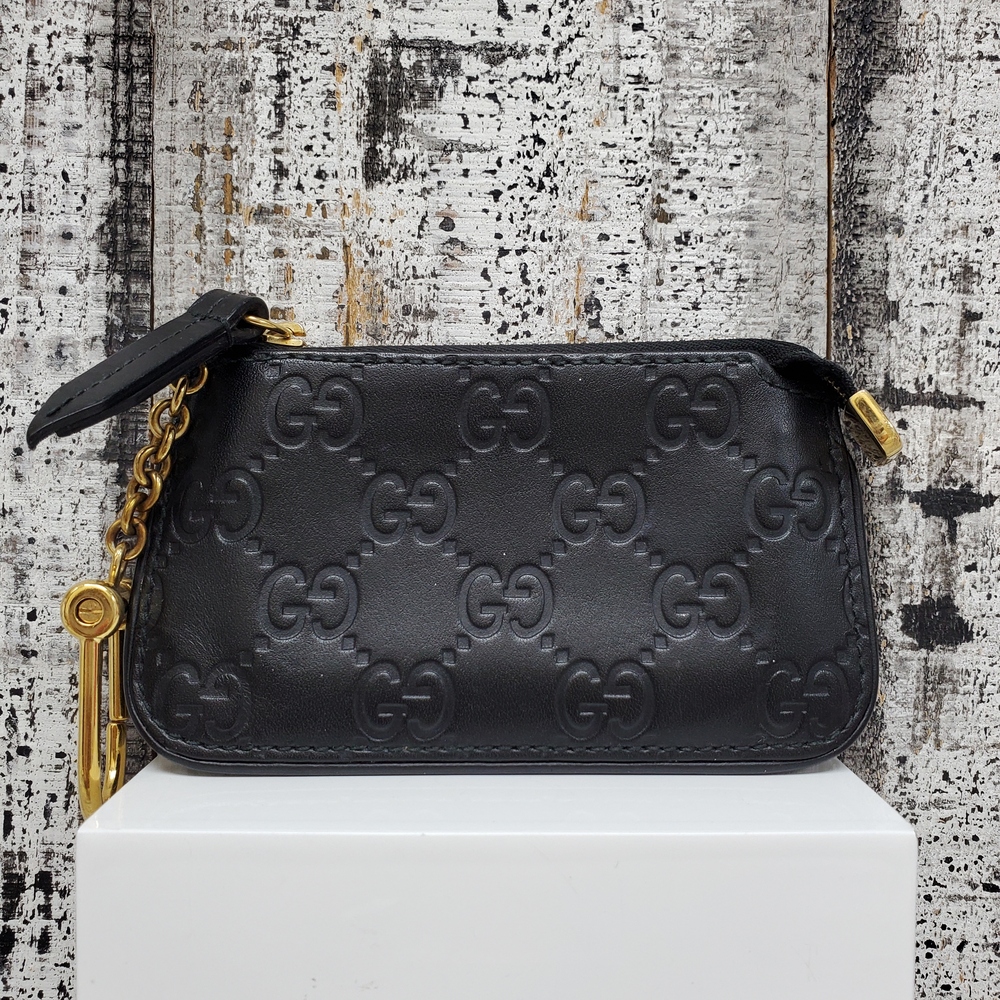 A Gucci coin purse is a luxury, compact accessory designed for securely storing coins. It features high-quality materials, sophisticated design and the iconic Gucci logo.