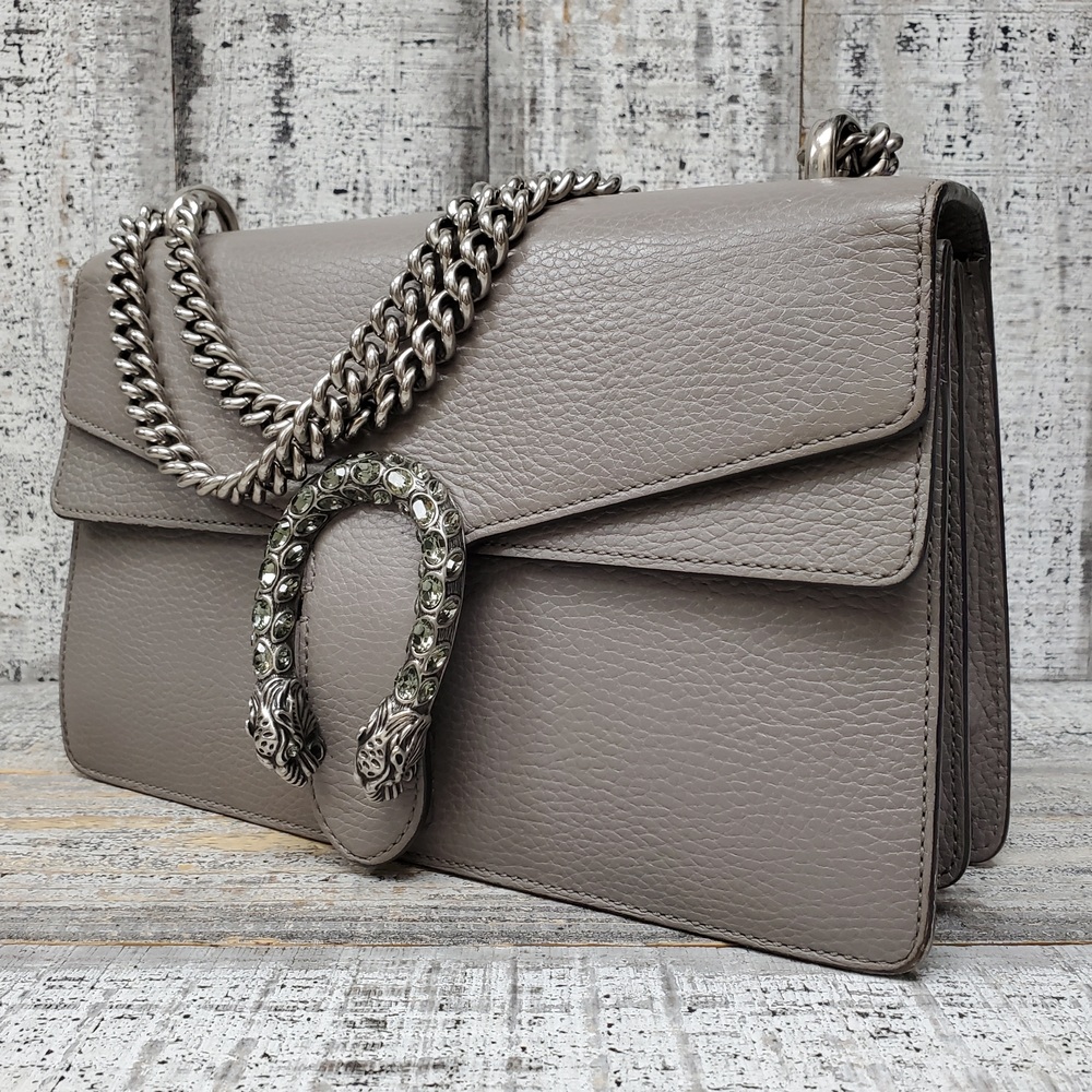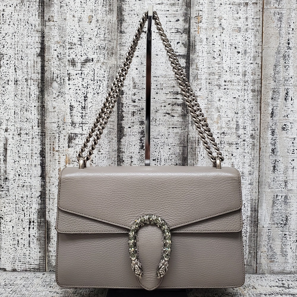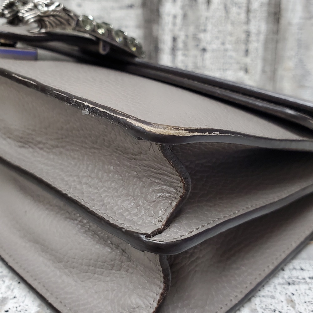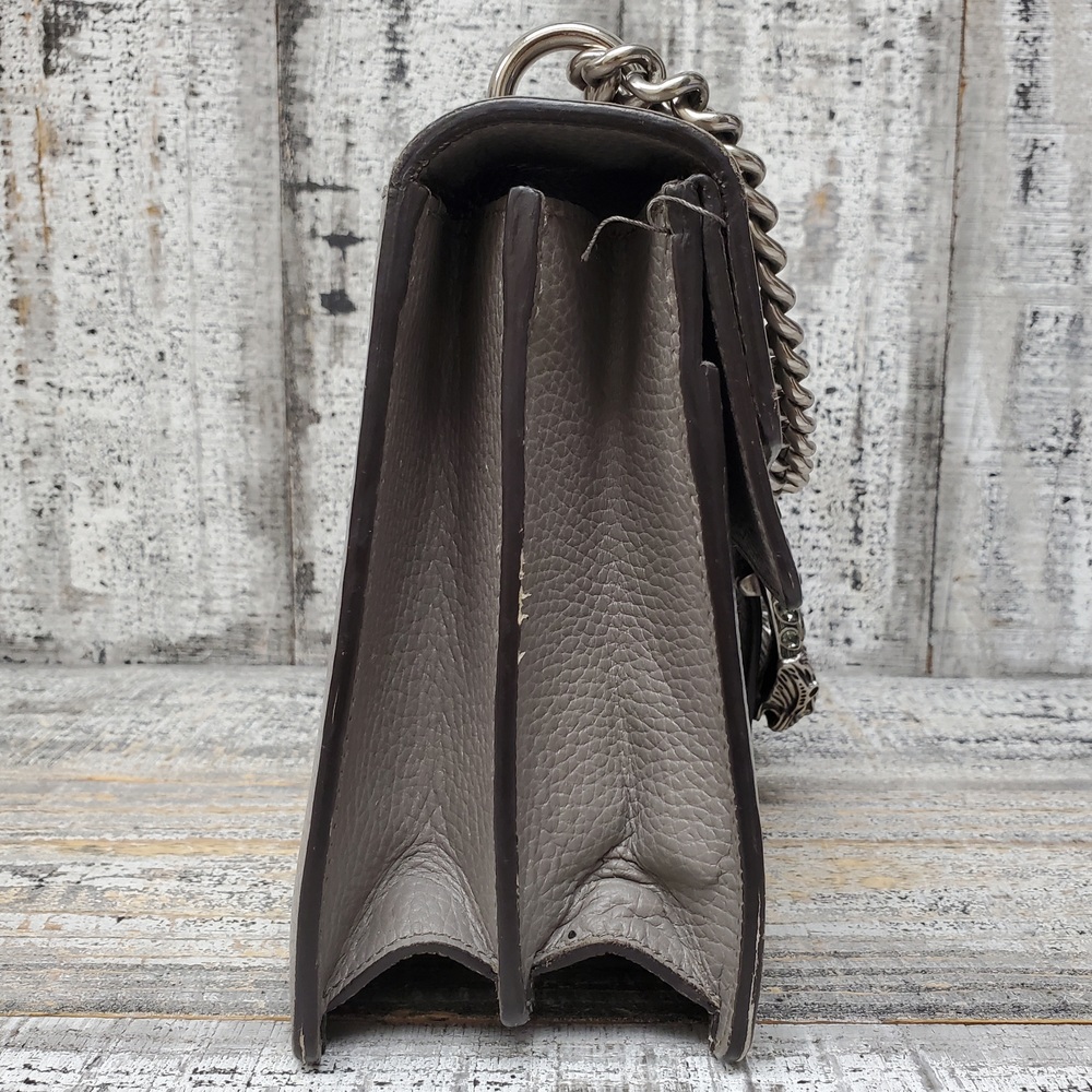 This is a stylish Gucci Dionysus gray handbag, in good condition but with some interior stains. It exudes elegance and luxury, perfect for fashion-forward individuals. Ideal for everyday use or special occasions. Despite its minor flaws, it remains a valuable addition to any wardrobe.