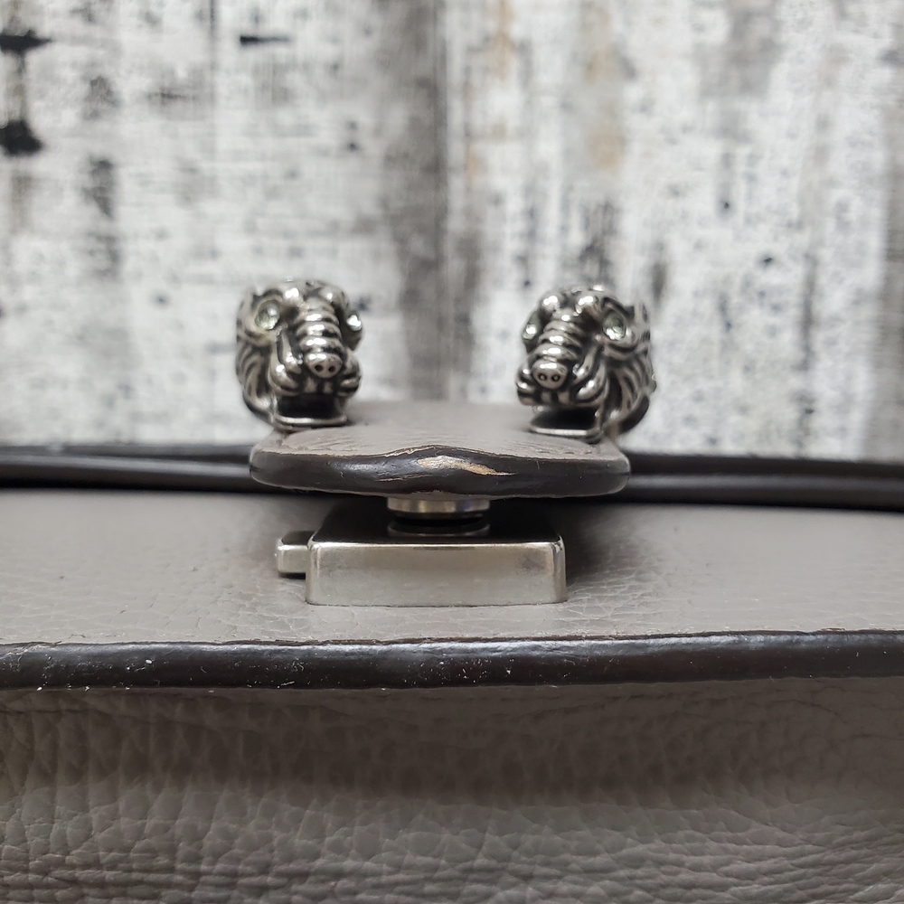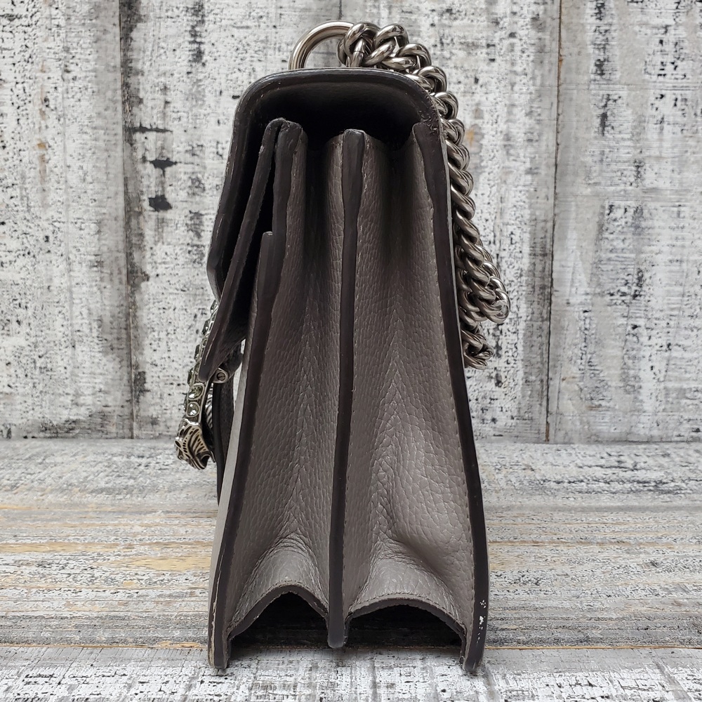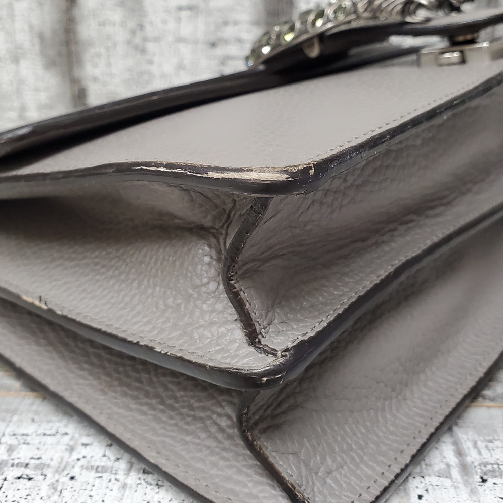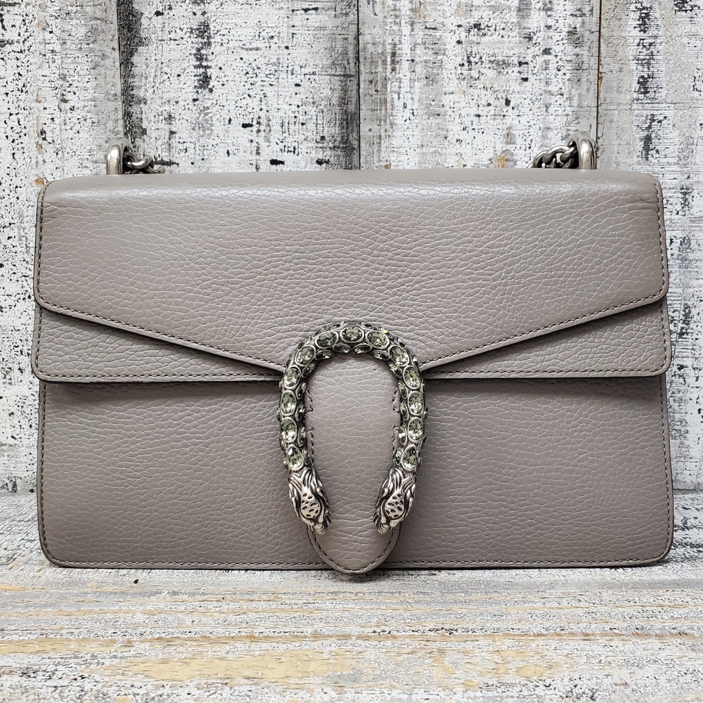 This is a stylish Gucci Dionysus gray handbag, in good condition but with some interior stains. It exudes elegance and luxury, perfect for fashion-forward individuals. Ideal for everyday use or special occasions. Despite its minor flaws, it remains a valuable addition to any wardrobe.
