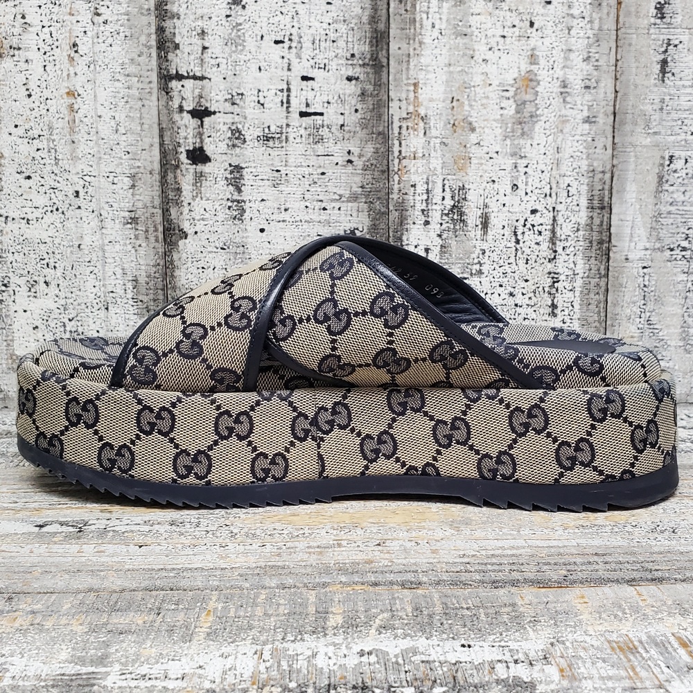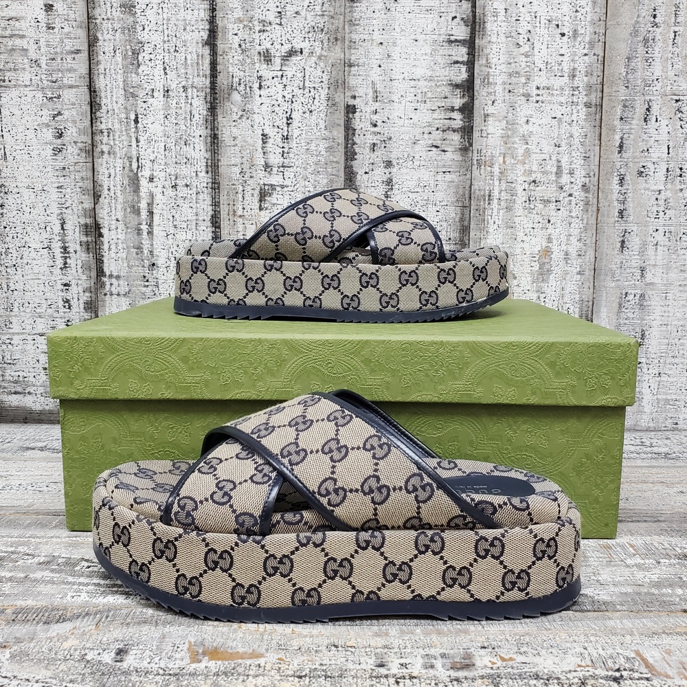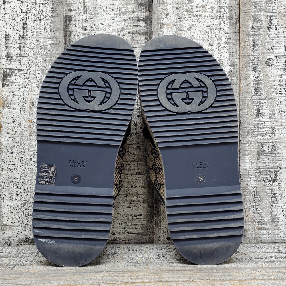 Stylish Gucci GG Women's Sandals, size 39. Elegant, high-quality material, comfortable staple for a fashion-forward wardrobe, comes in an original Gucci box.