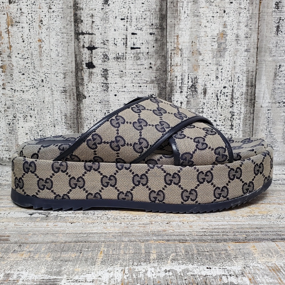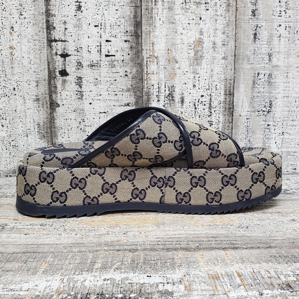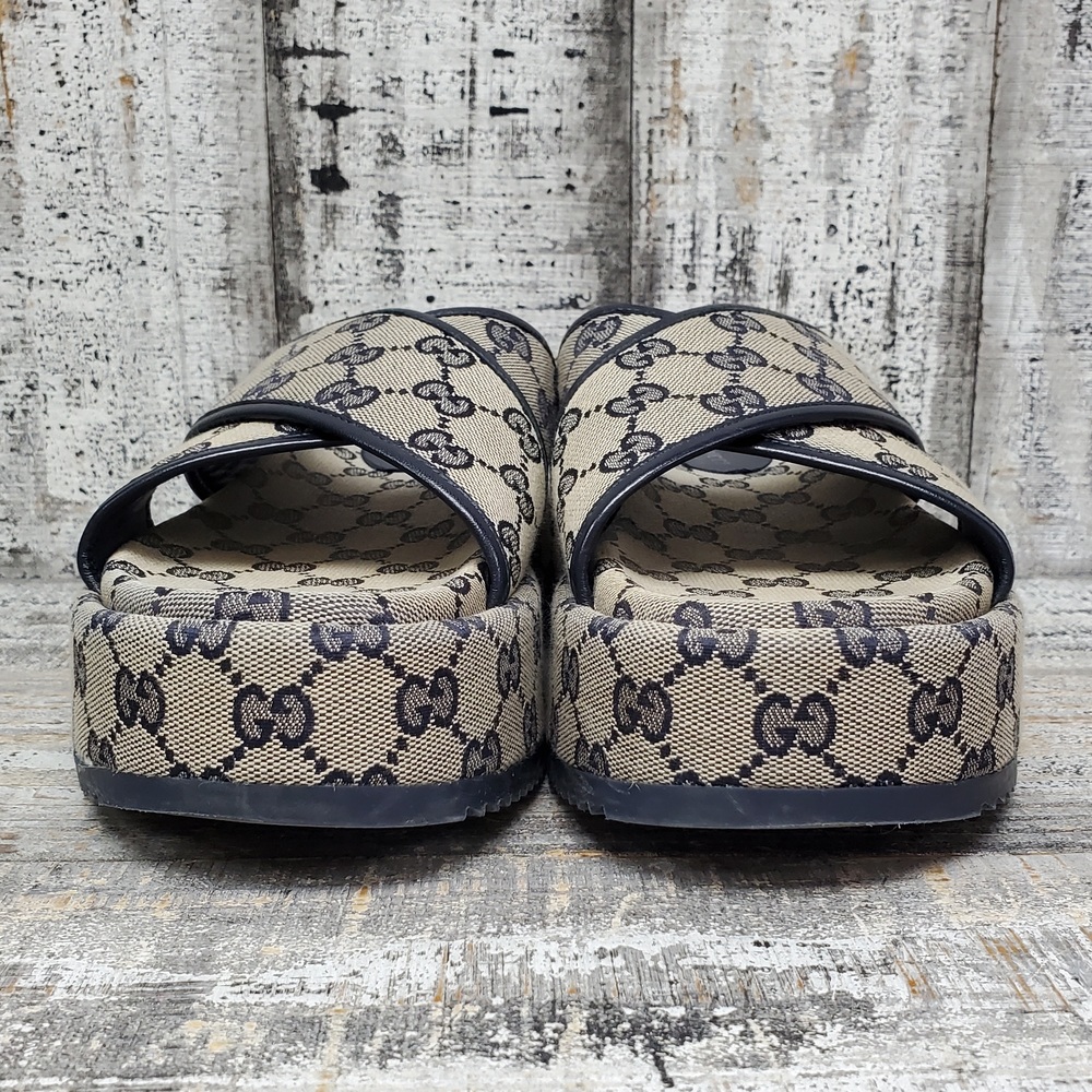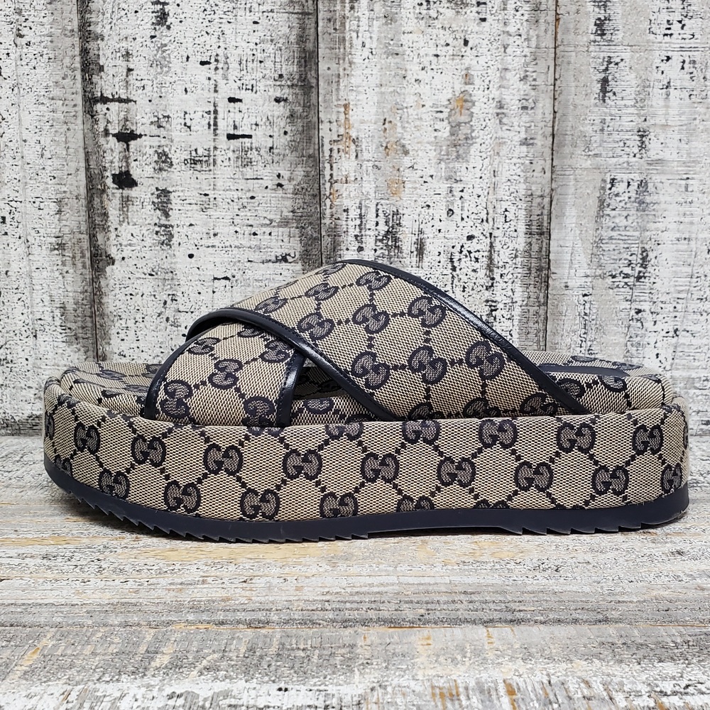 Stylish Gucci GG Women's Sandals, size 39. Elegant, high-quality material, comfortable staple for a fashion-forward wardrobe, comes in an original Gucci box.