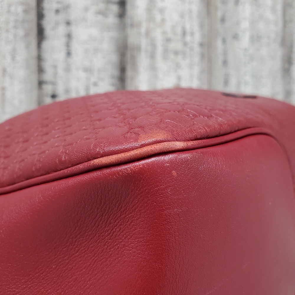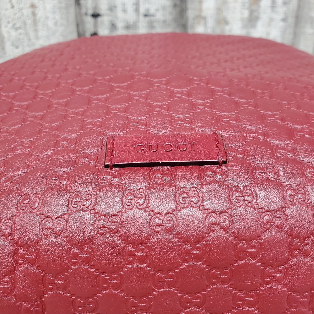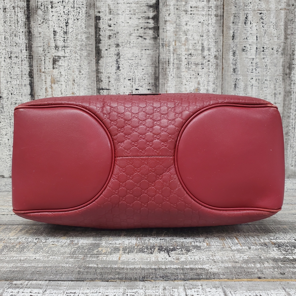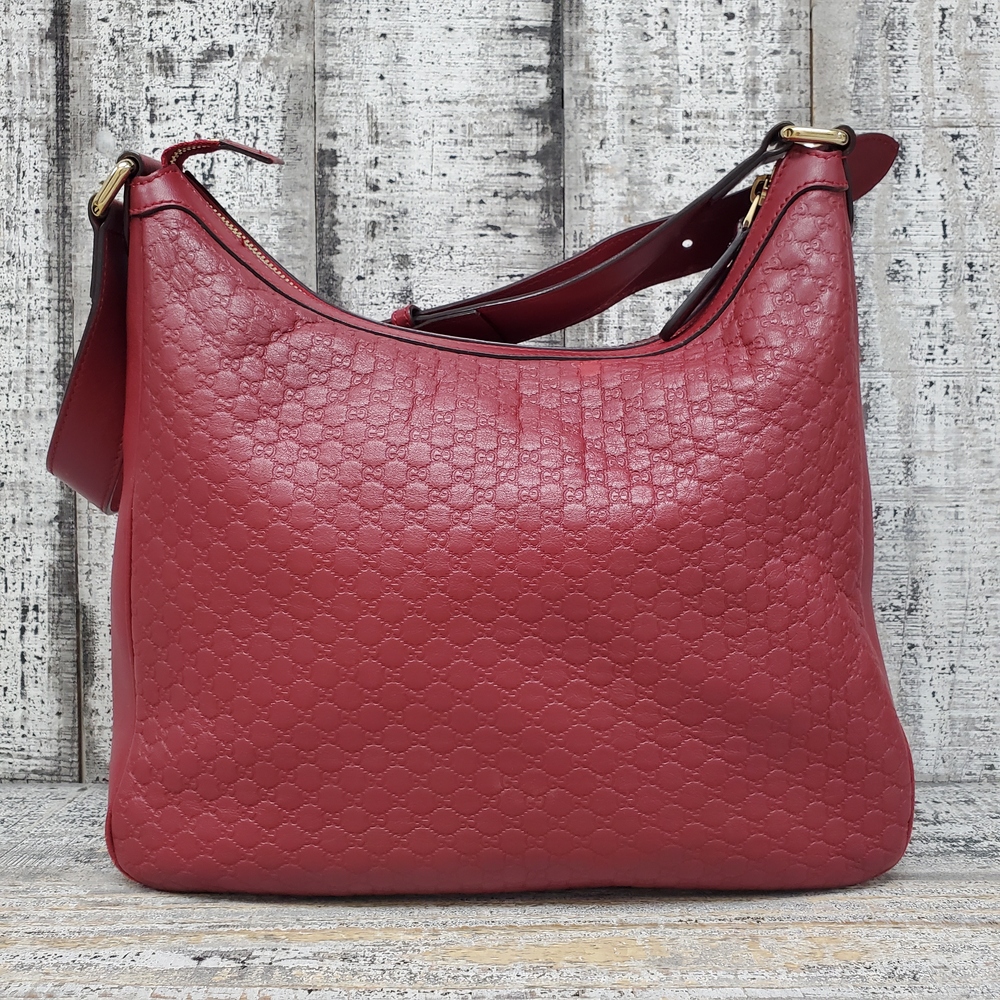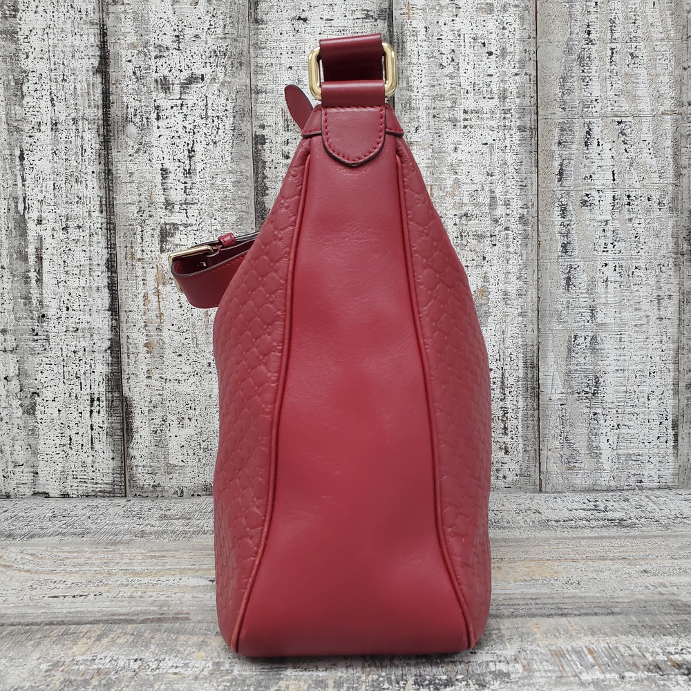 A luxurious Gucci Guccissima hobo bag, crafted from rich red leather, featuring signature brand patterning, a spacious interior, and high-quality Italian craftsmanship.