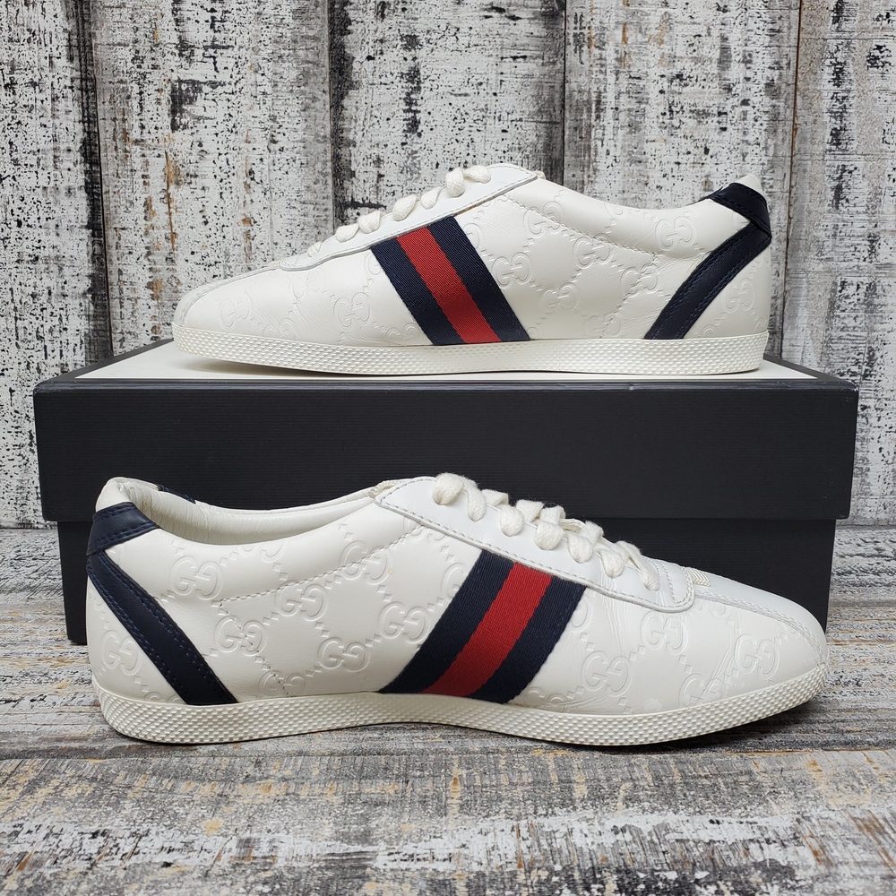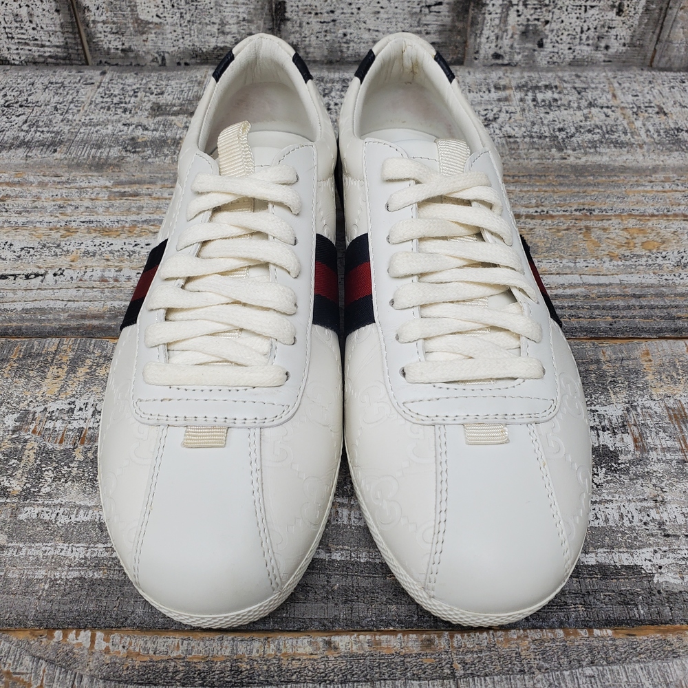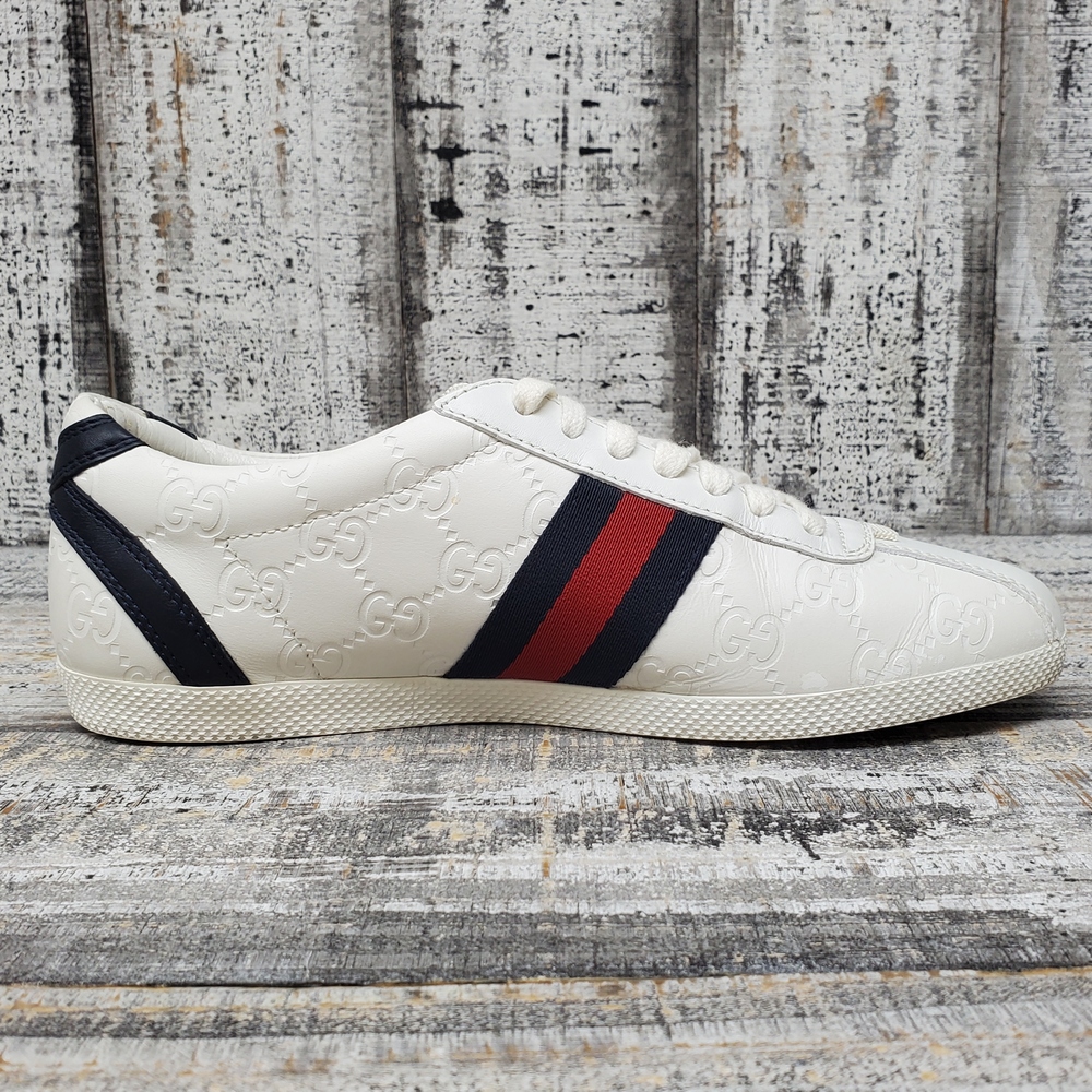 Gently used Gucci Guccissima sneakers, size 37.5. Elegant design in wearable condition. Original box included. Suitable for stylish comfort and fashionable everyday wear.