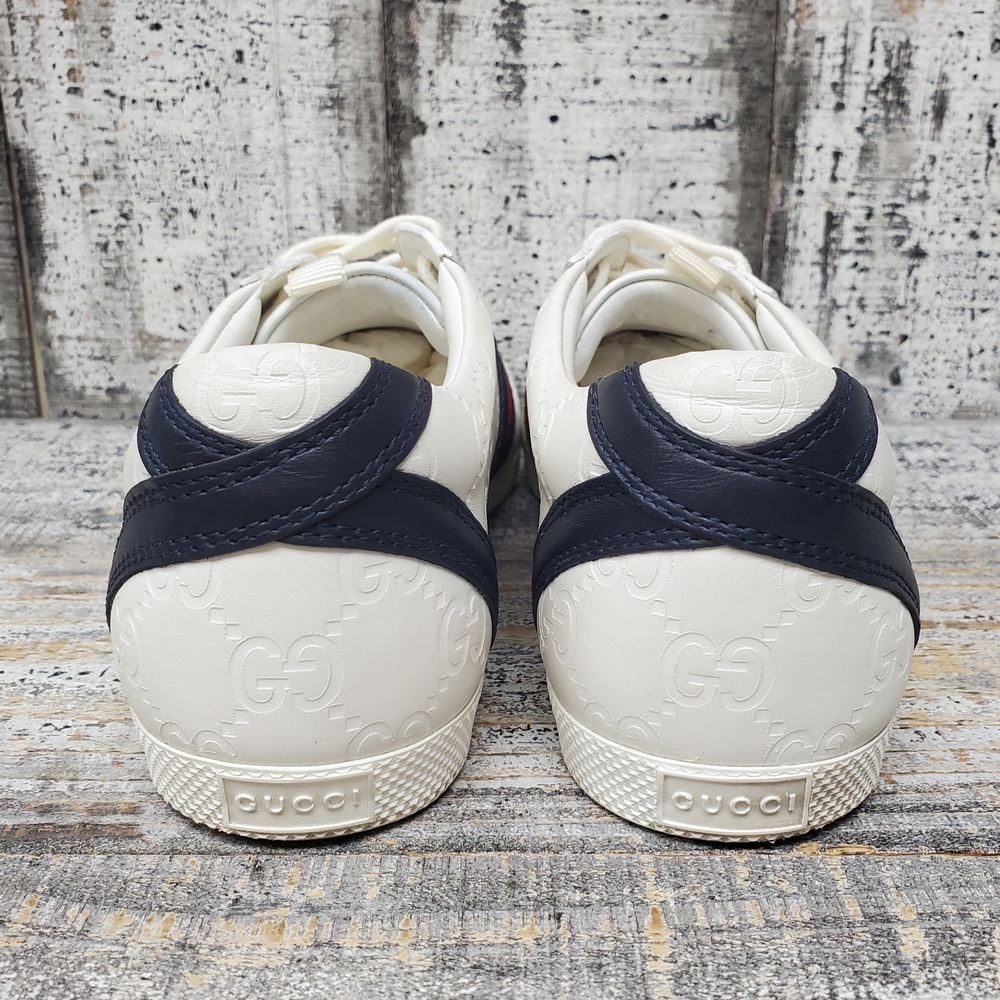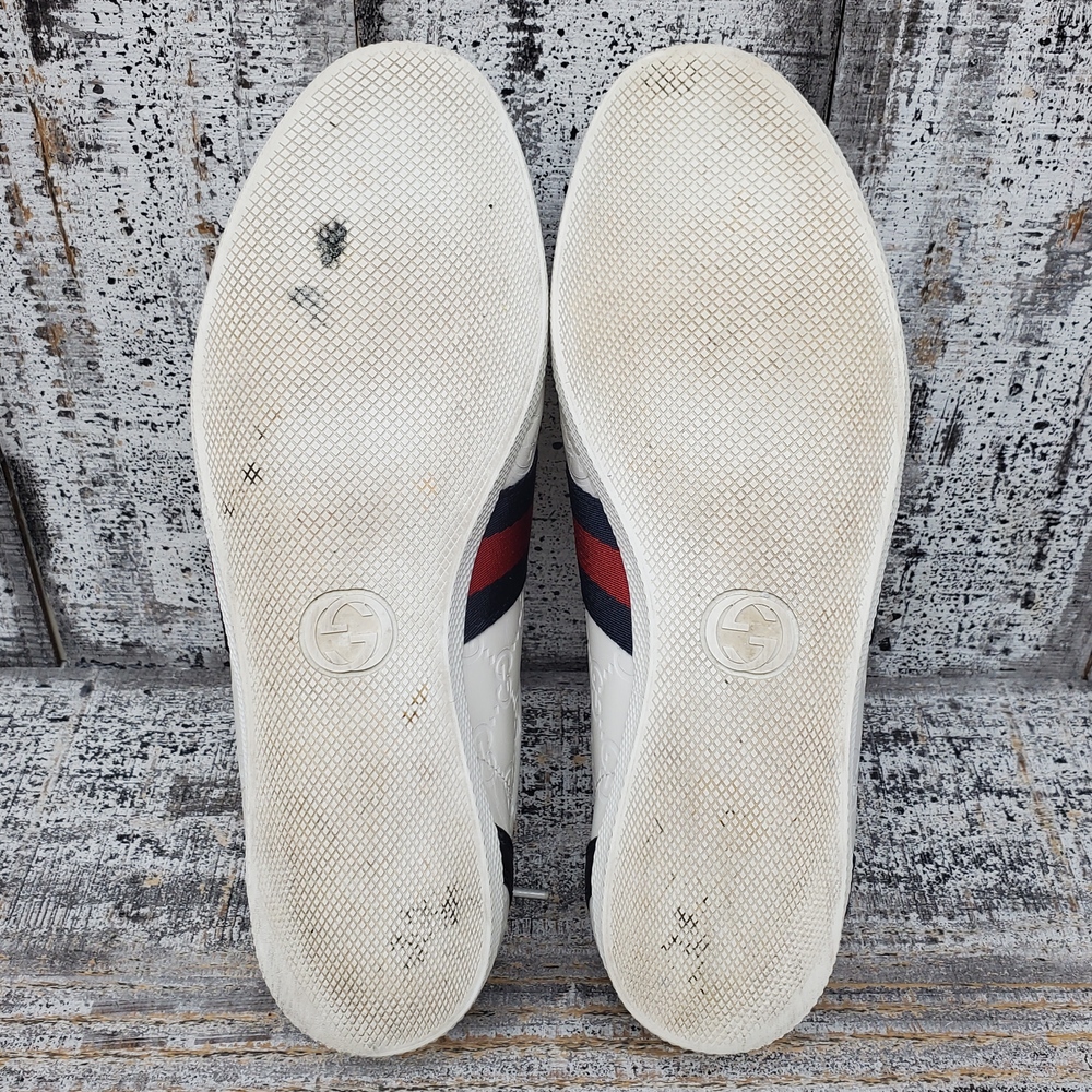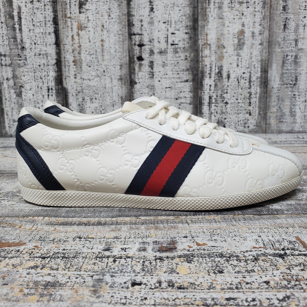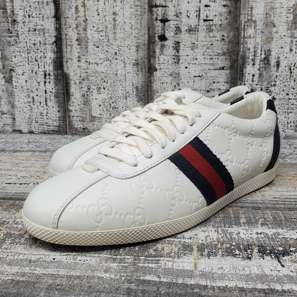 Gently used Gucci Guccissima sneakers, size 37.5. Elegant design in wearable condition. Original box included. Suitable for stylish comfort and fashionable everyday wear.