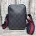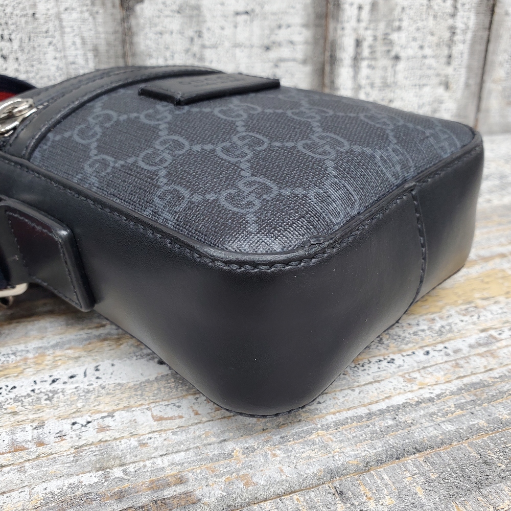 A compact, stylish Gucci small messenger bag, featuring the iconic GG Supreme canvas pattern, with a signature web detail for a classic, sophisticated touch.