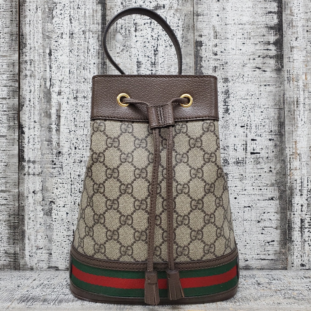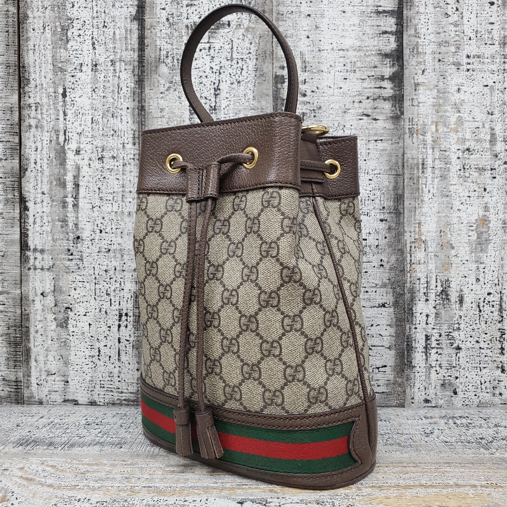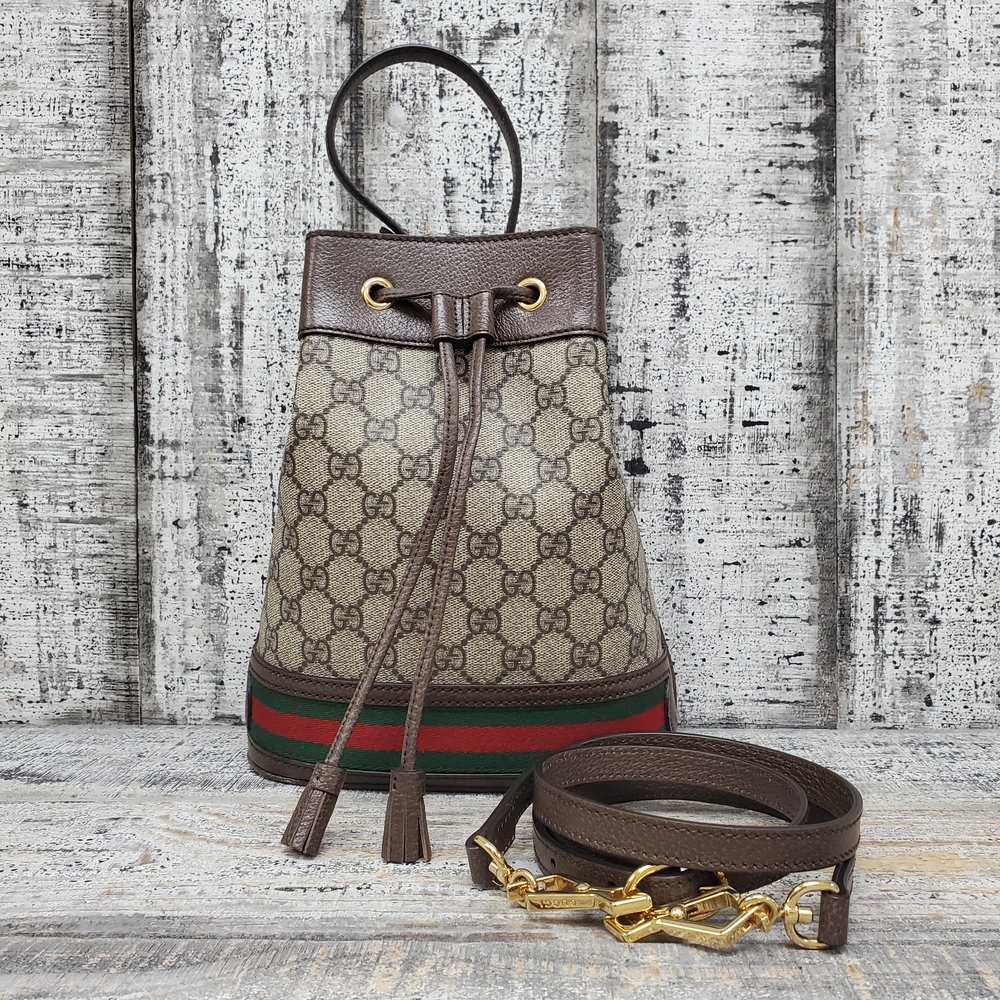 Gucci Ophidia Bucket Bag GG Supreme Mini Beige/Ebony | Dynasty Jewelry and Loan