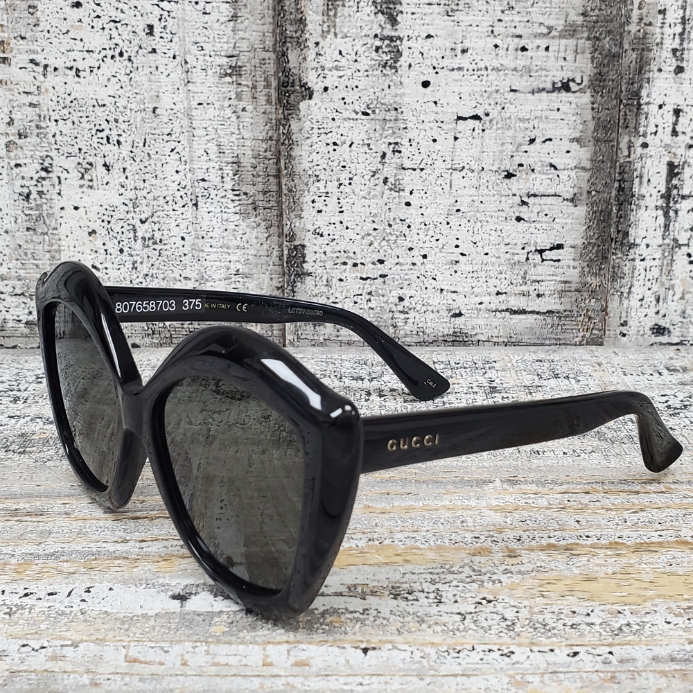 Gucci's Oversized Cats Sunglasses exude luxury with their modern design, featuring large lenses, a sleek frame, and the iconic brand logo, offering high-fashion sun protection.