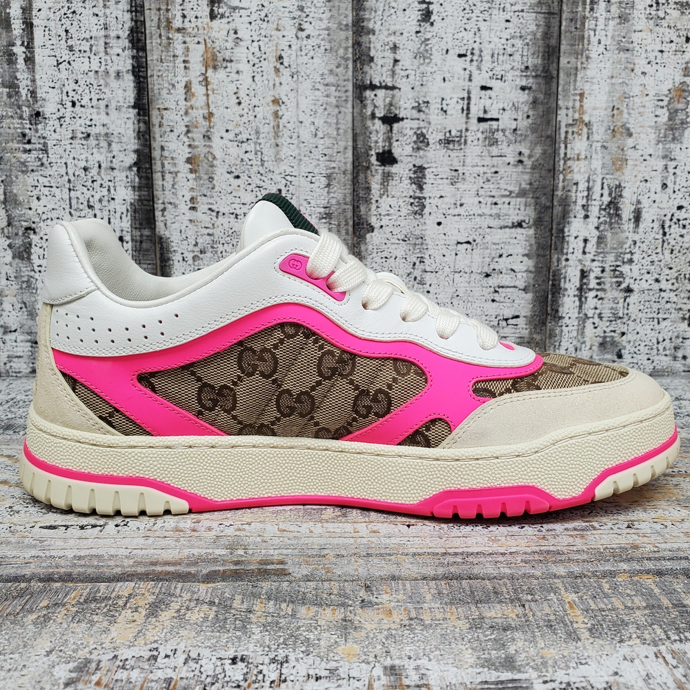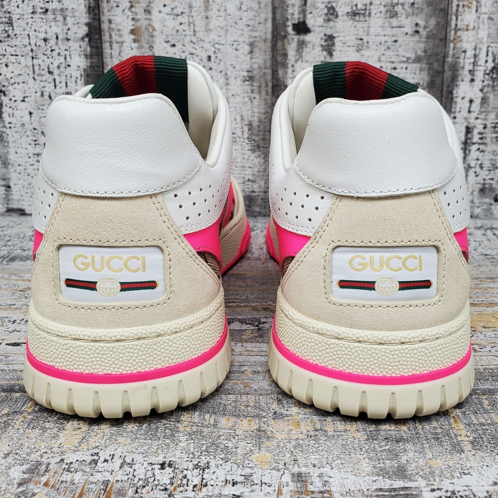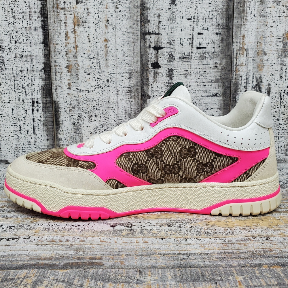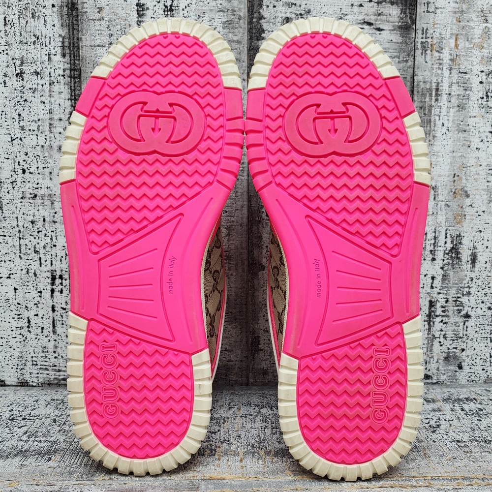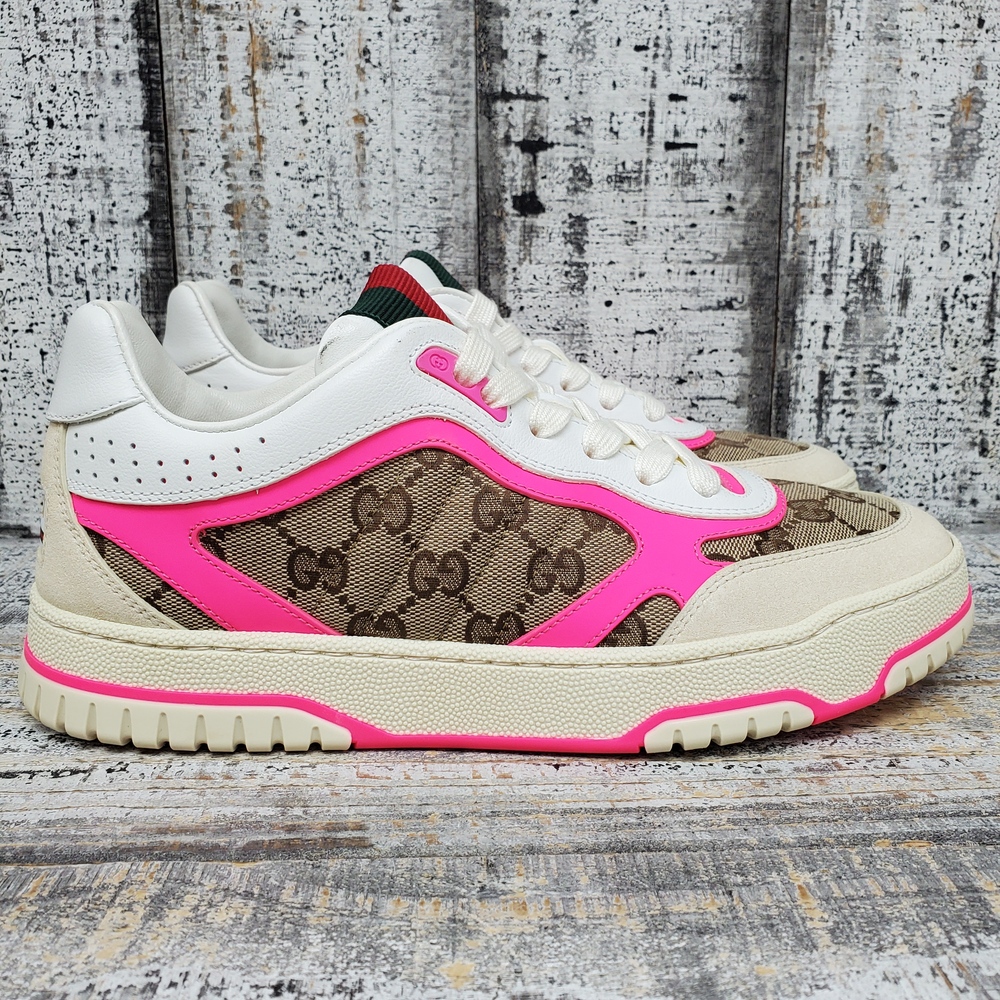 Used condition Gucci Re-Web sneakers, size 38, showcasing iconic brand design. Comes without original box. Fashionable and classic with normal wear and tear.