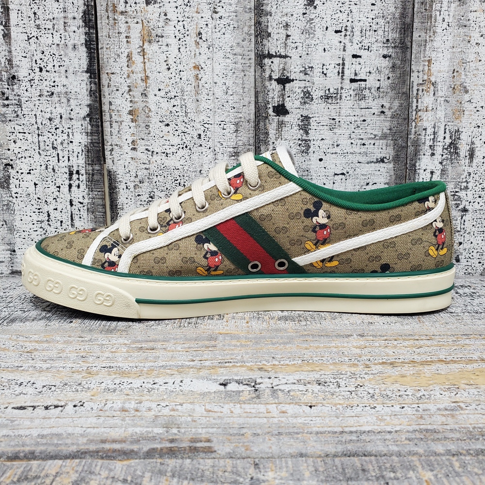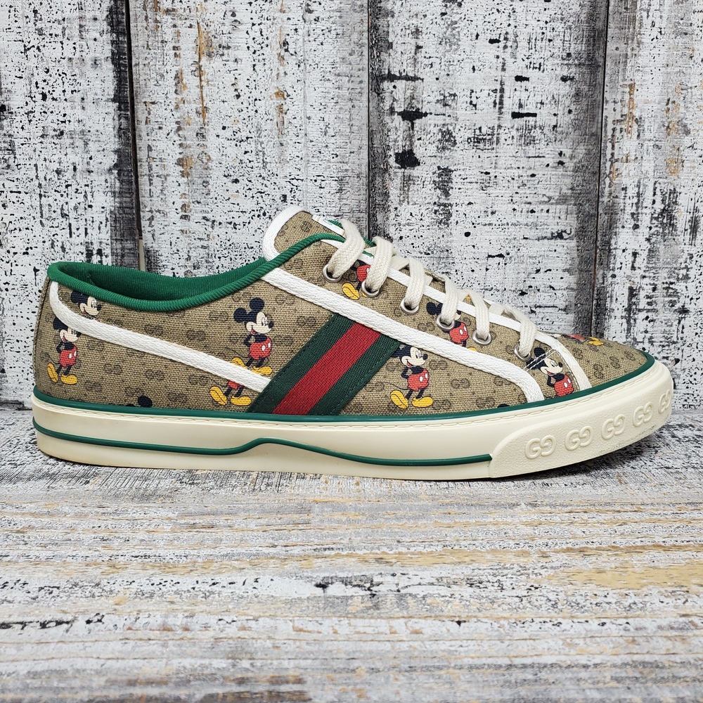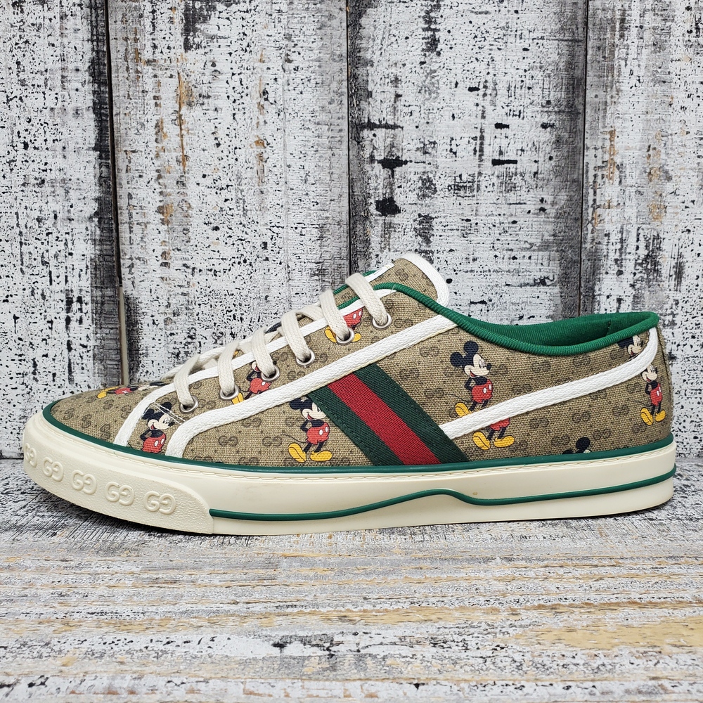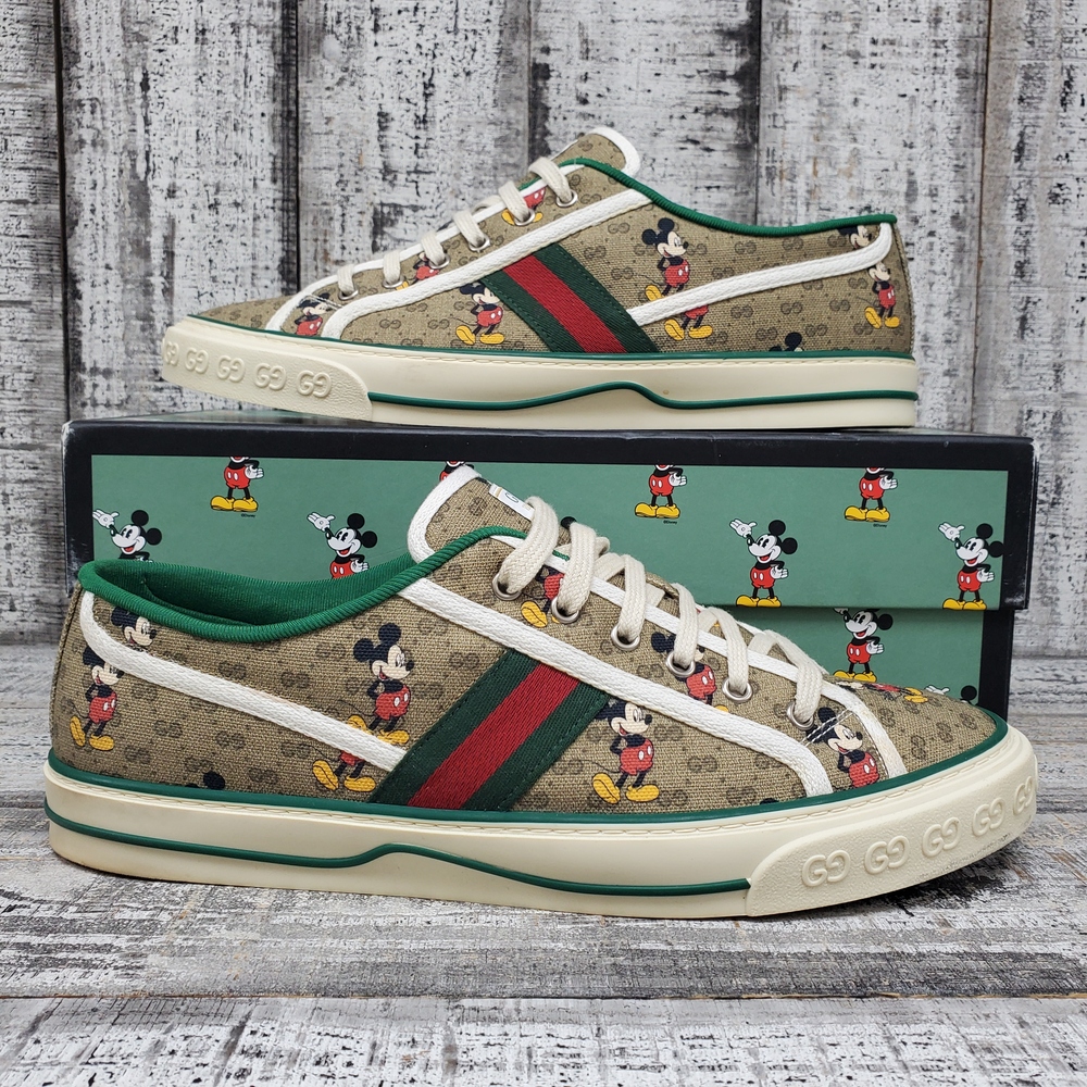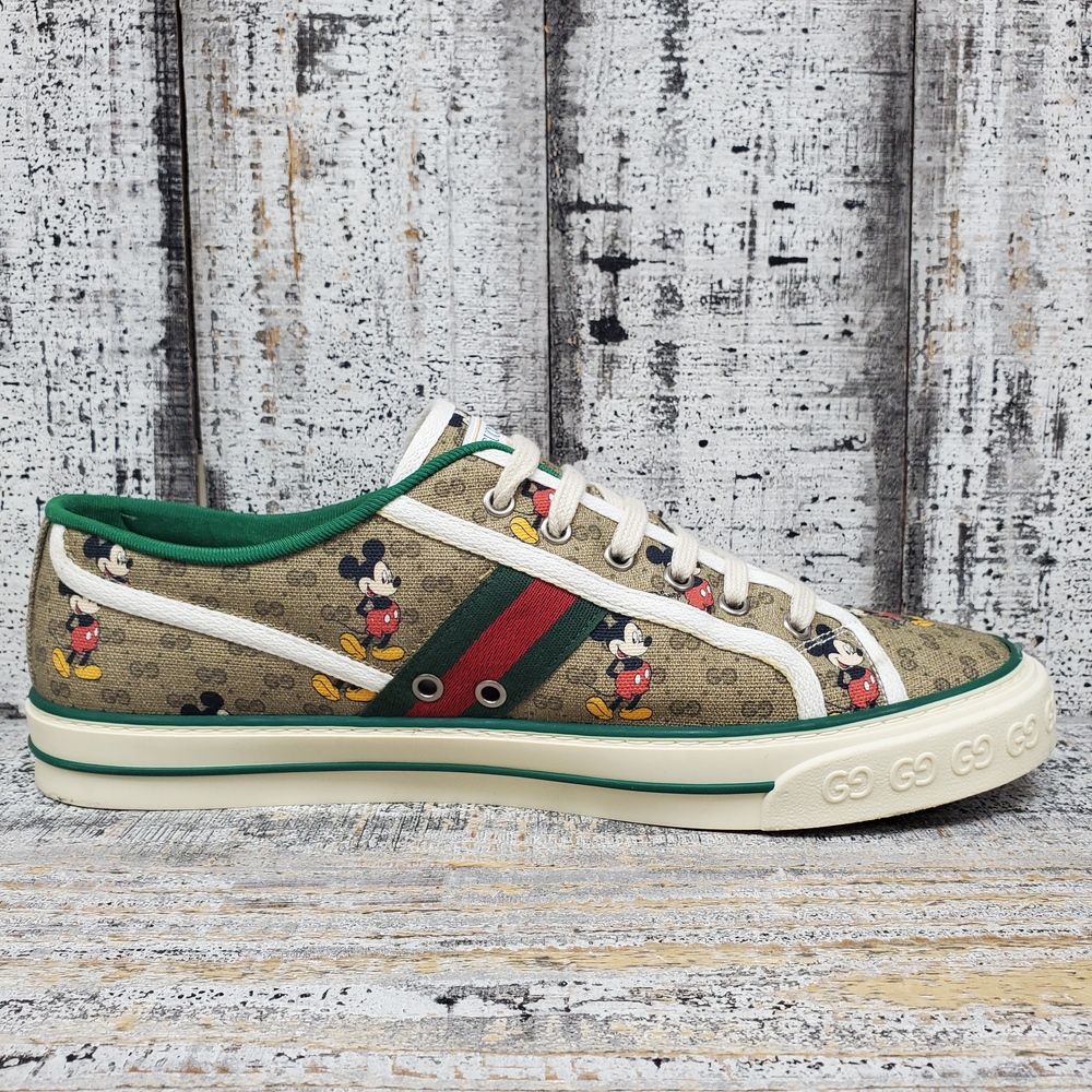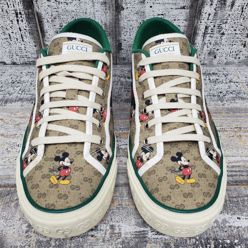 Limited edition, size 11, Gucci Tennis 1977 Disney Shoes, comes with original box. Iconic Disney print, high-quality materials, blending luxurious style with playful charm.