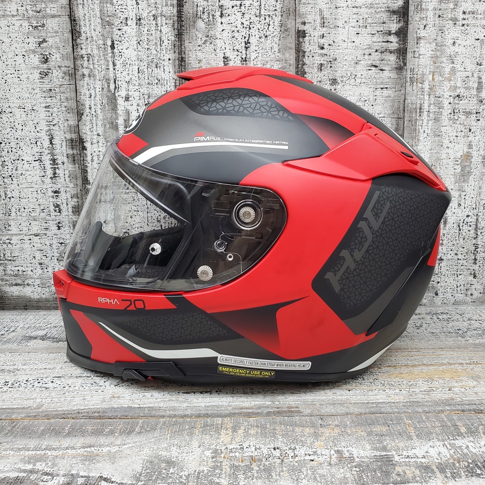 A brand new HJC RPHA 70 Motorcycle Helmet, designed for optimal safety and comfort with advanced ventilation system and UV-protected shield. Modern, stylish, high-quality head protection.
