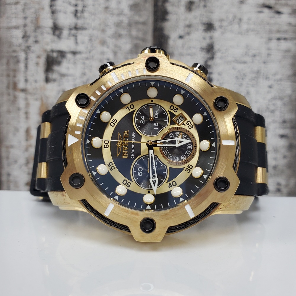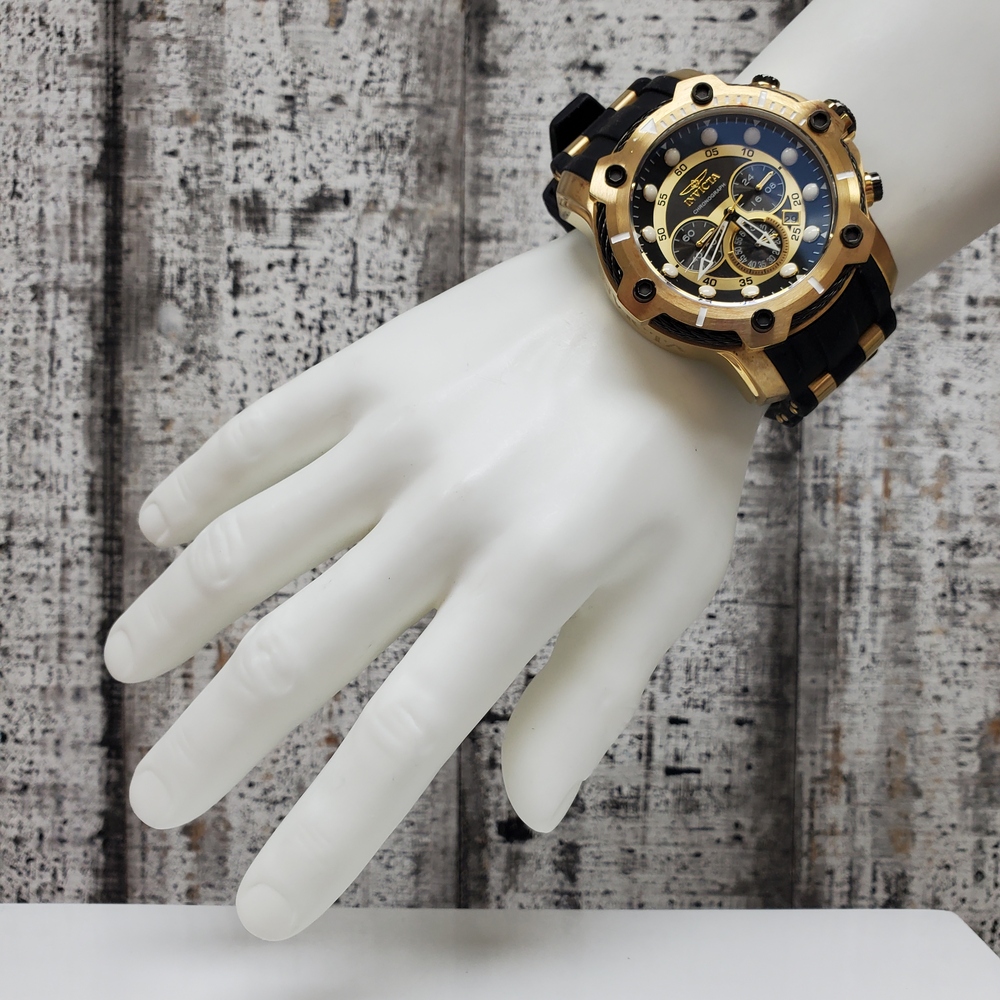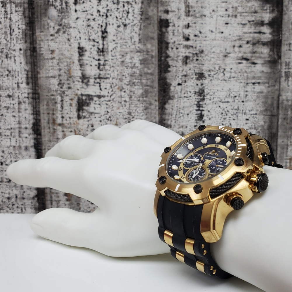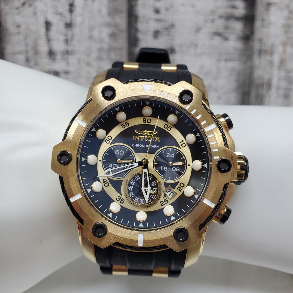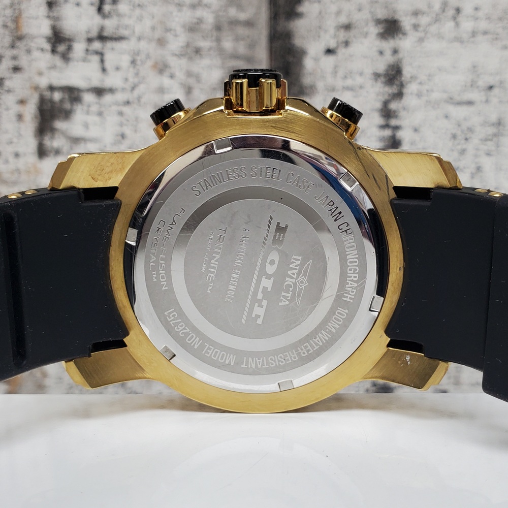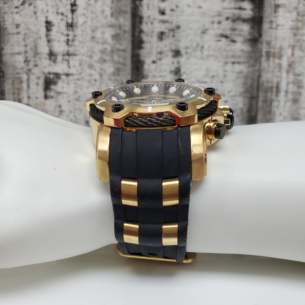 The Invicta 26751 Bolt is a luxurious gold tone watch, boasting durability with a black rubber strap, blending style with functionality for everyday use.