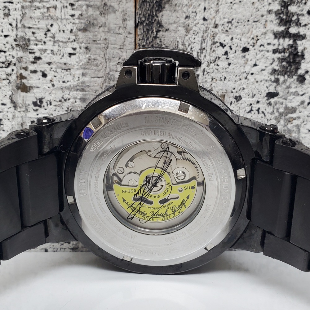 A stylish Invicta 33609 Subaqua Noma III watch, featuring a black design, boasting durability and elegance, with minor signs of previous use.