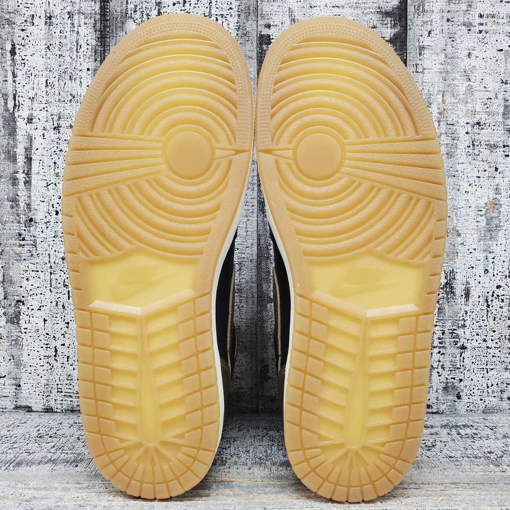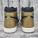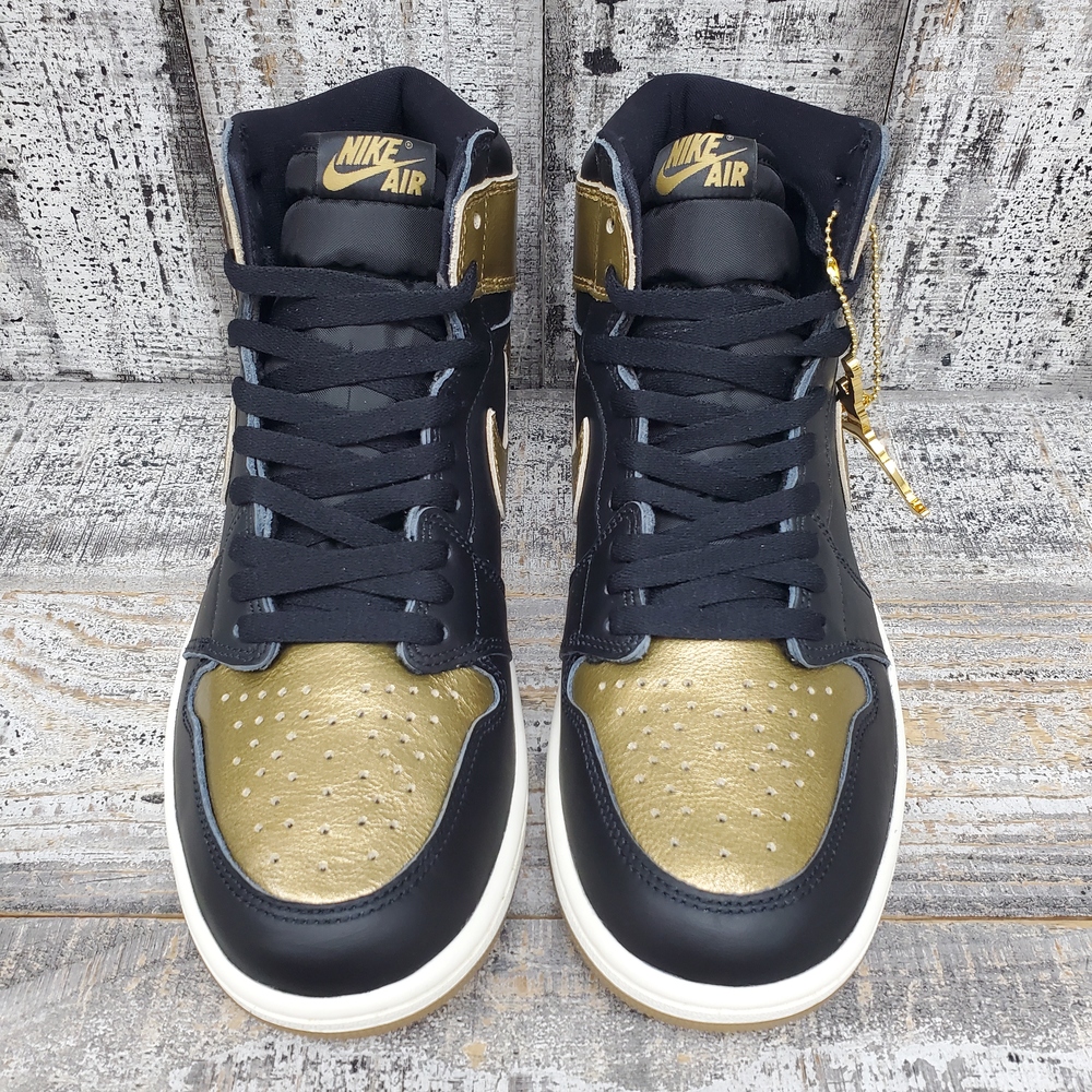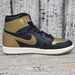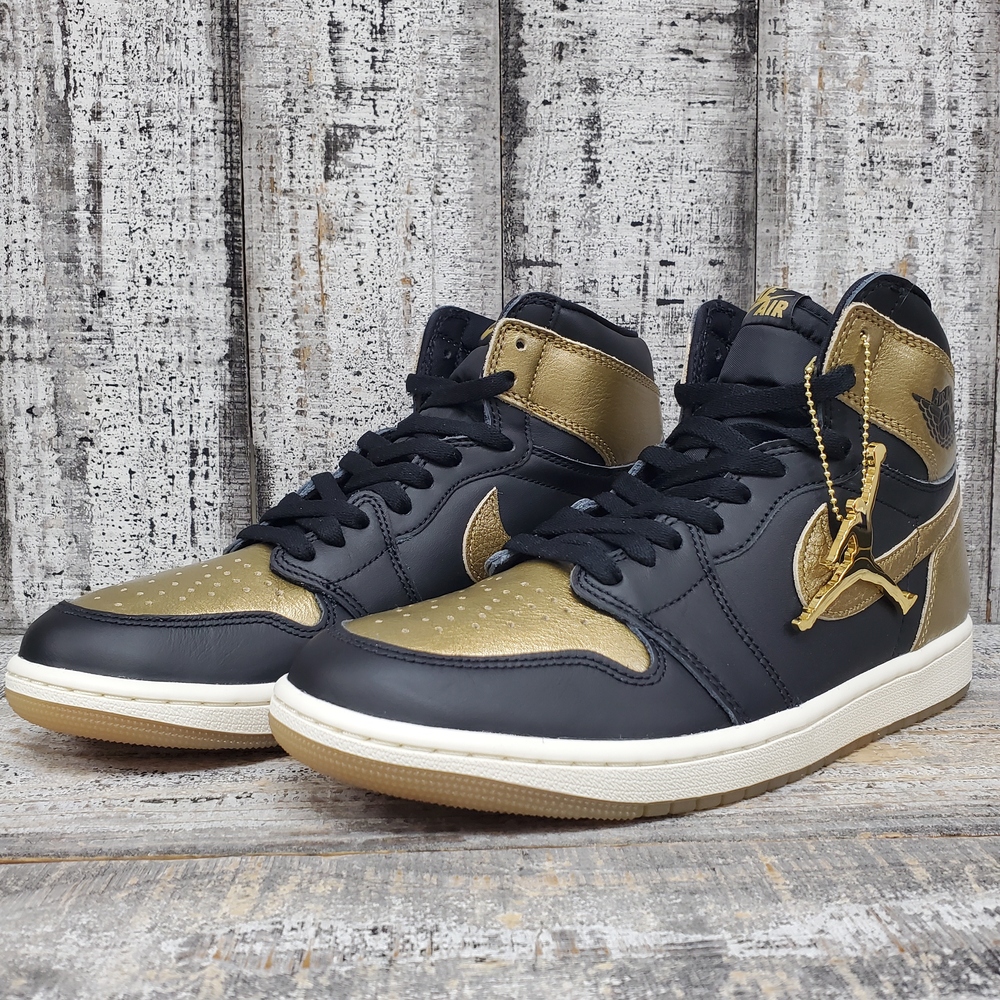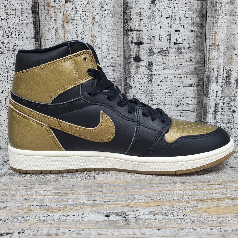 A size 10 Jordan 1 Retro High OG in Black Metallic Gold with original box. Iconic design, prime comfort, stylish appeal. Ideal for sneaker enthusiasts.