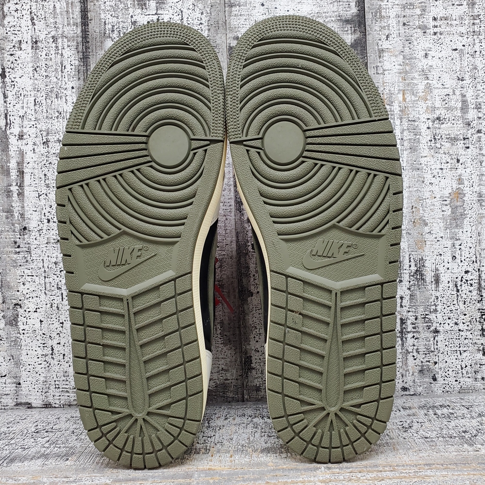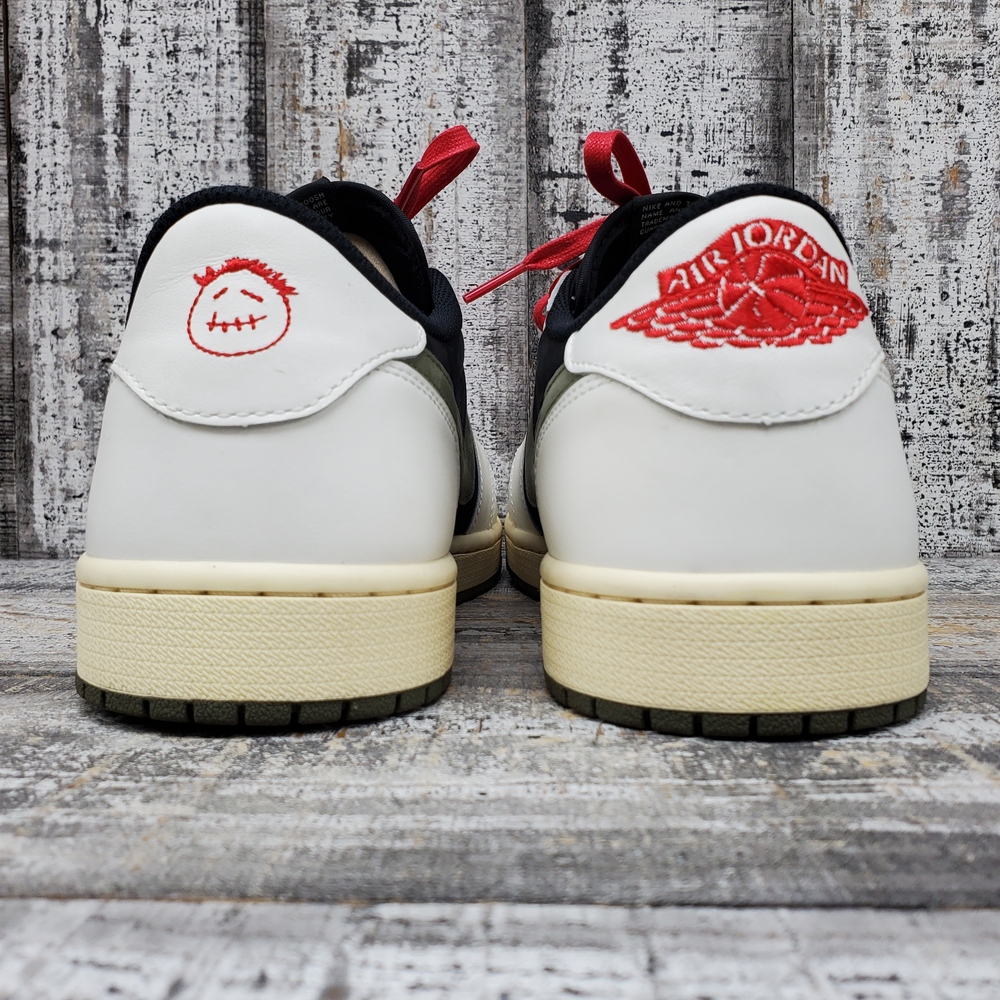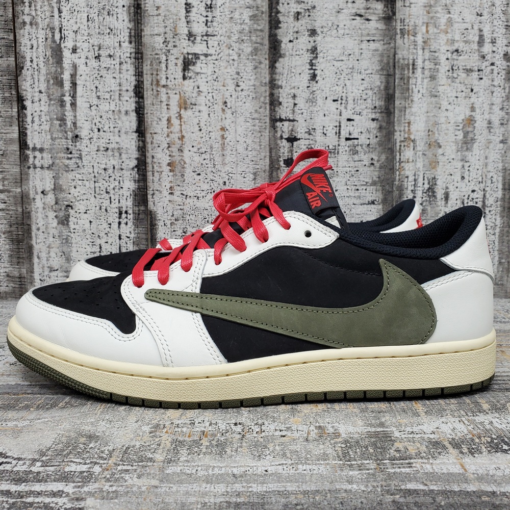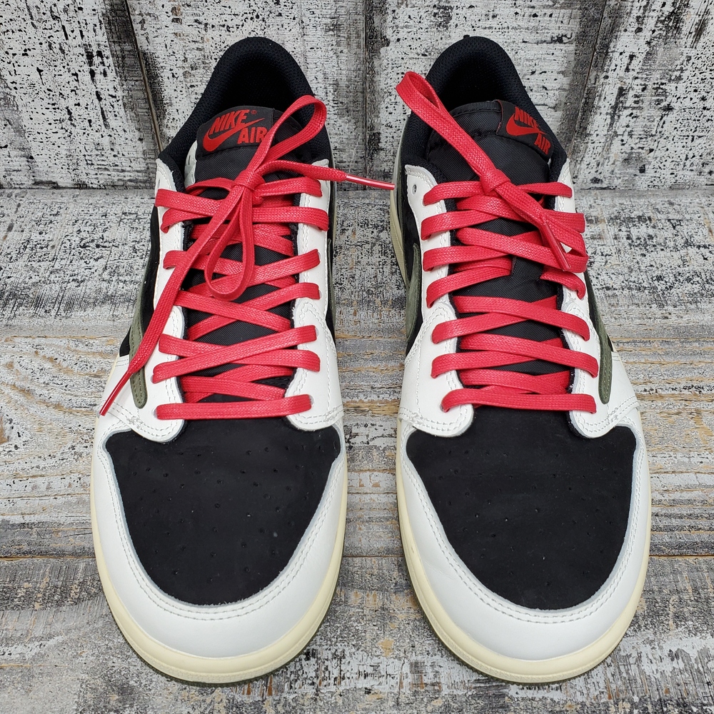 Like new Jordan 1 Travis Scott Low Olive, size 12M/13.5W, in box. Unisex, stylish, with signature detailing. Perfect for sneaker collectors or casual wear.