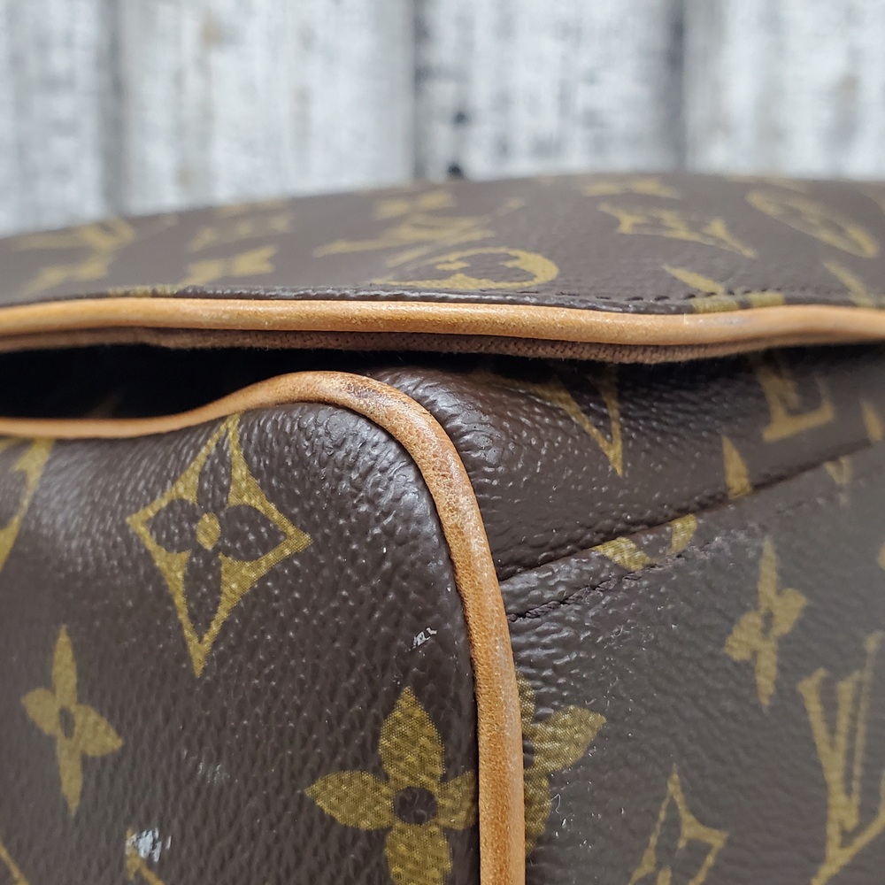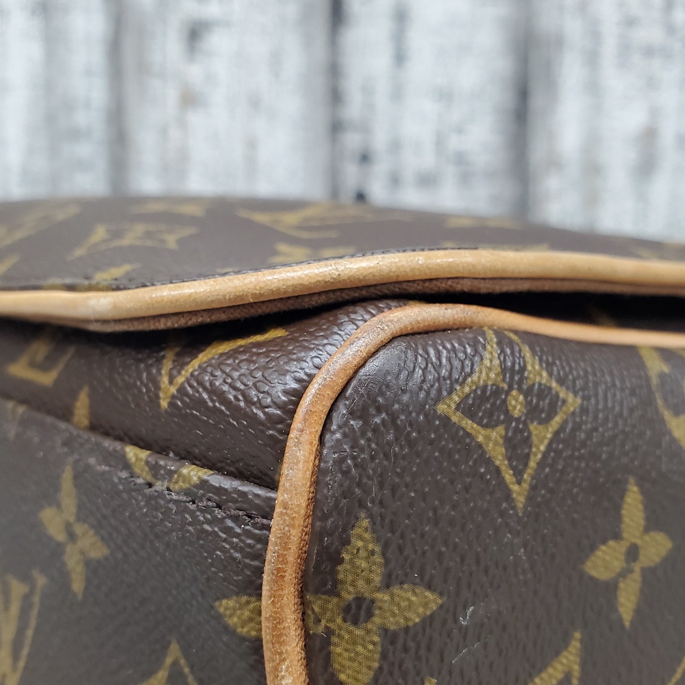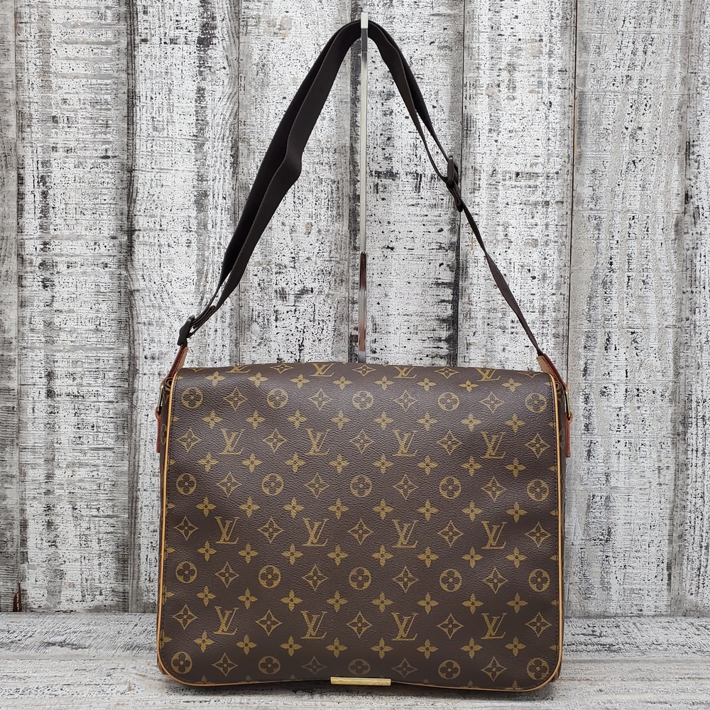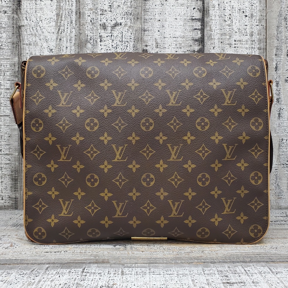 Louis Vuitton Abbesses Messenger Monogram in used condition shows minor wear, maintaining iconic canvas, leather trim, adjustable strap, and spacious interior for everyday use.
