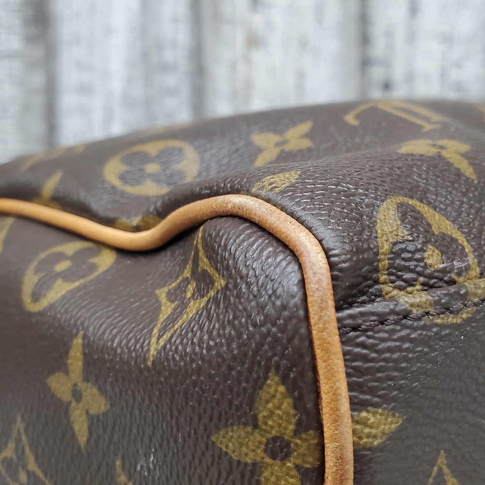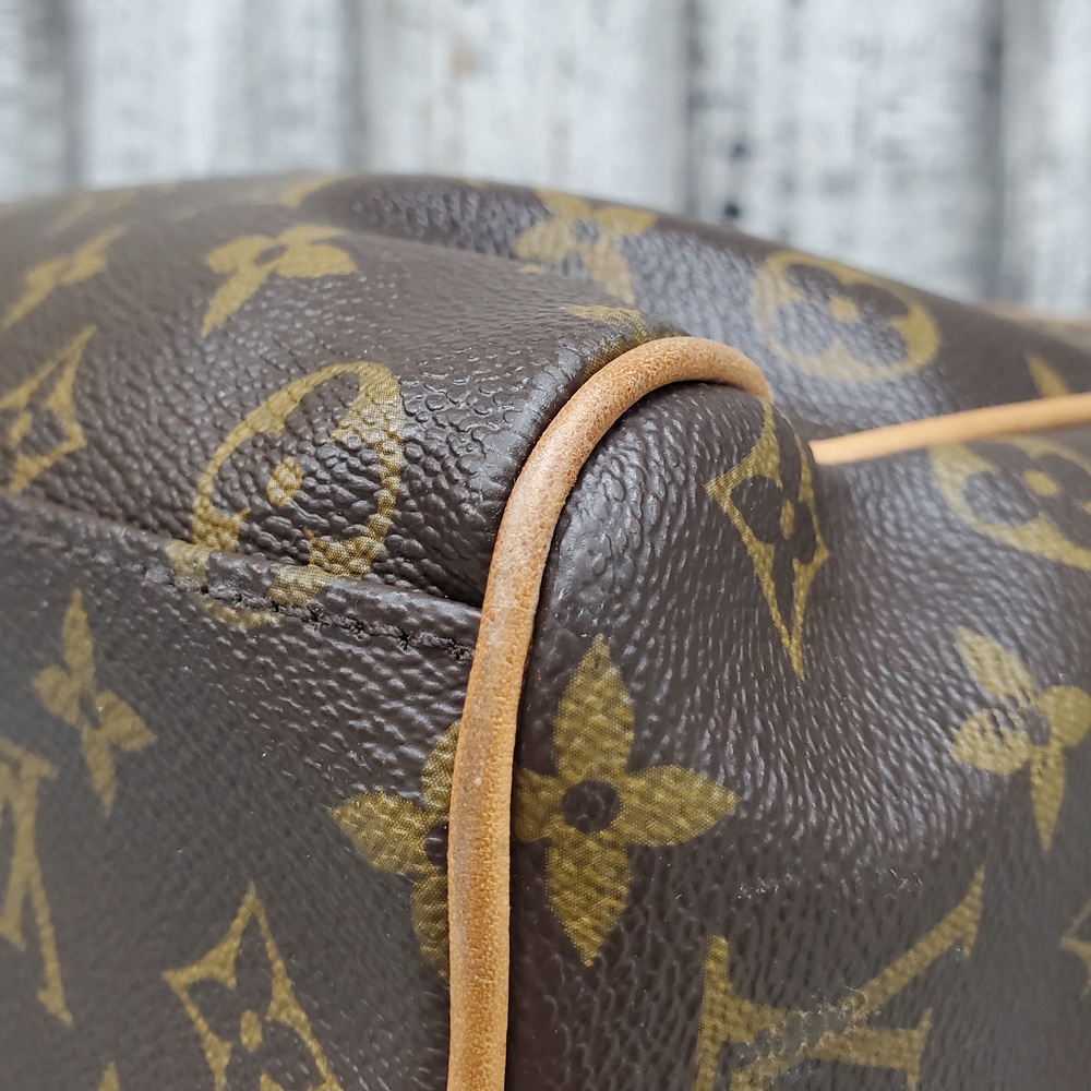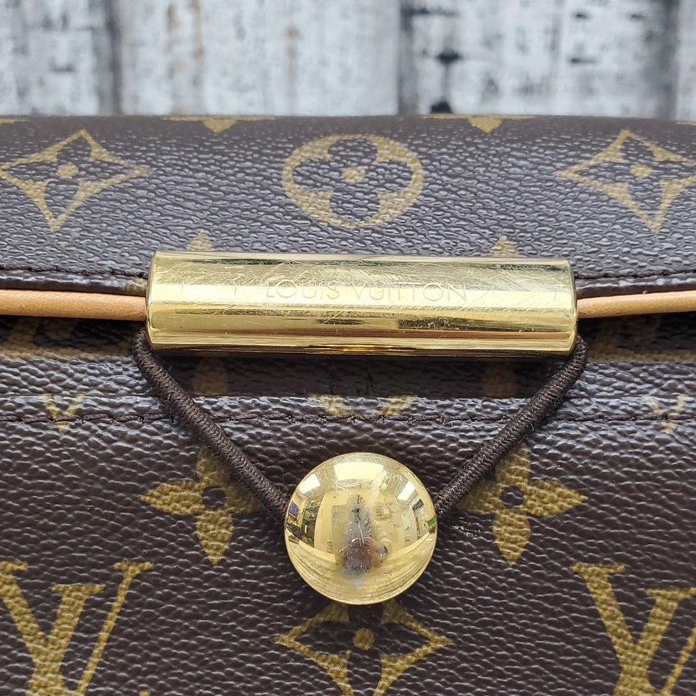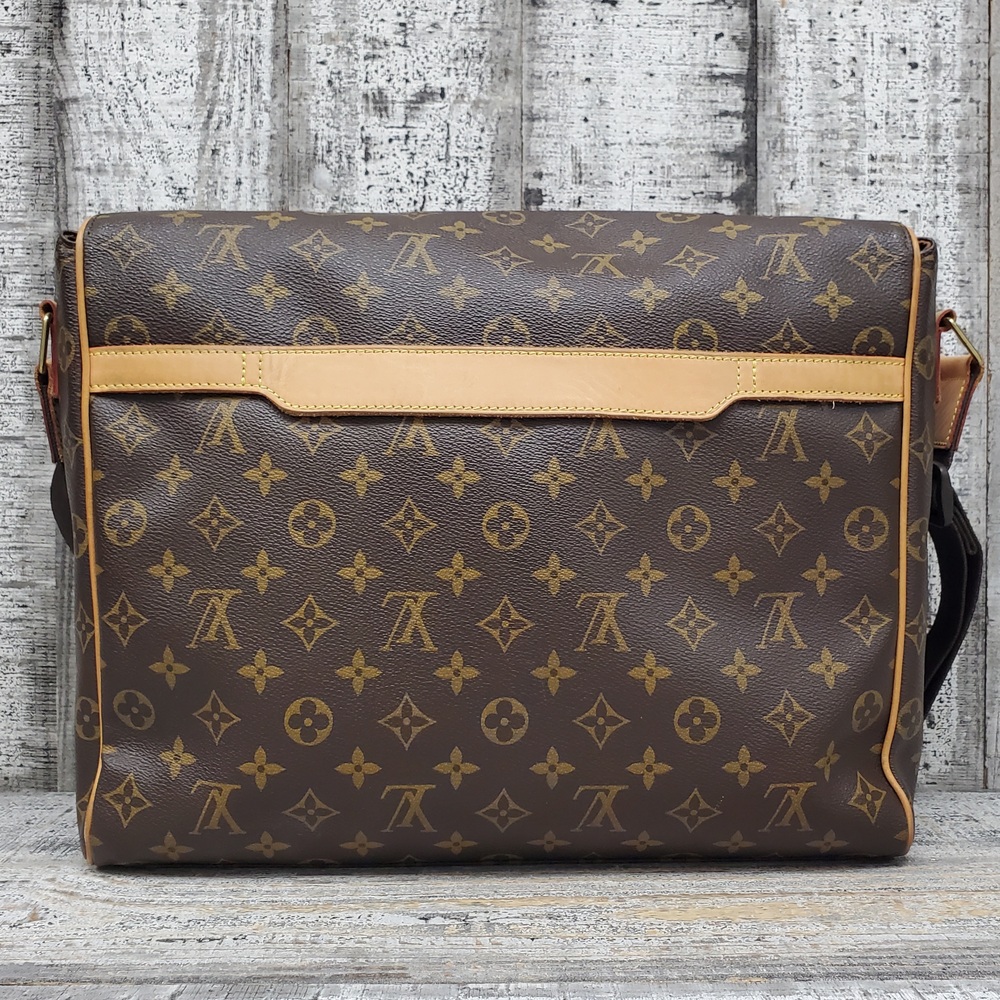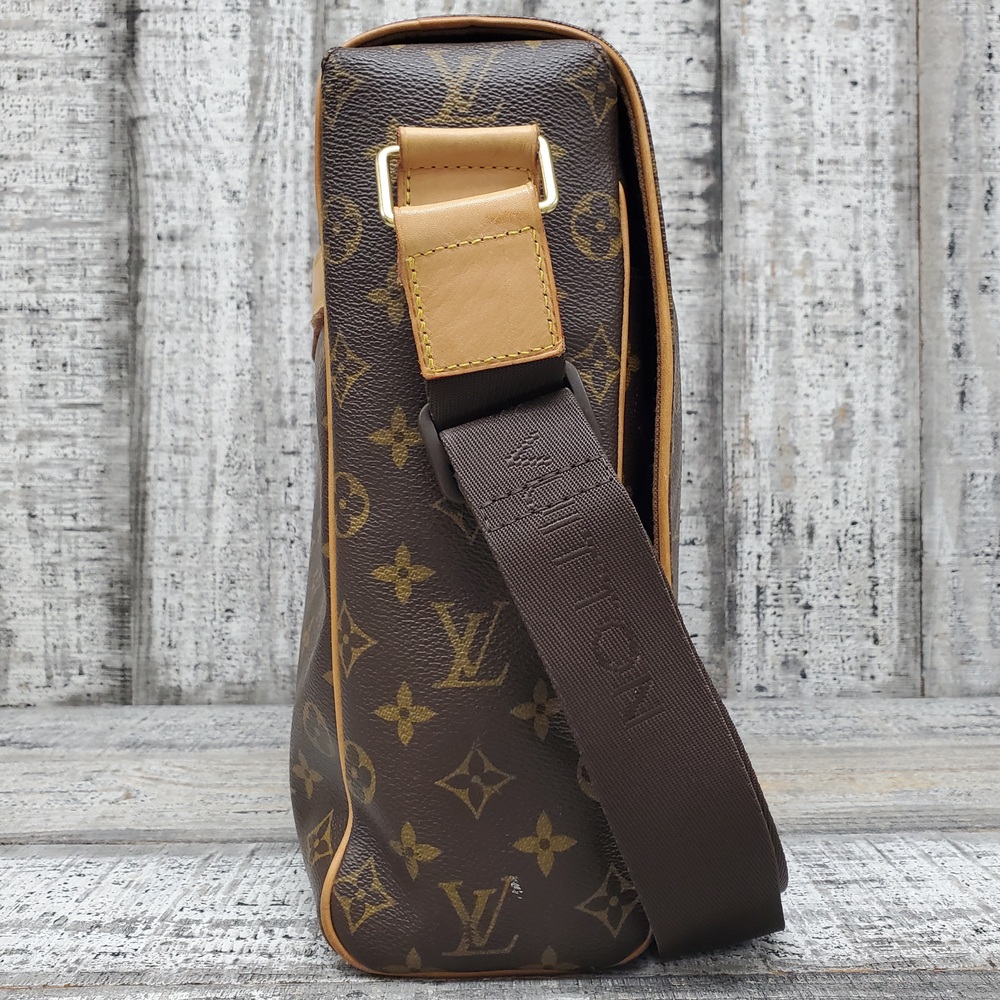 Louis Vuitton Abbesses Messenger Monogram in used condition shows minor wear, maintaining iconic canvas, leather trim, adjustable strap, and spacious interior for everyday use.