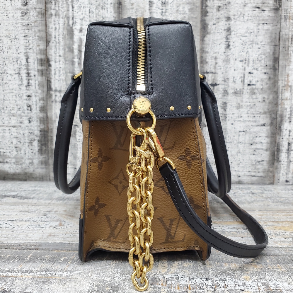 Elegant Louis Vuitton City Malle bag, features distinctive reverse logo design, includes strap, gently used, in great condition. Versatile and stylish.