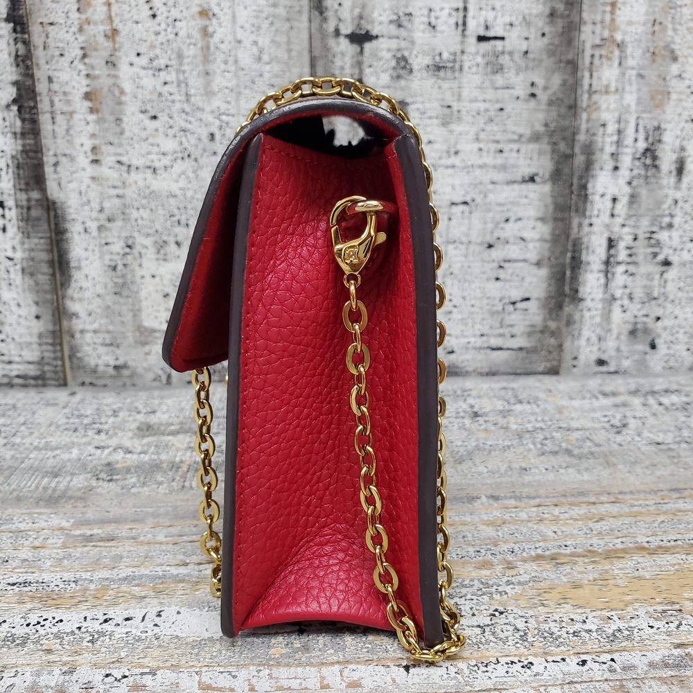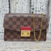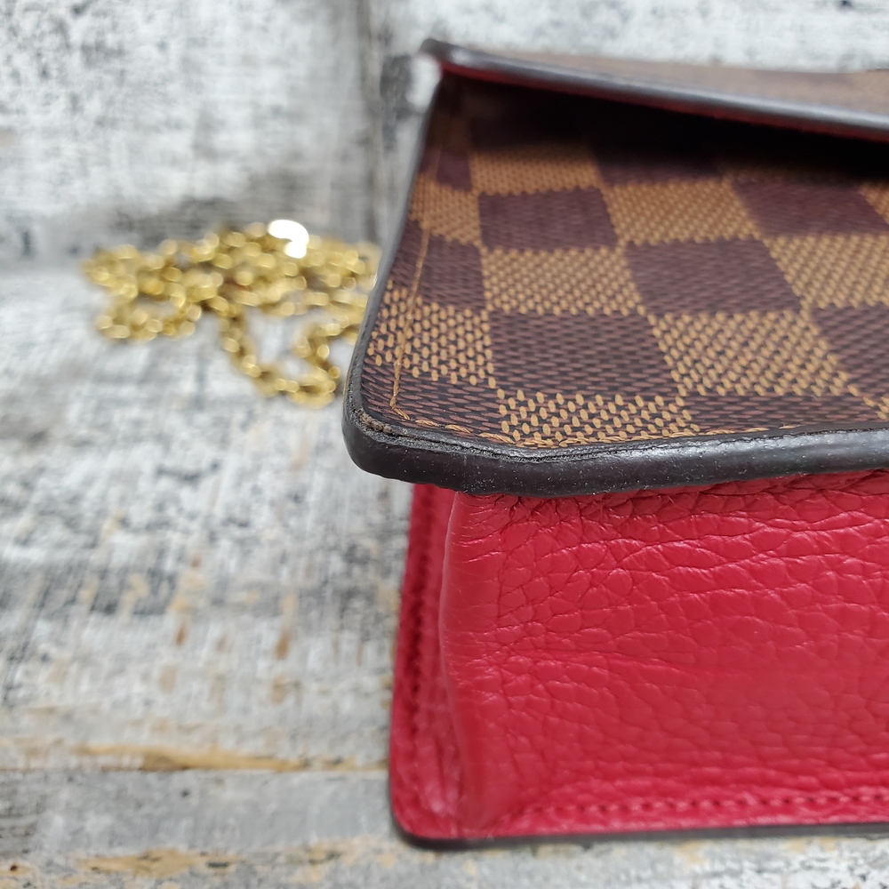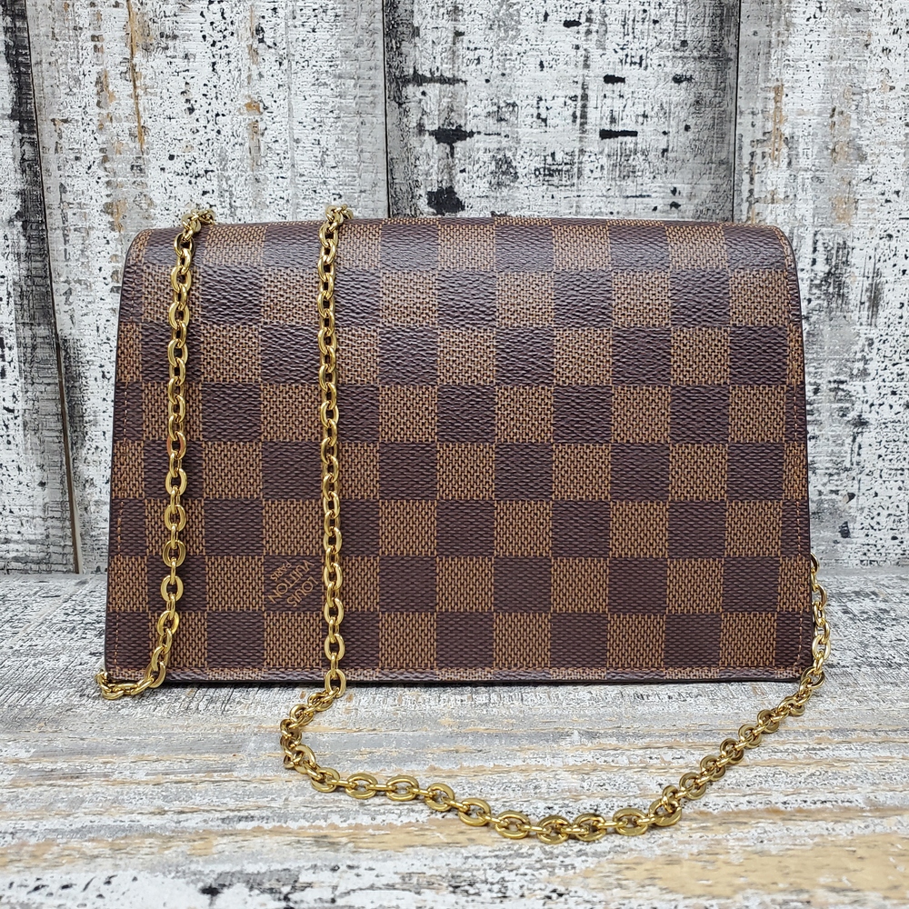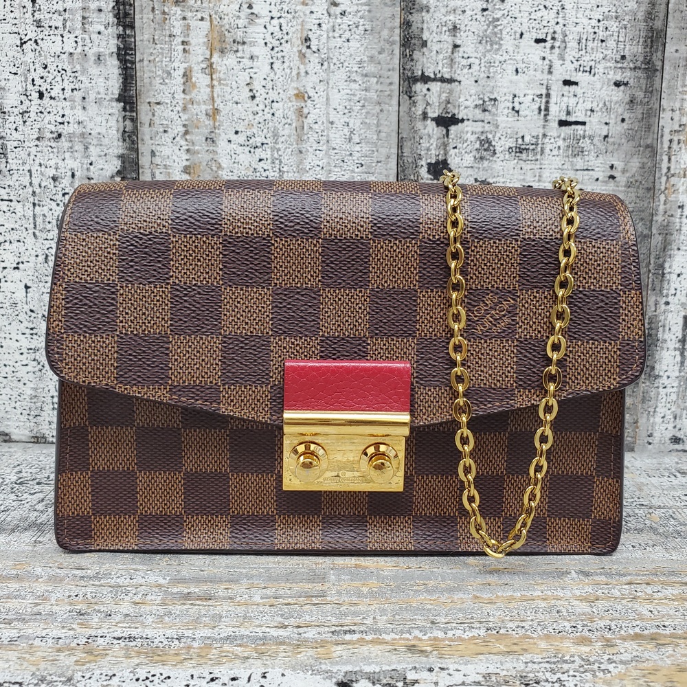 Louis Vuitton Croisette Chain Wallet embodies elegance in Damier Ebene canvas, displaying iconic details, and versatile chain for shoulder or cross-body wear.