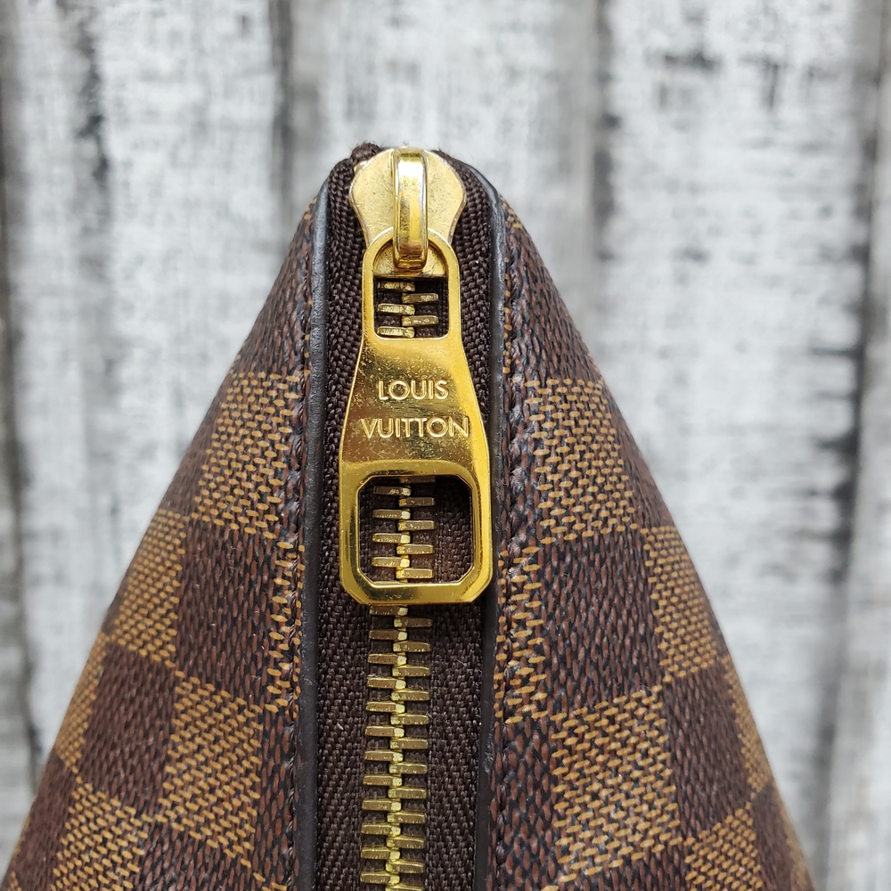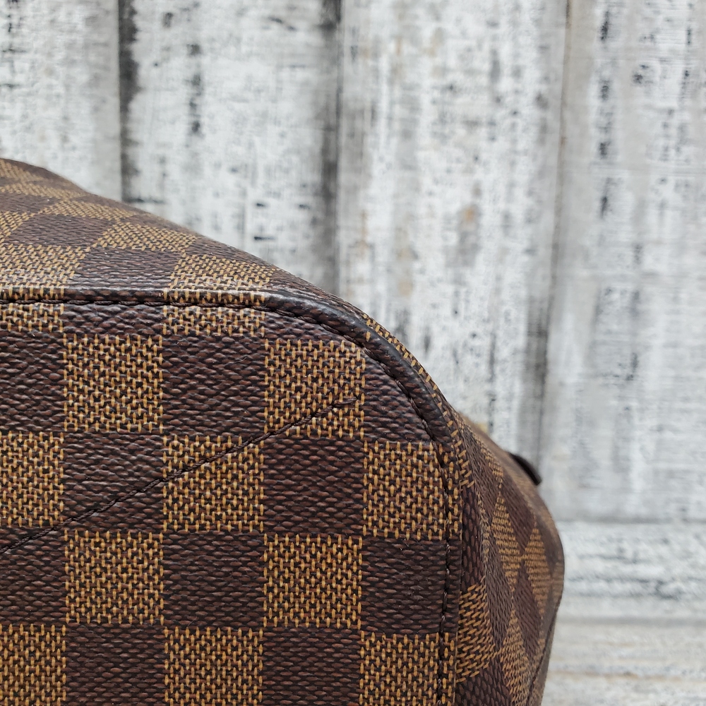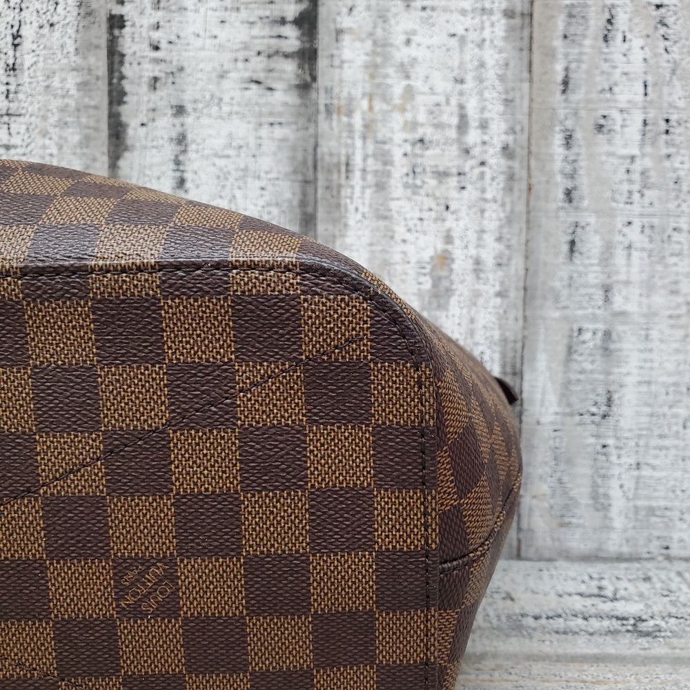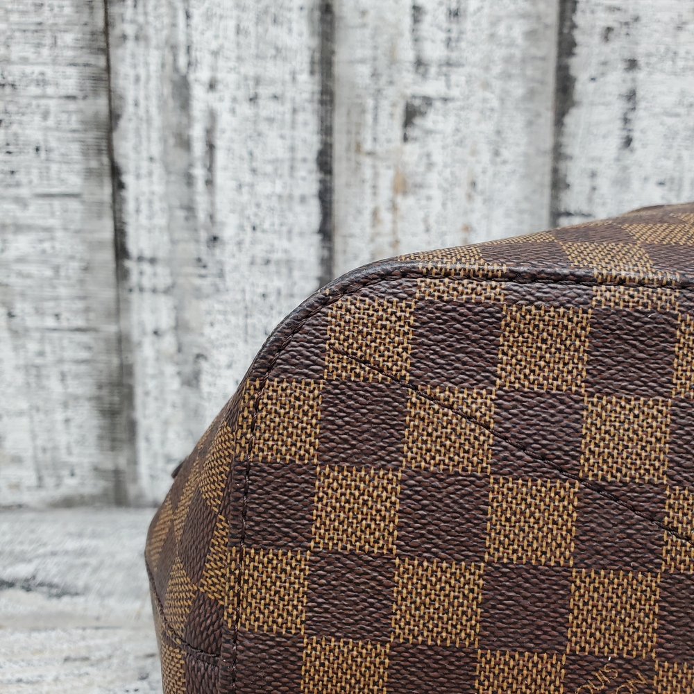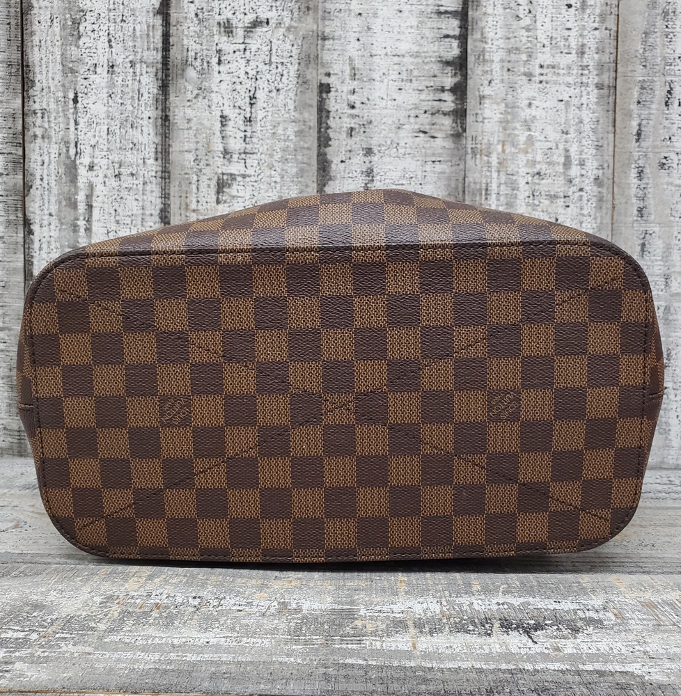 A pre-owned Louis Vuitton Siena MM handbag in Damier Ebene print, featuring classic checkered pattern, versatile brown tones, and premium leather trim.