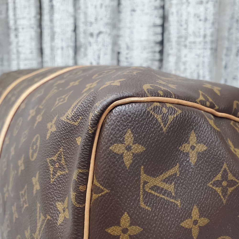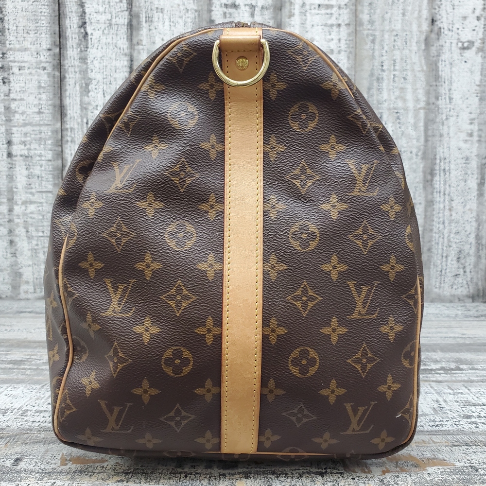 A sleek, luxury travel bag, the Louis Vuitton Keepall 55 Bandouliere offers a spacious interior, removable strap, and signature monogram design, perfect for stylish globe-trotters.