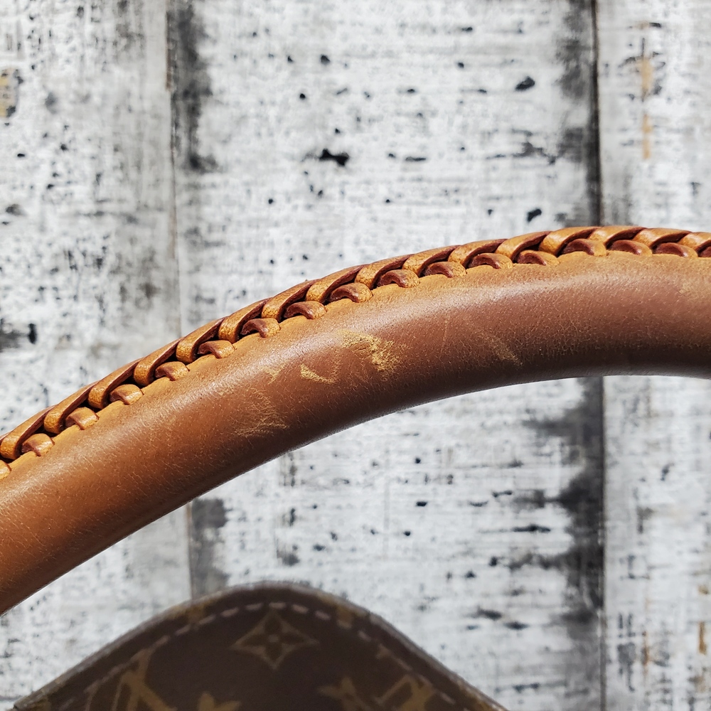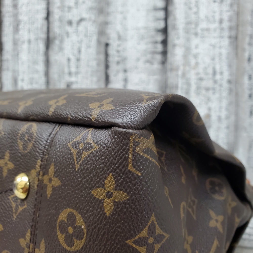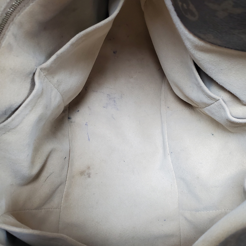 Used Louis Vuitton Artsy MM bag, monogram canvas exterior, stain inside, retail price of $2500, now available at a discounted price.