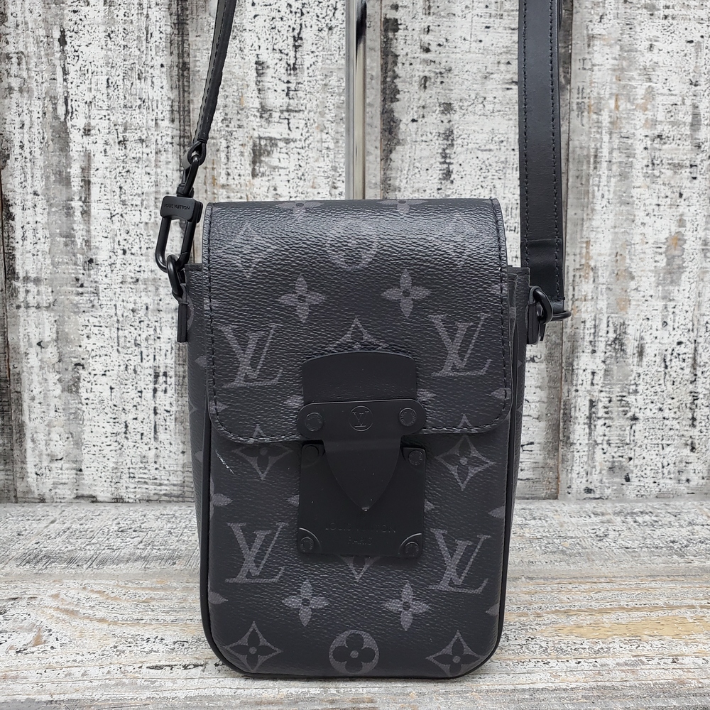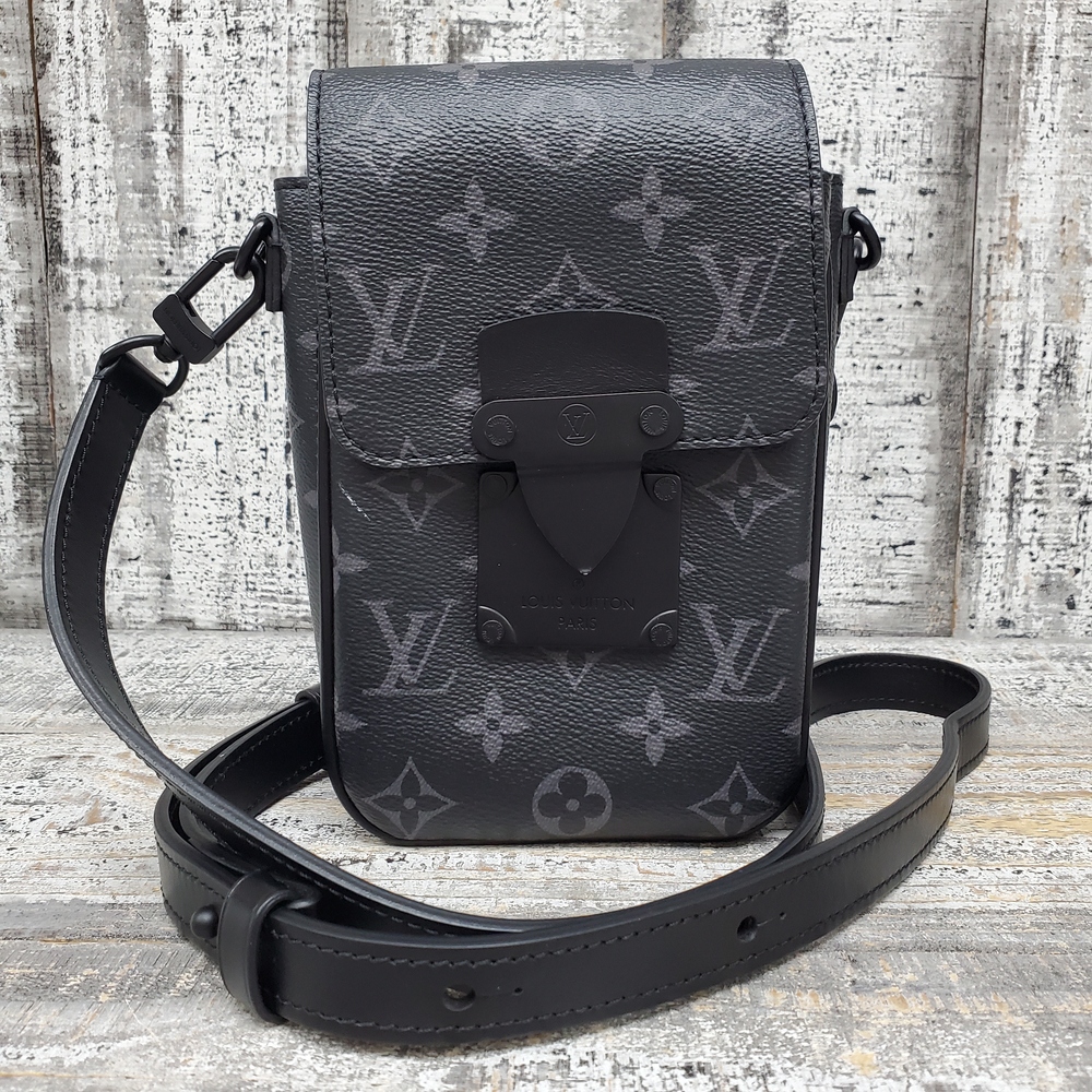 A gently used Louis Vuitton S-Lock Vertical Leather Wallet, boasting the brand's iconic design, offers style and compact organization for essential cards and cash.